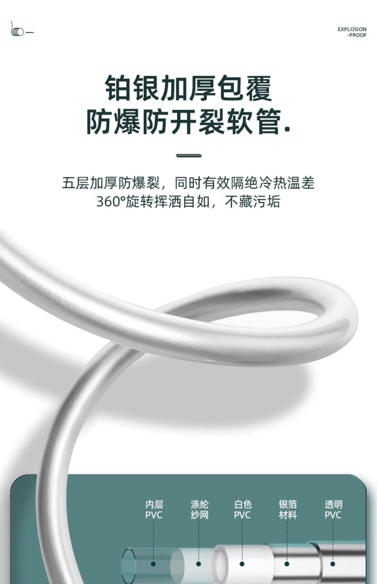 花洒喷头PVC软管浴室洗澡管子沐浴水管淋浴雨浴霸热水器配件通用