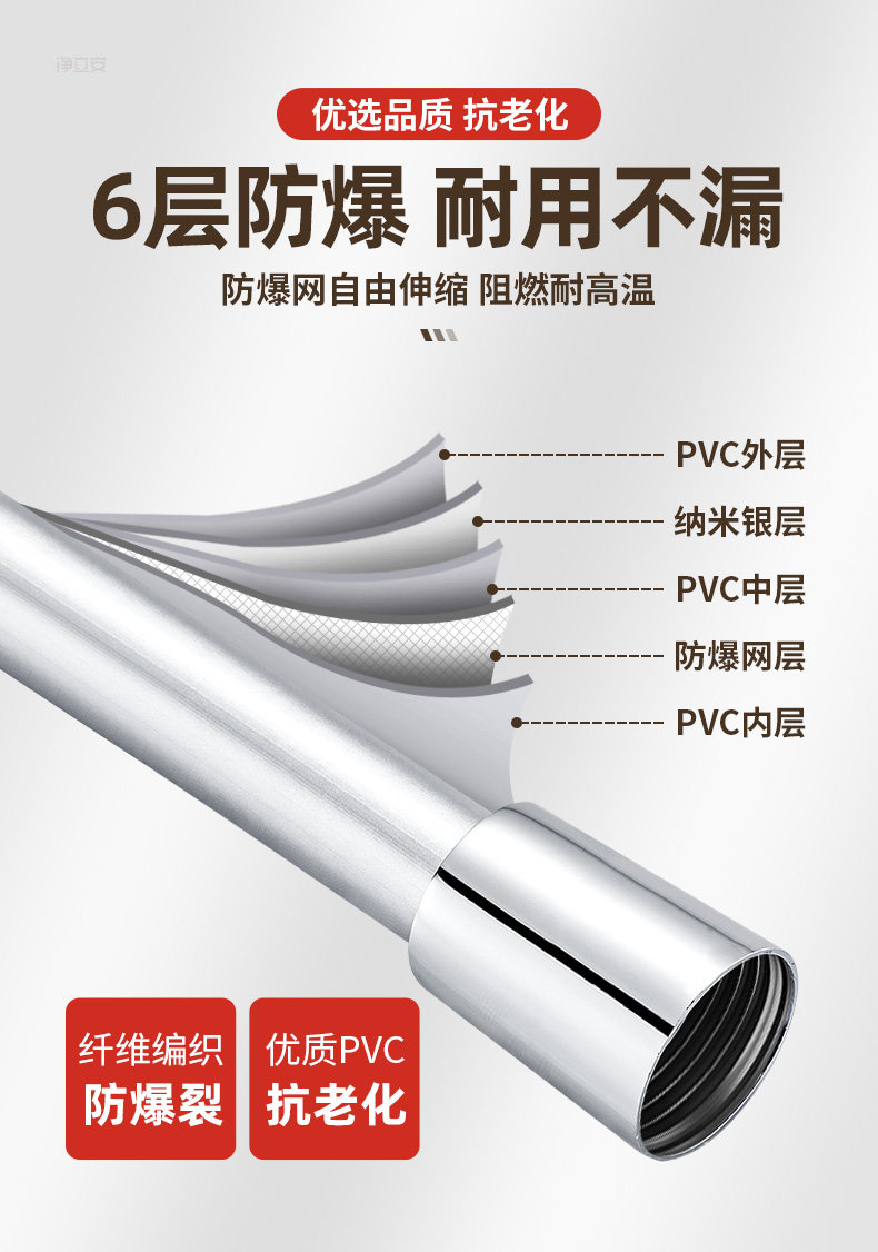 2024花洒喷头PVC软管浴室洗澡管子沐浴水管淋浴雨浴霸热水器配件