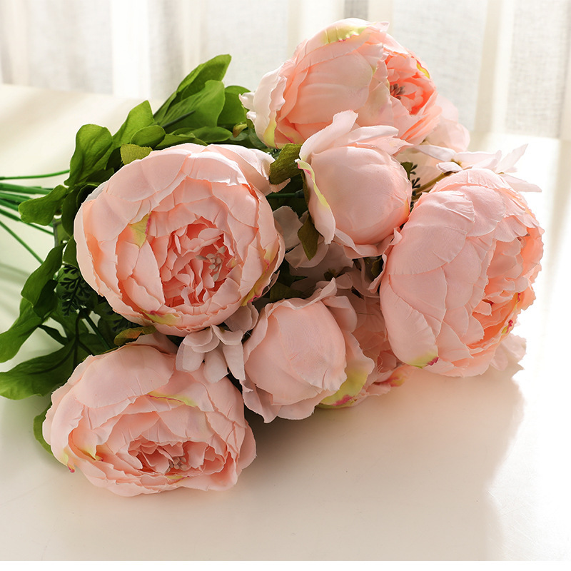 仿真欧式牡丹春色牡丹婚庆道具装饰假花样板房摆13头人造牡丹花