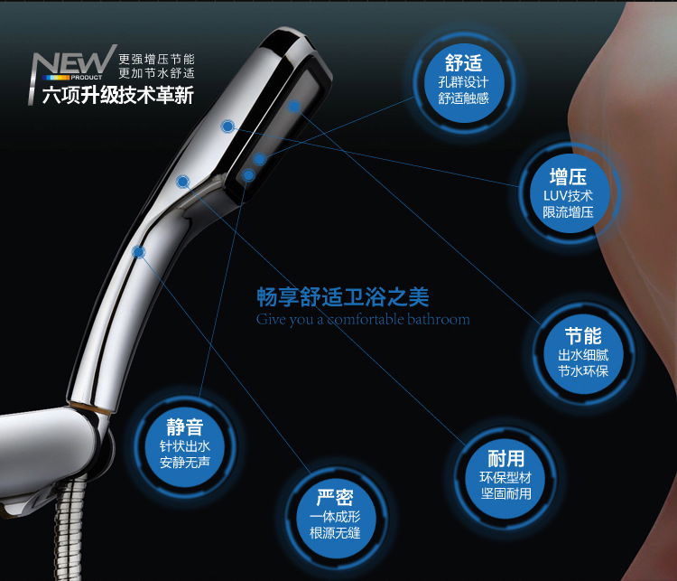 精品增压淋浴卫浴配件花洒头 手持节水 洗澡喷头莲蓬头方形三百孔