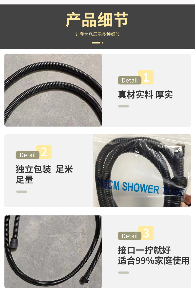 水暖五金洗浴花洒软管卫生间淋浴黑武士管子家用卫浴配件花洒软管