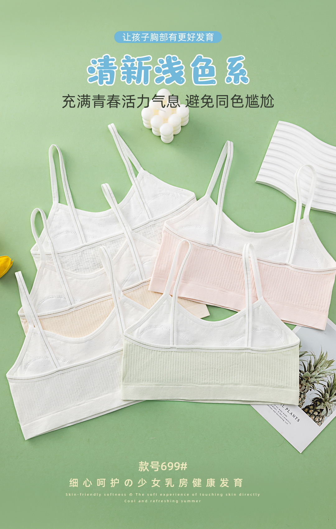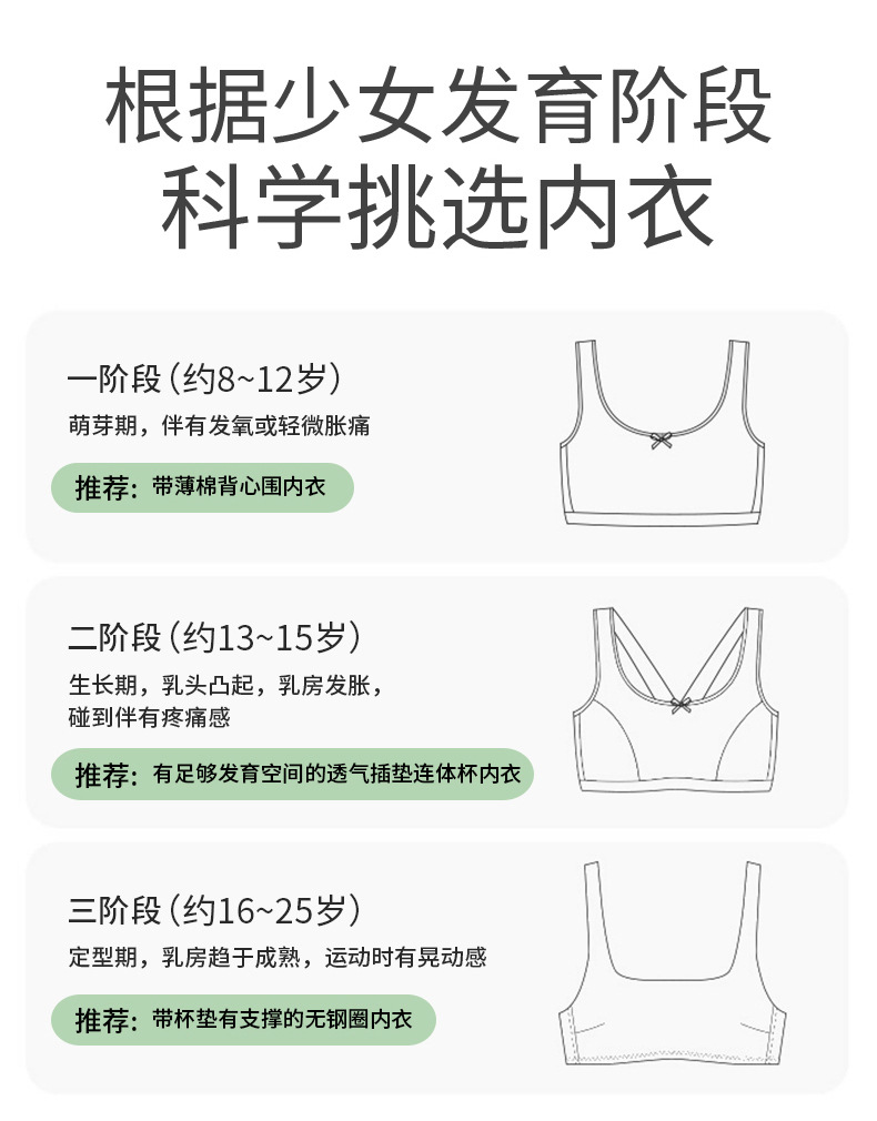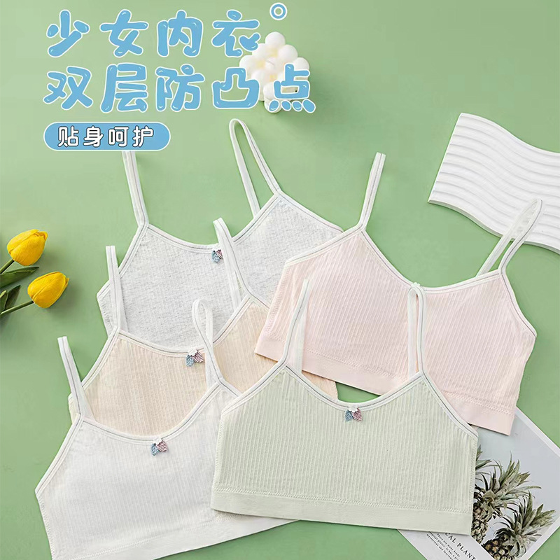 女小中童内衣发育初期纯棉吊带小背心7岁以上薄棉透气舒适防凸点
