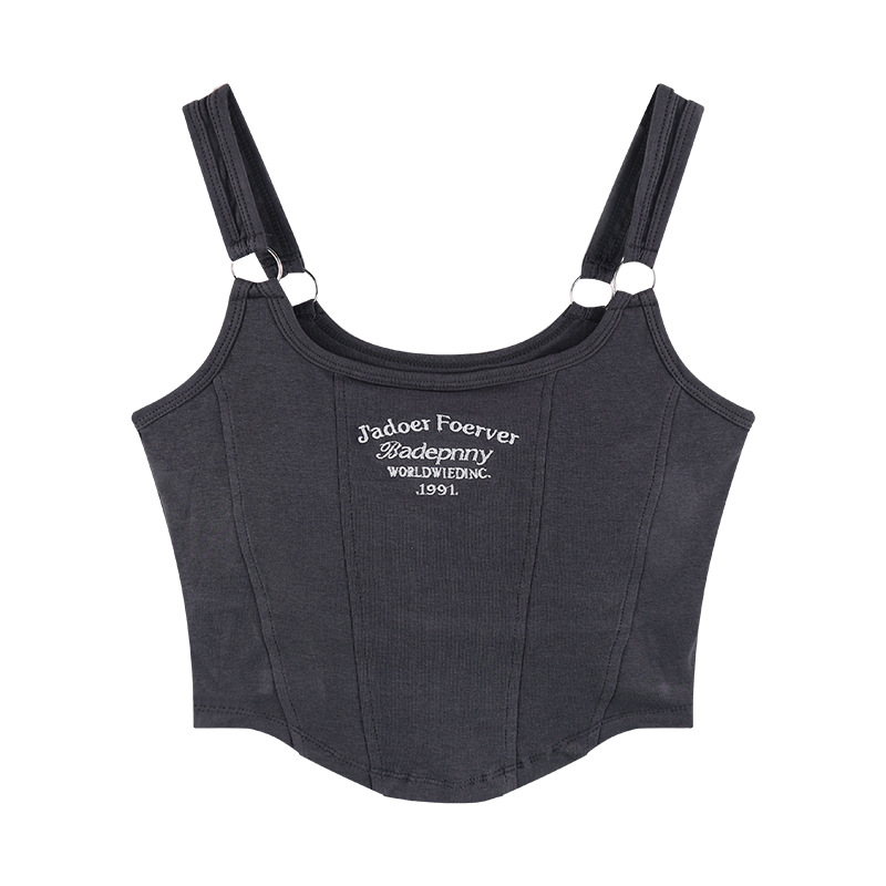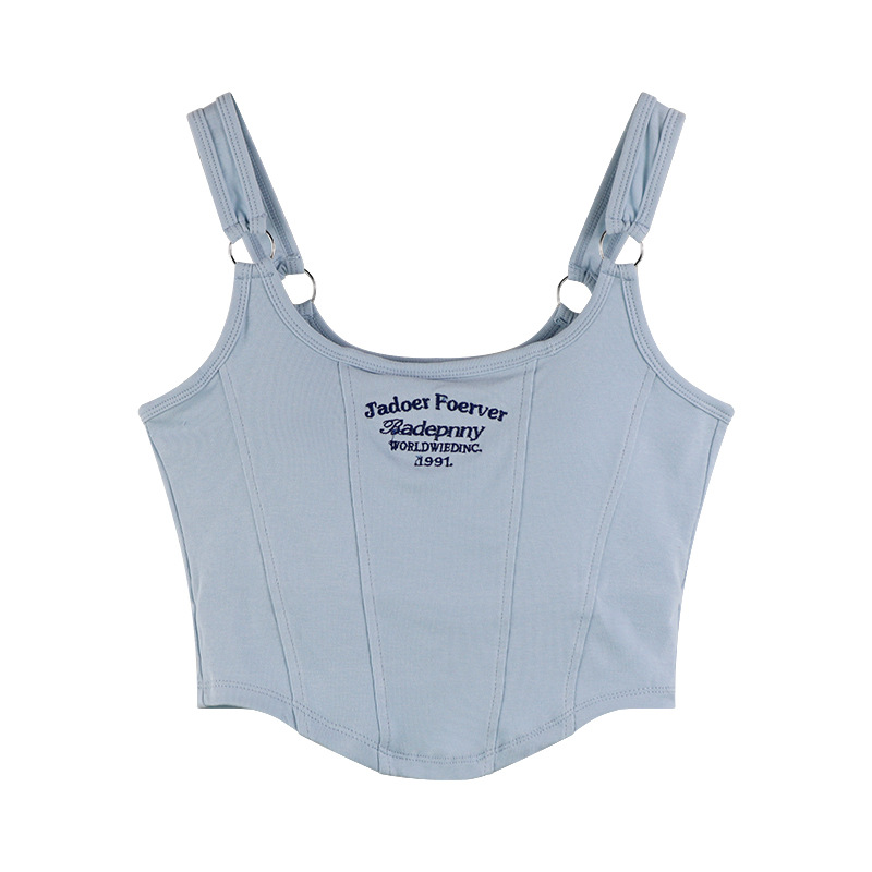 爆款韩版字母刺绣纯棉吊带背心美背裹胸辣妹修身外穿打底短款上衣