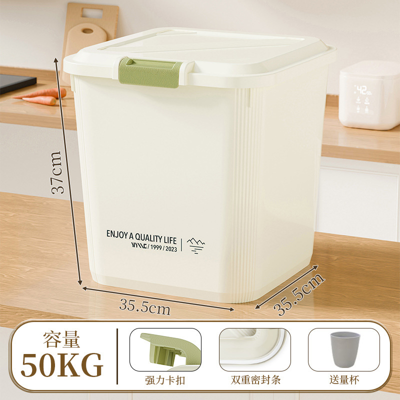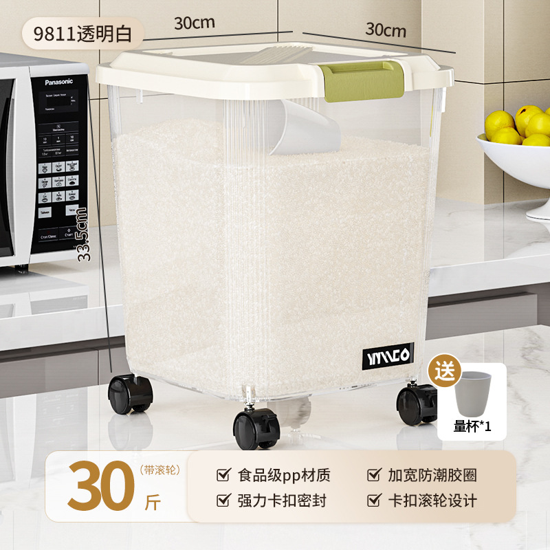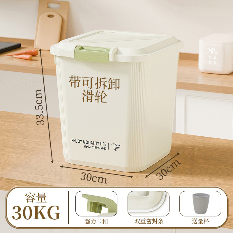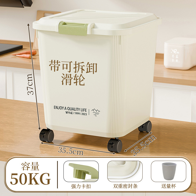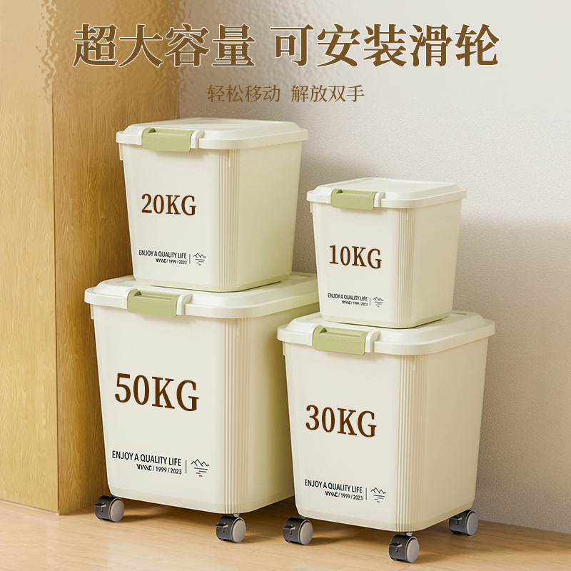 家用米桶超大容量50斤密封防潮面粉杂粮储物罐带滑轮20斤米桶箱