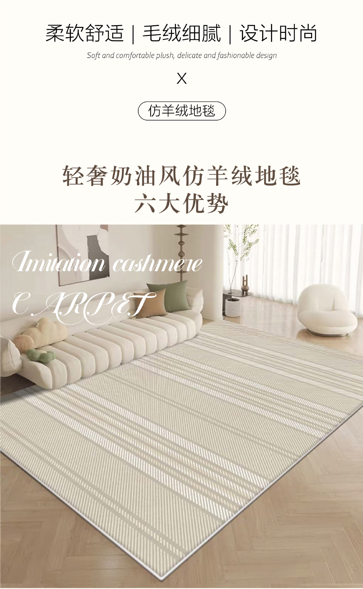 跨境简约新奶油风轻奢仿羊绒地毯客厅沙发茶几卧室加厚床边毯家用