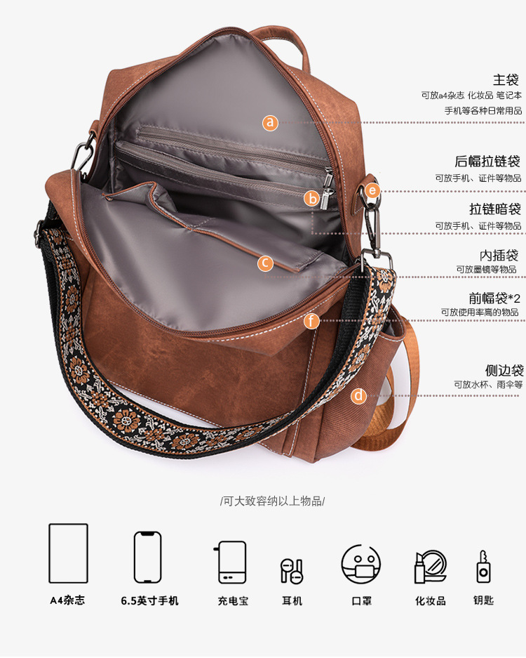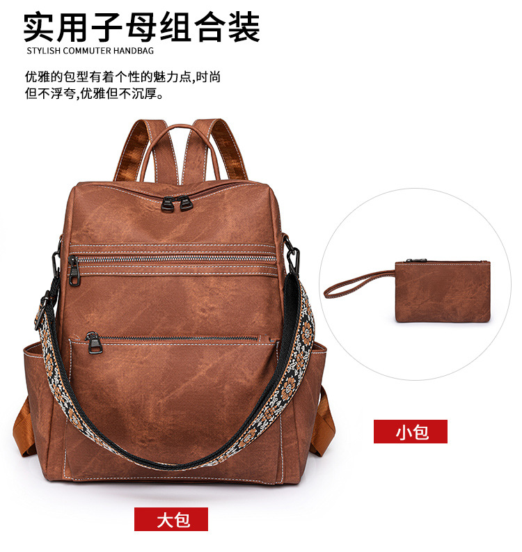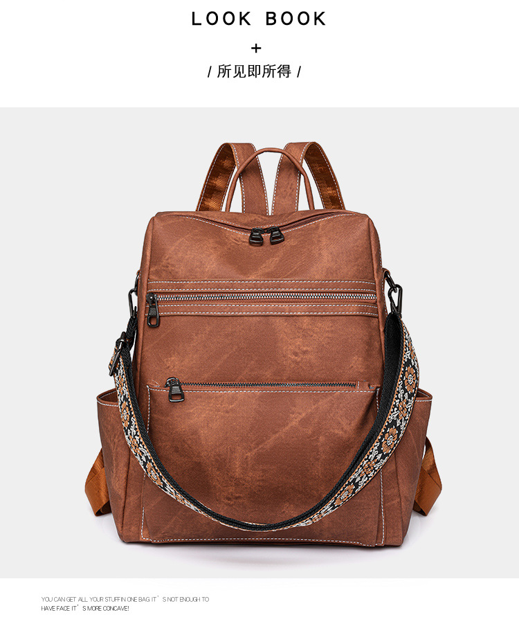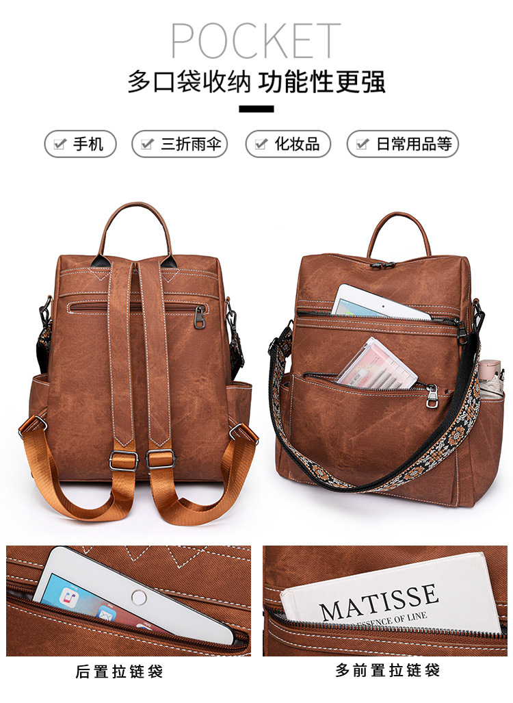 zhen跨境女士双肩包轻便女生复古背包休闲旅行两用单肩包