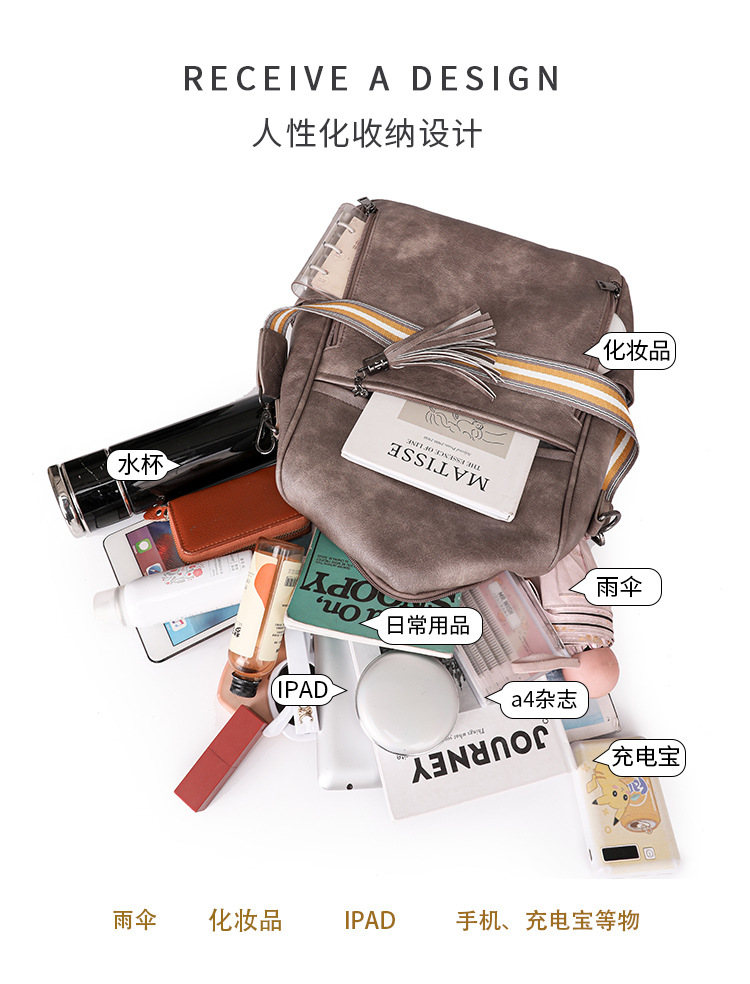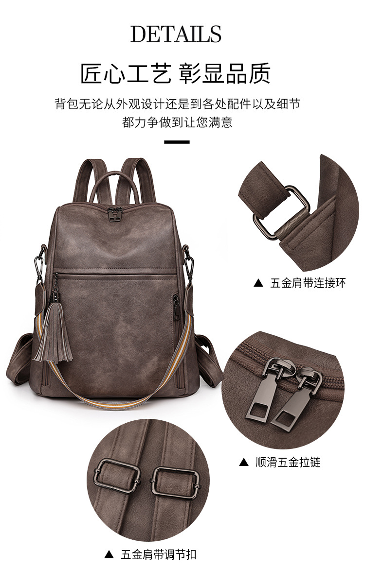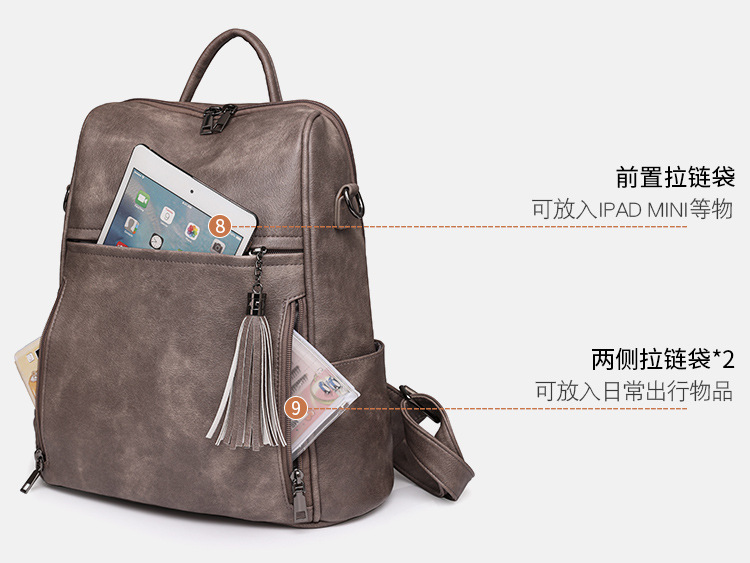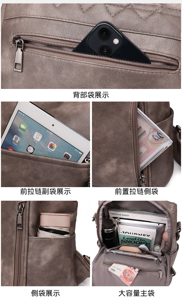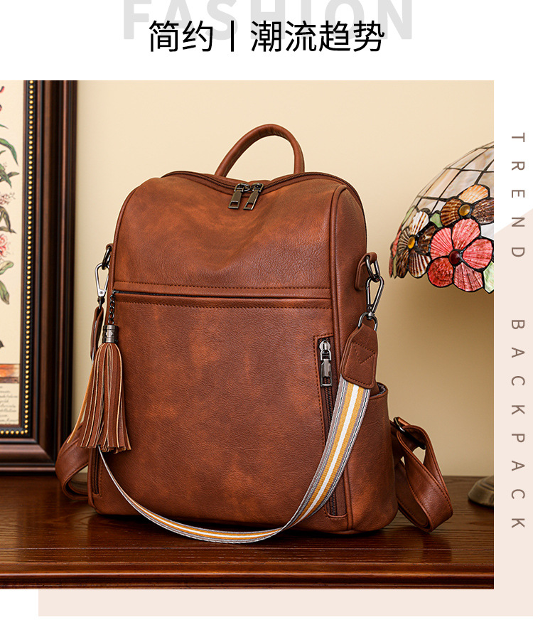 zhen女士双肩包跨境新款复古休闲背包单肩斜挎包