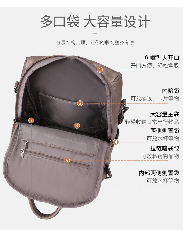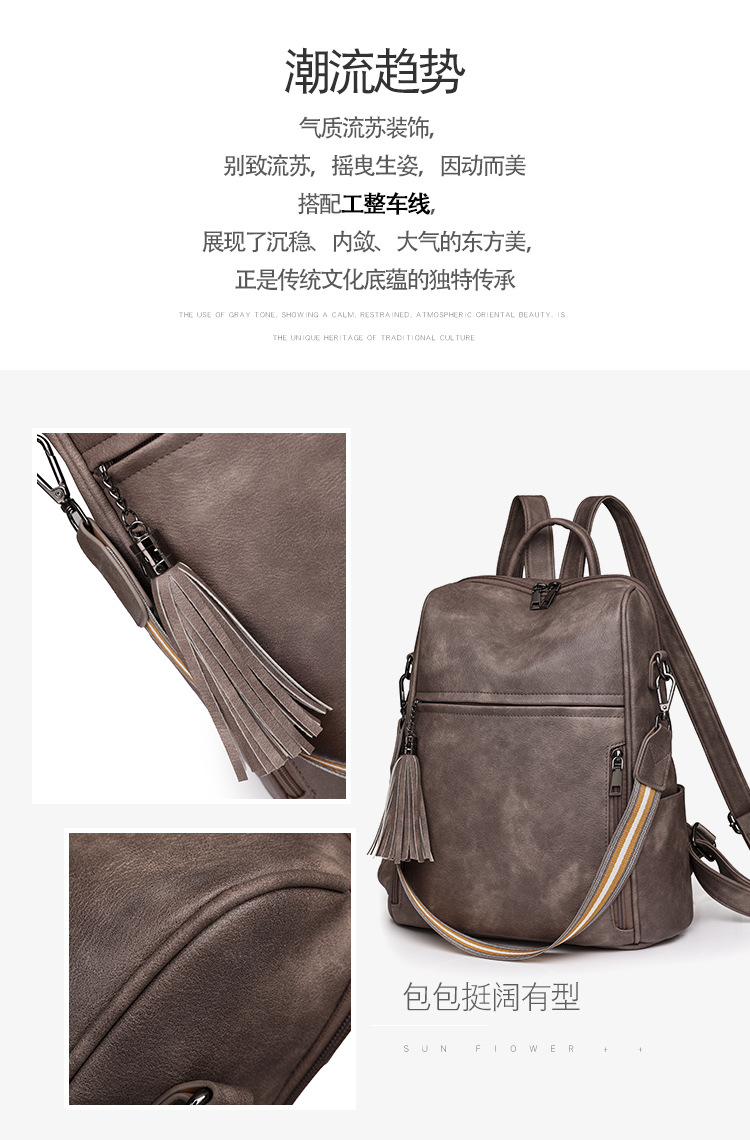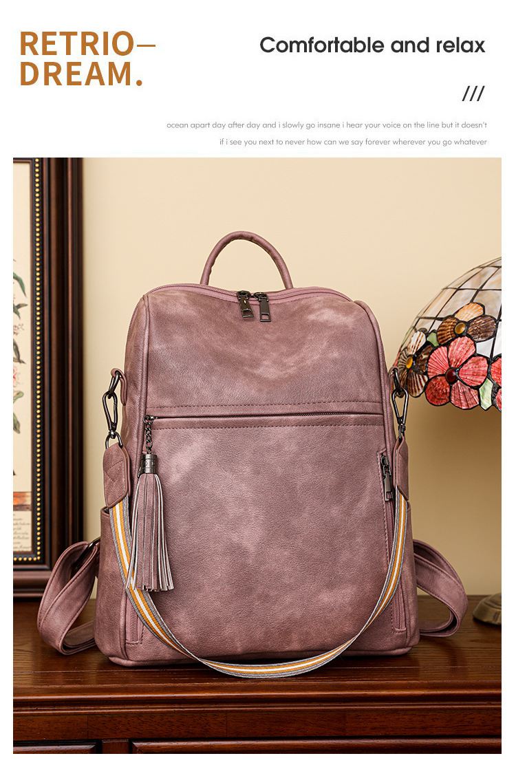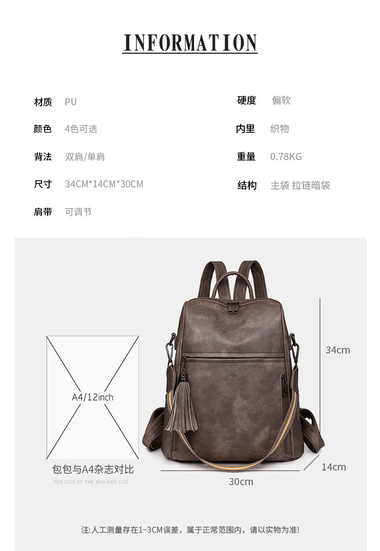 zhen女士双肩包跨境新款复古休闲背包单肩斜挎包
