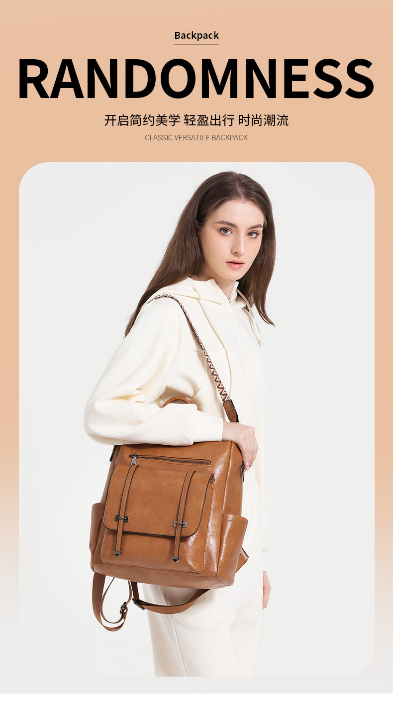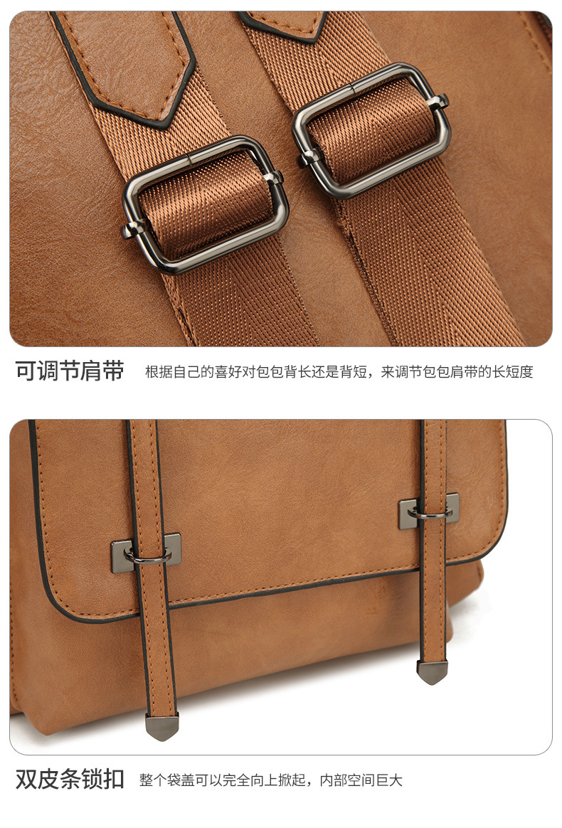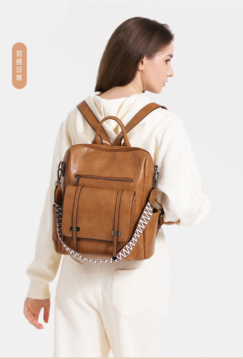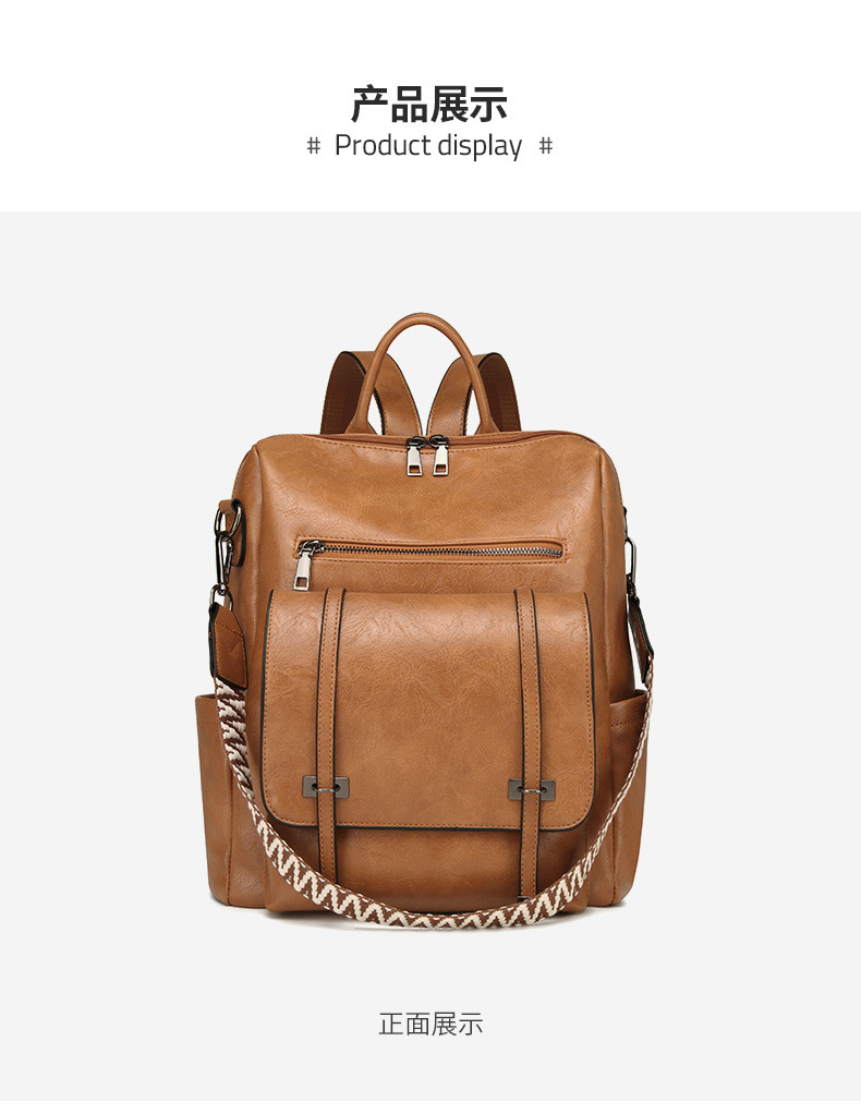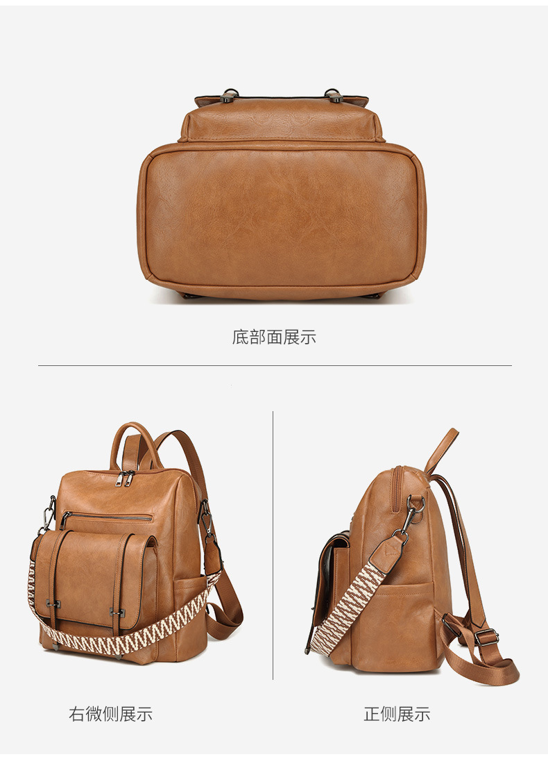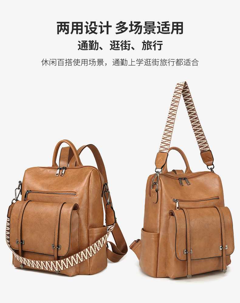跨境复古女士双肩包新款高级感PU软皮两用单肩包通勤背包