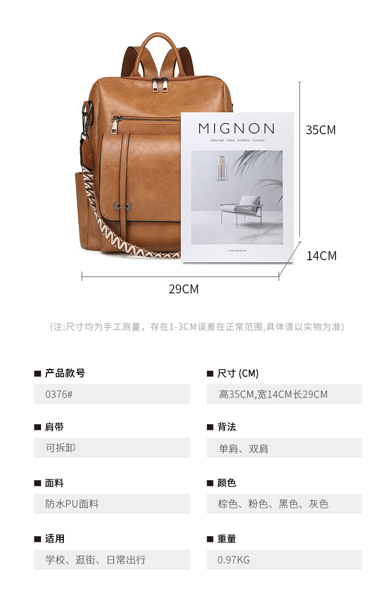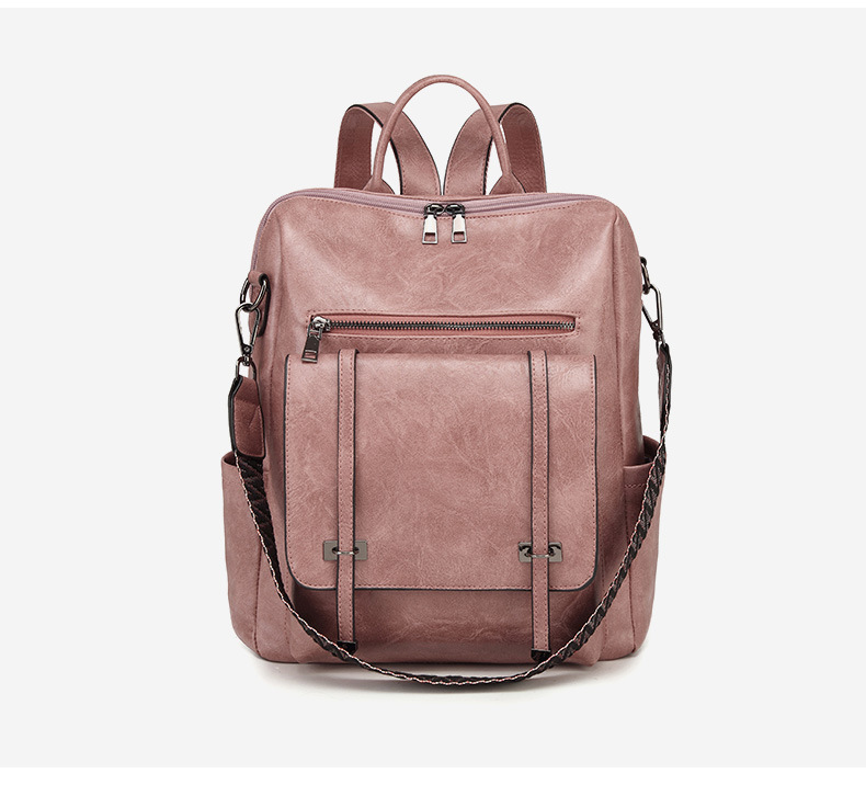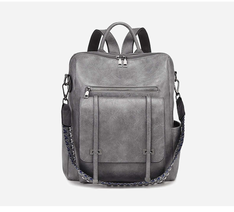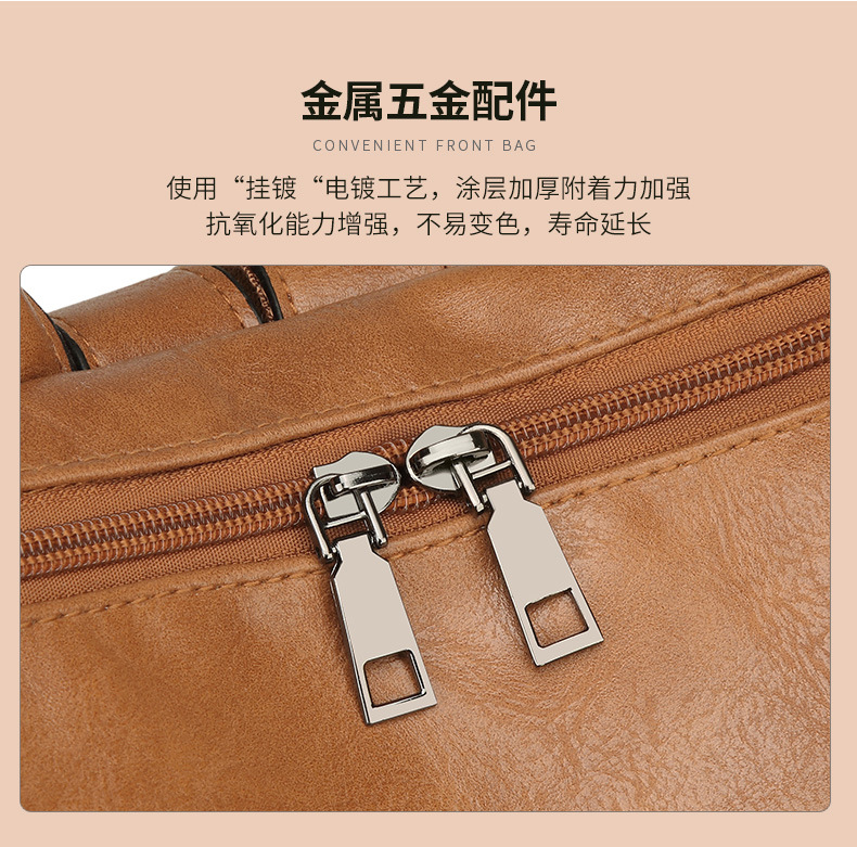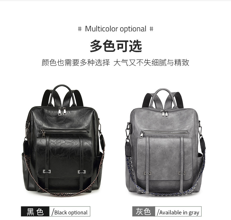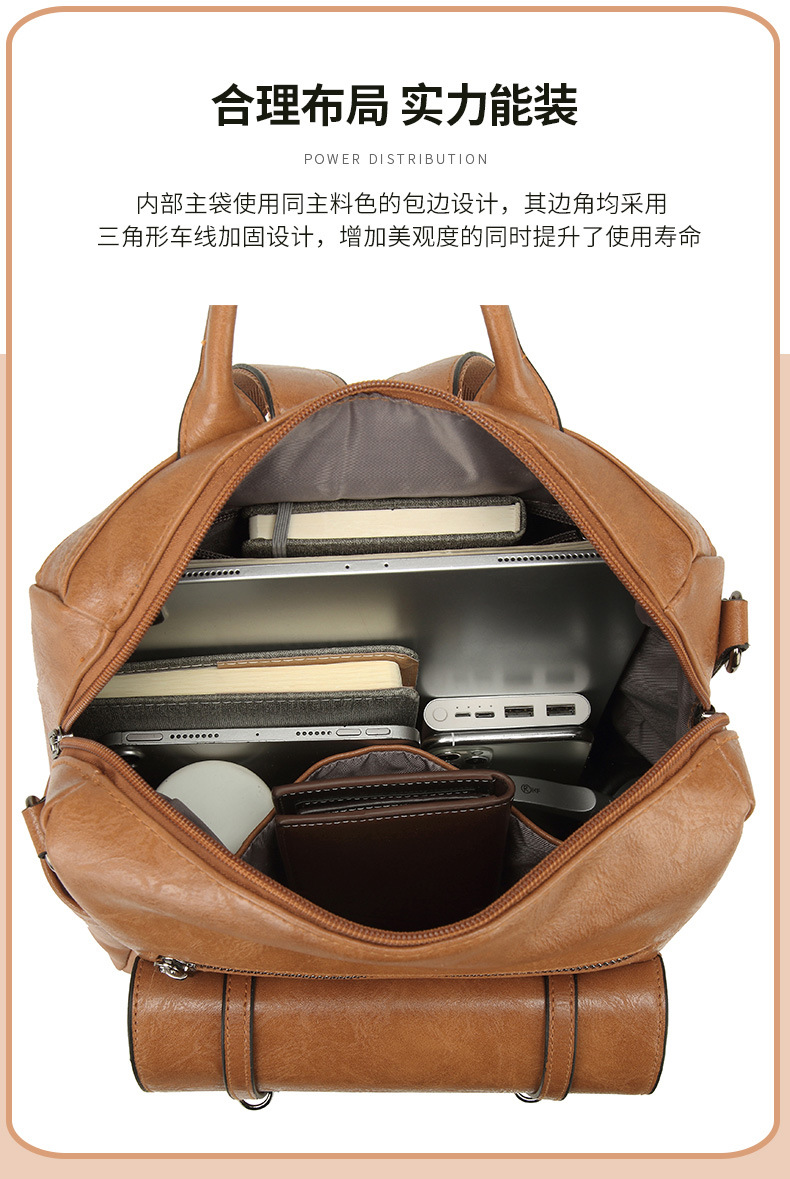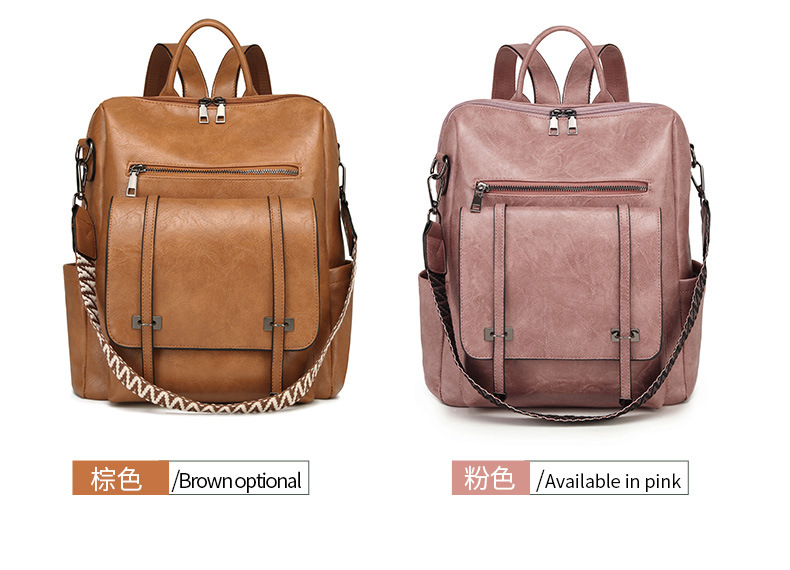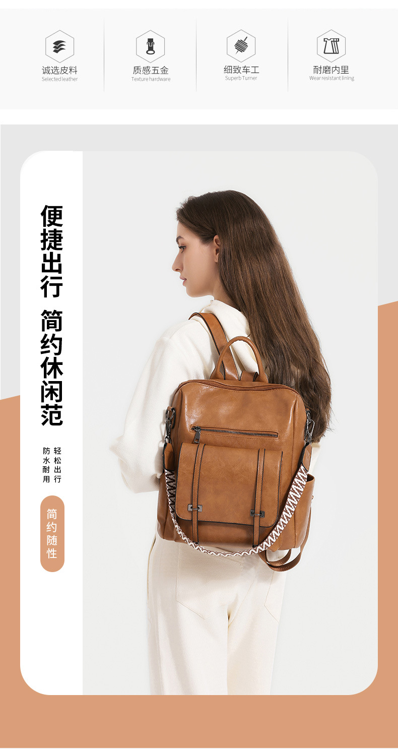 跨境复古女士双肩包新款高级感PU软皮两用单肩包通勤背包