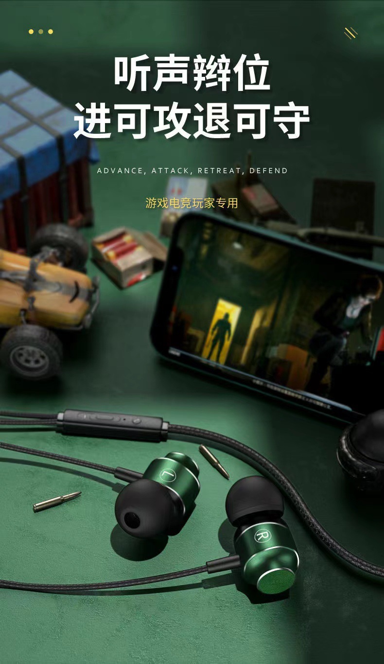 金属磁吸入耳式有线耳机高清音质线控type_c电竞游戏手机耳机工厂