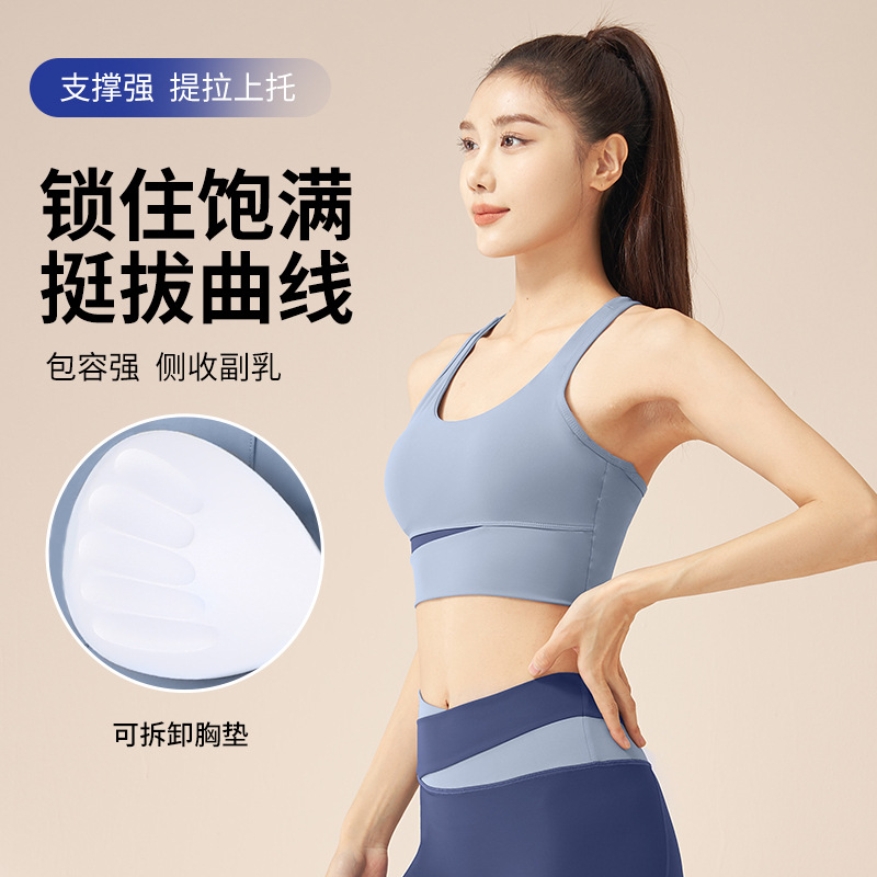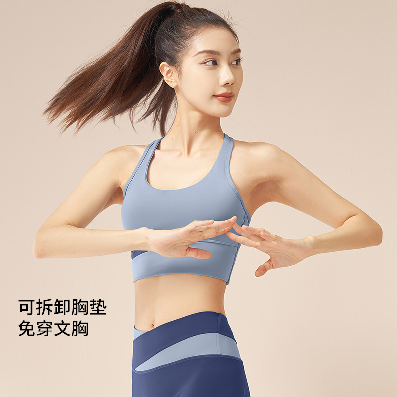 时尚拼接运动内衣无痕强度支撑防震聚拢速干健身背心跑步瑜伽文胸