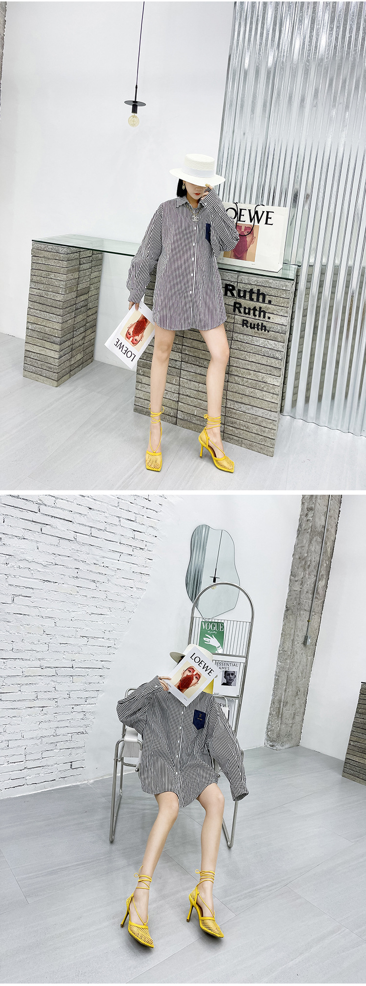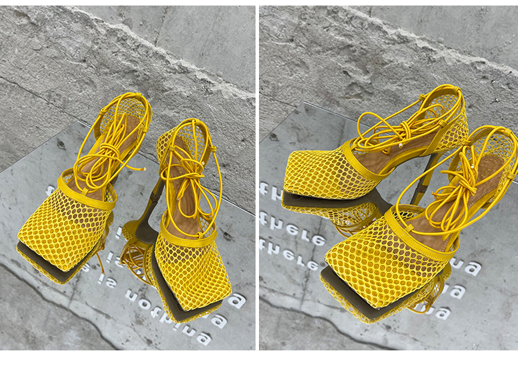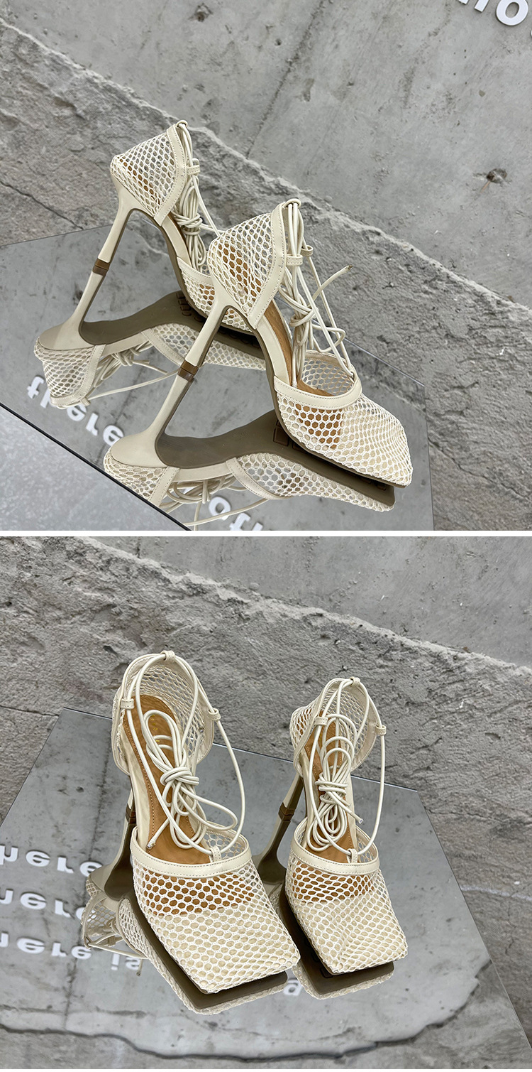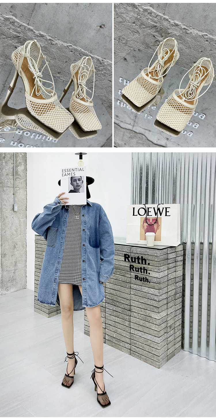 2023欧美时尚凉鞋网纱透气方头绑带女士高跟鞋979-8长期现货
