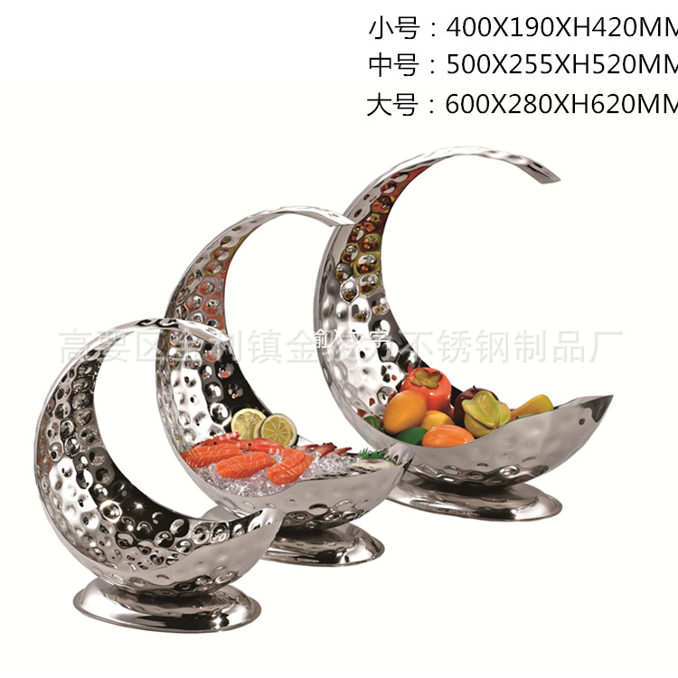 厂家直销不锈钢创意水果蓝锤印半圆形刺身盘酒店自助餐料理盘架