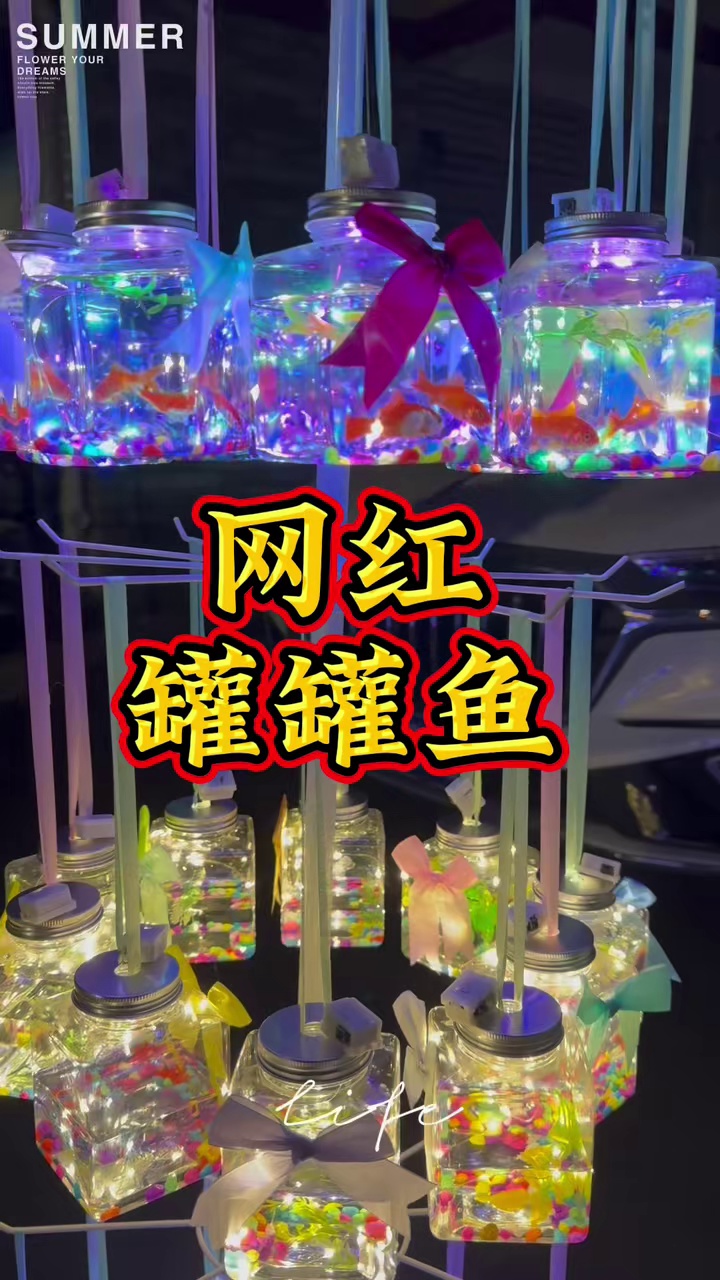 罐罐鱼全套网红罐罐夜市摆摊发光水晶泡泡鱼瓶子水草彩石灯材批发
