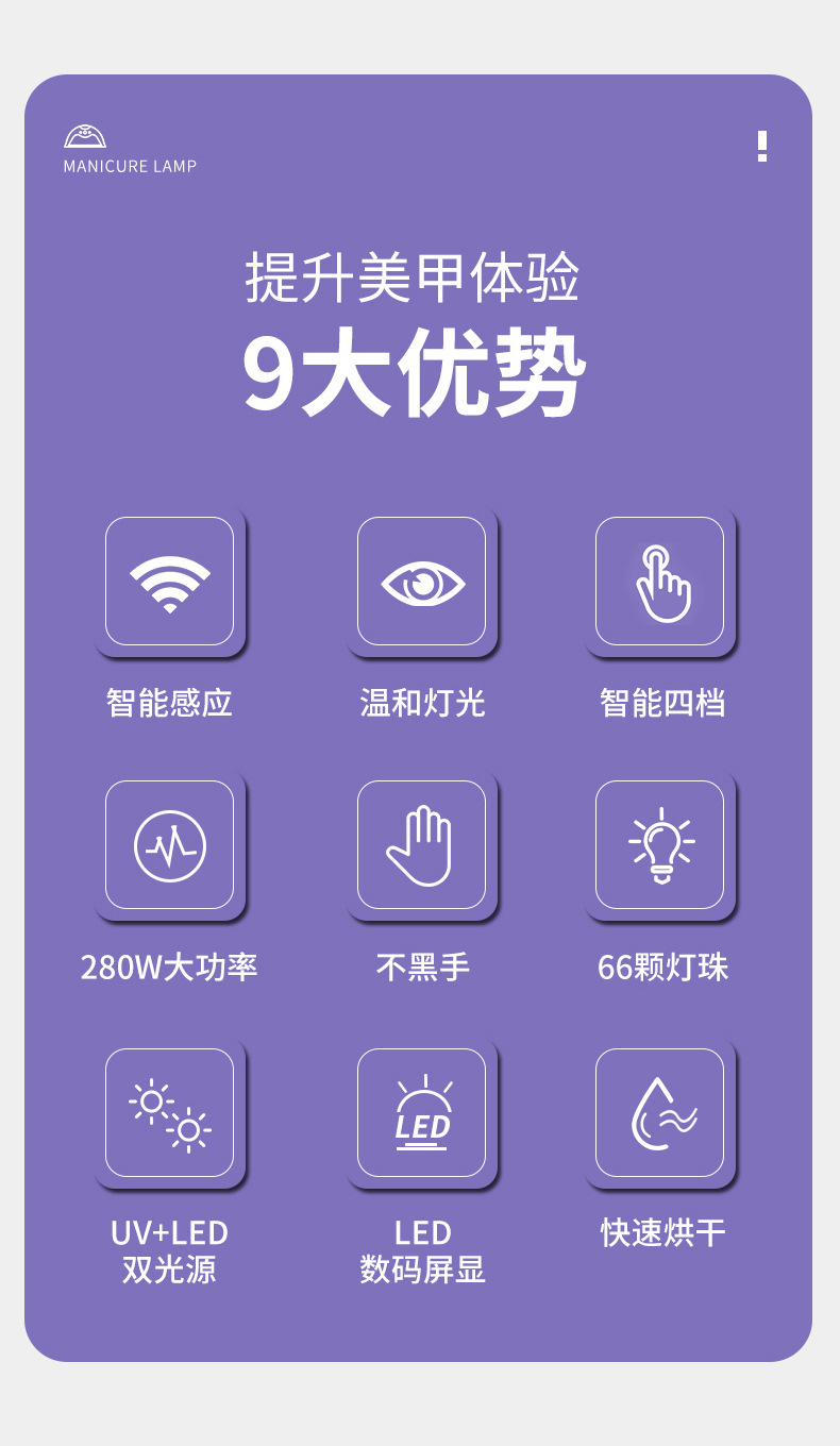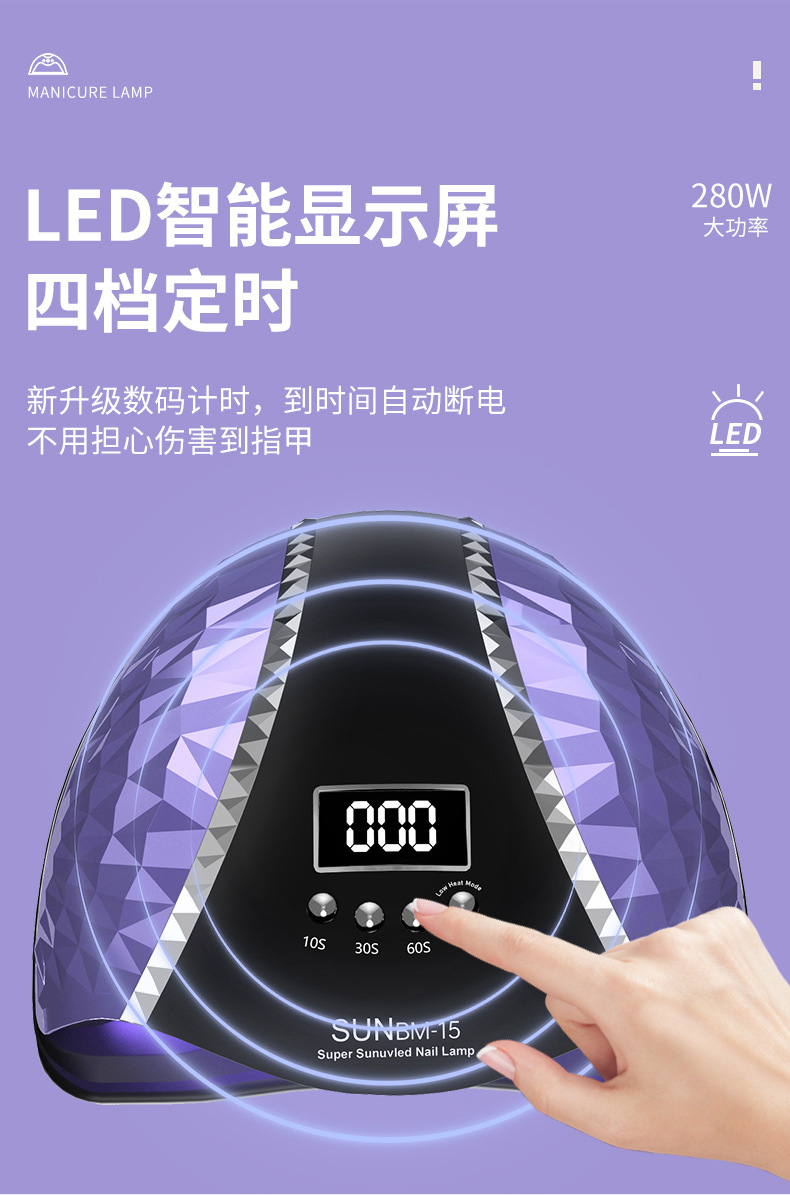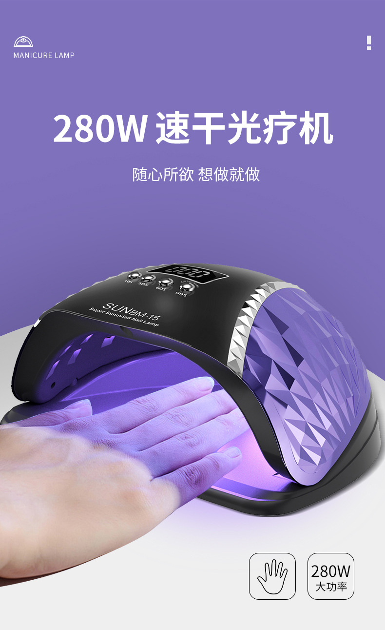 美甲灯大功率光疗灯指甲油胶美甲烤灯速干照灯UV固化灯BM15