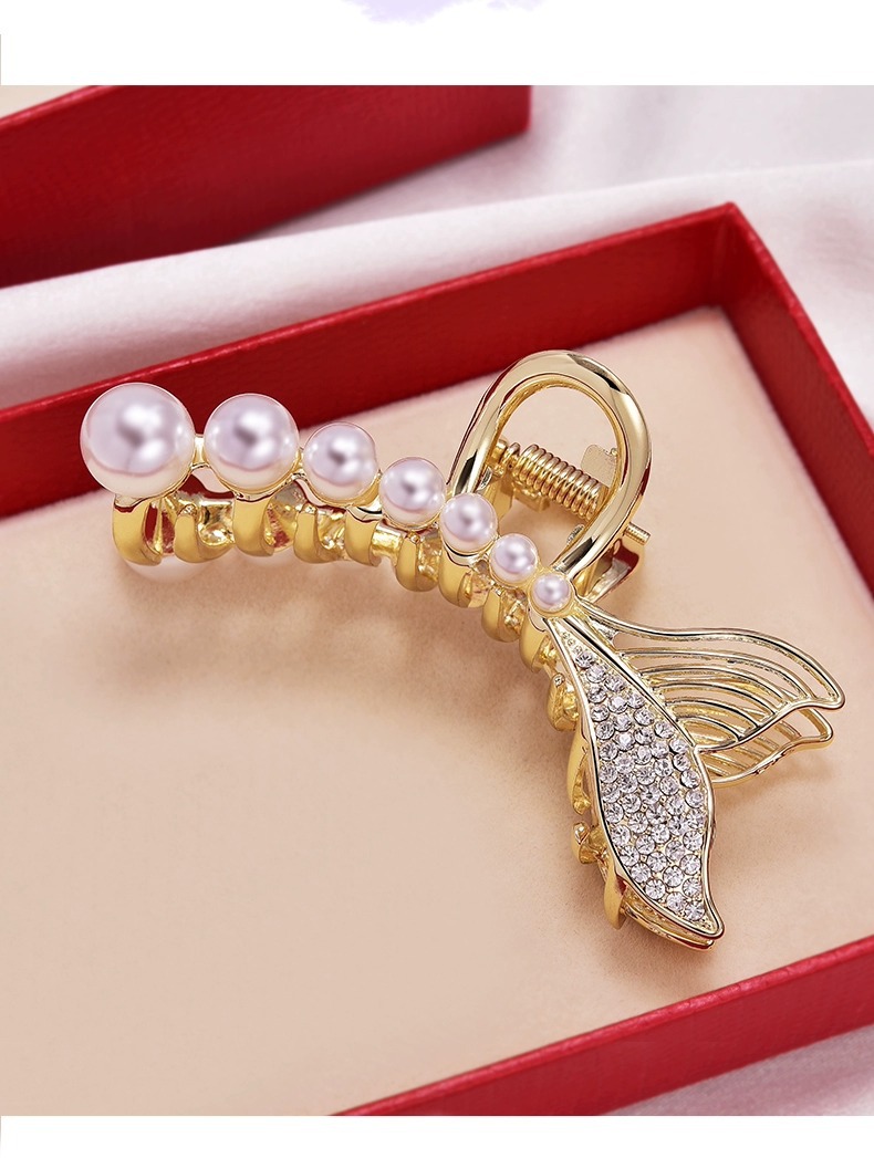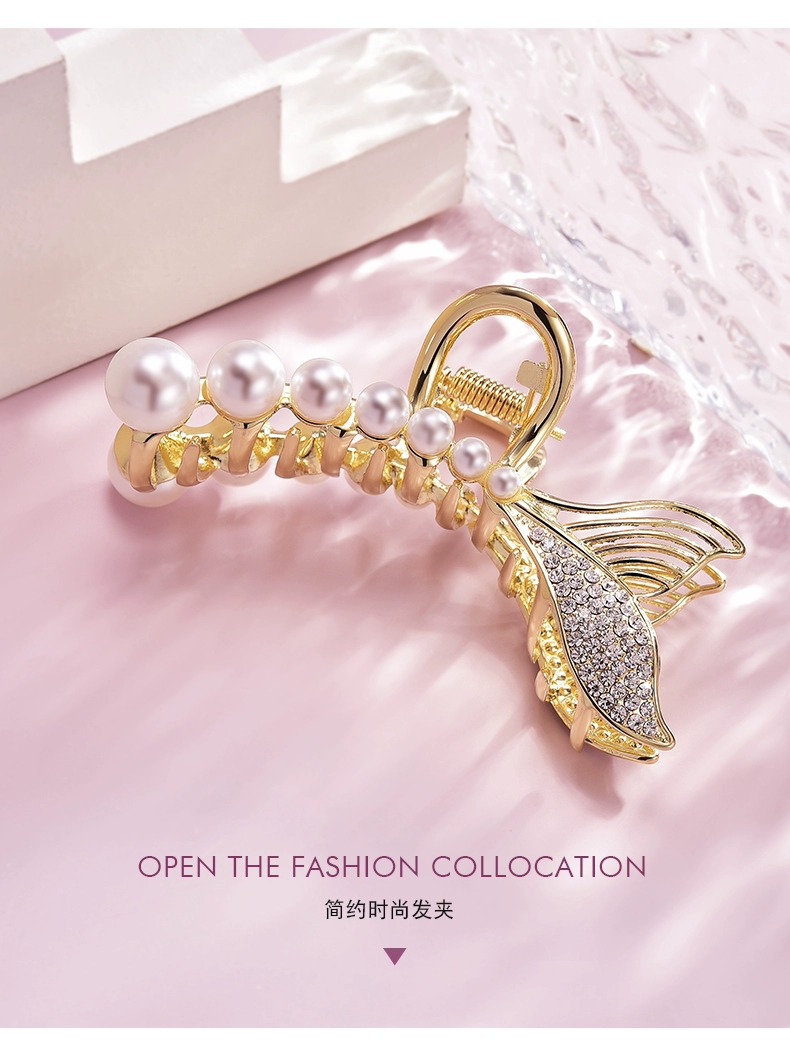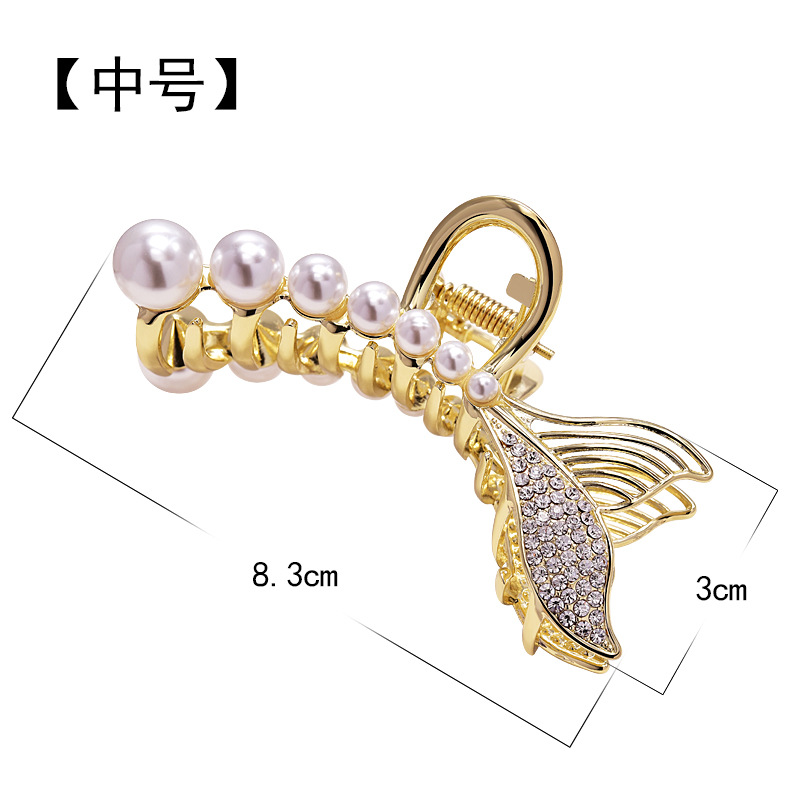 水钻珍珠鱼尾抓夹后小号发夹高级感精致鲨鱼发卡夹子头发抓夹头饰