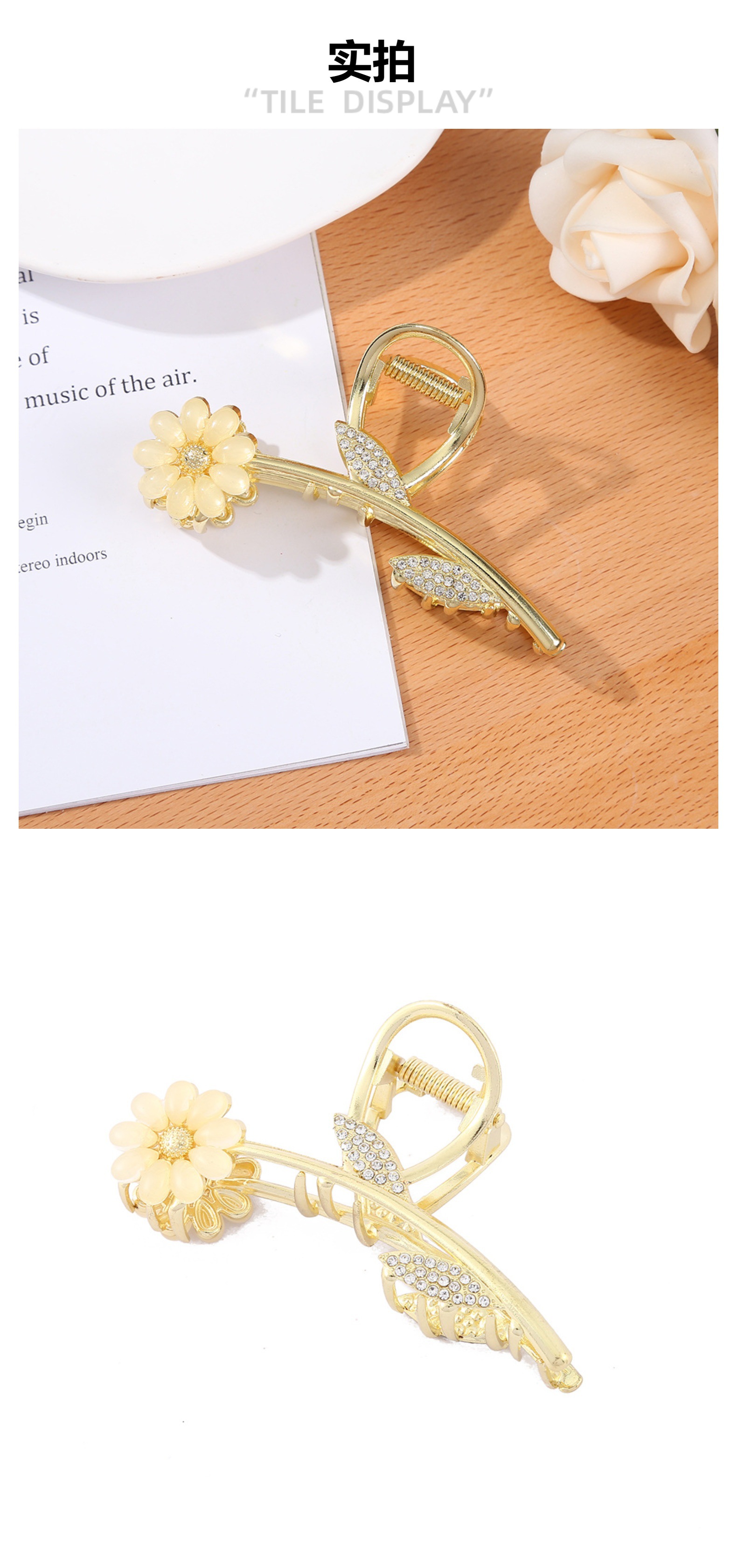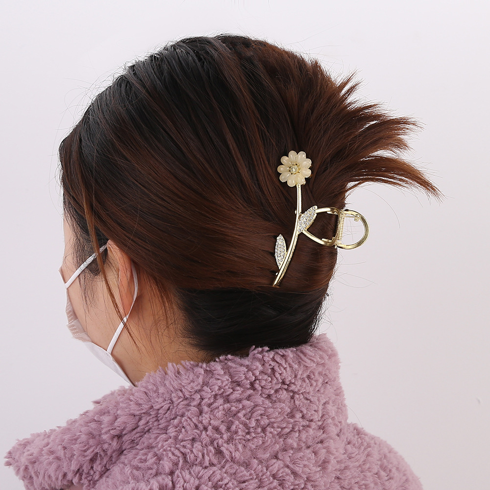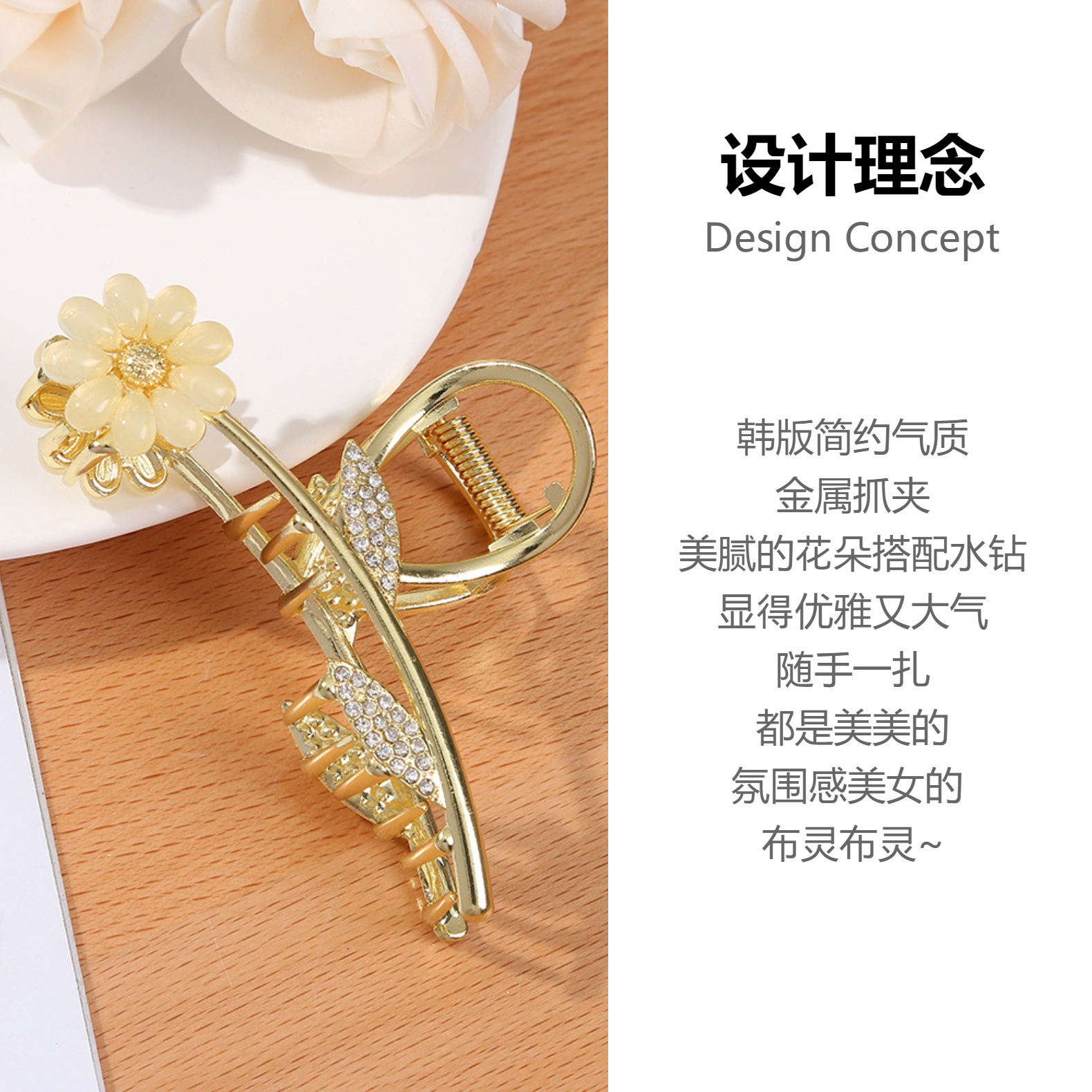 网红雏菊水钻猫眼石发夹女后脑勺花朵抓夹气质鲨鱼夹子头饰发卡子