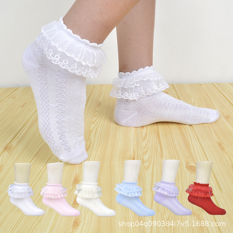 女童花边袜子春秋薄款夏季网眼小学生批发白色舞蹈儿童蕾丝公主袜