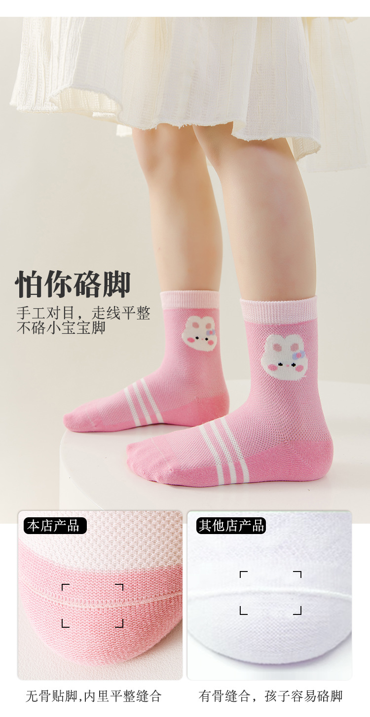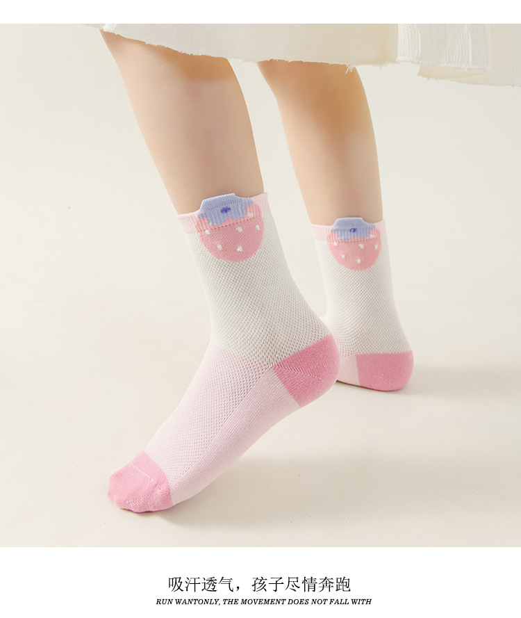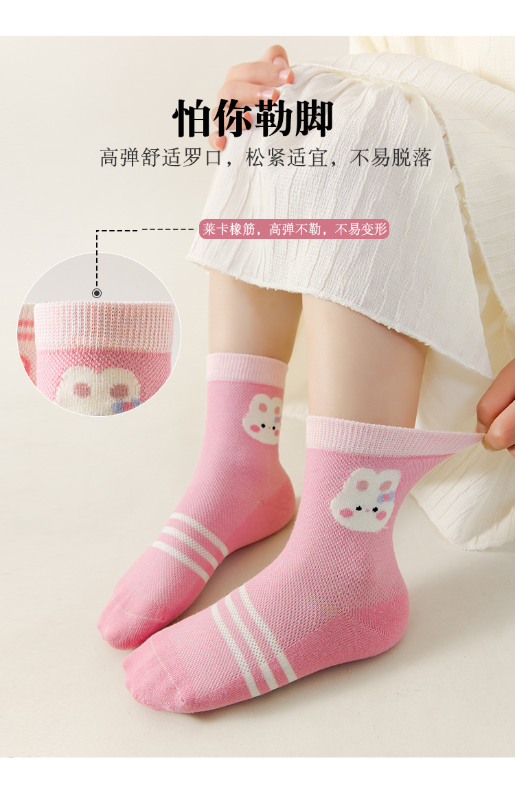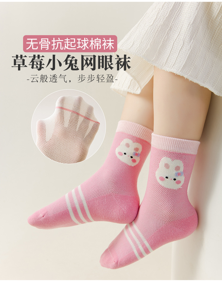 无骨儿童袜子女童春夏新款透气网眼草莓兔女童袜中大童宝宝袜批发