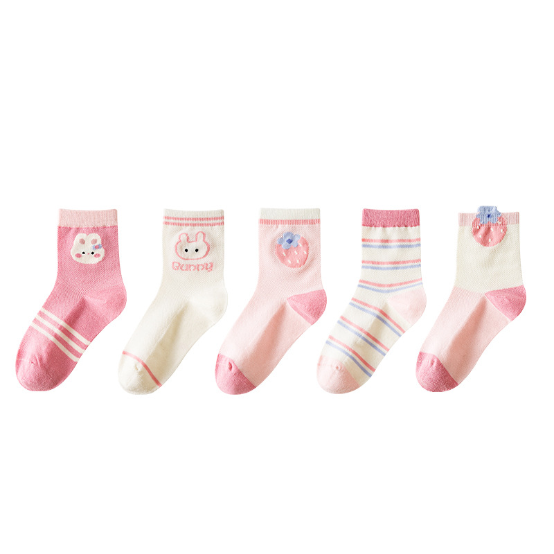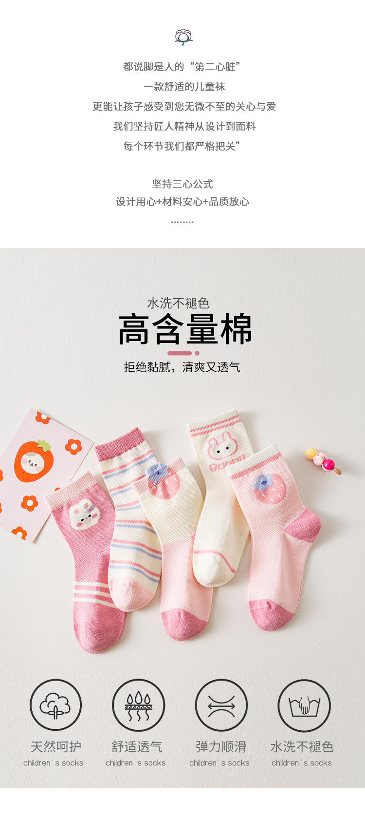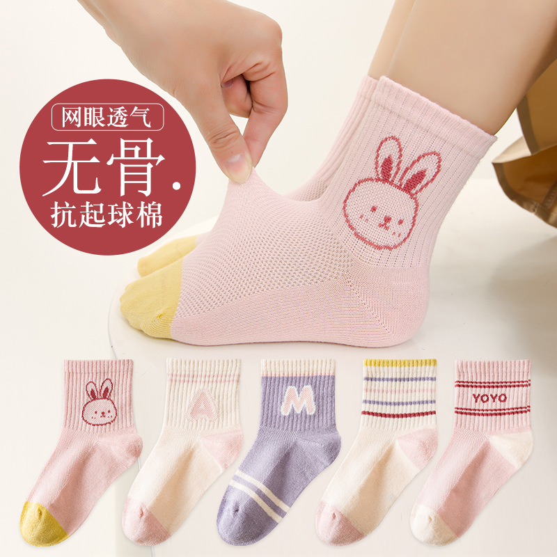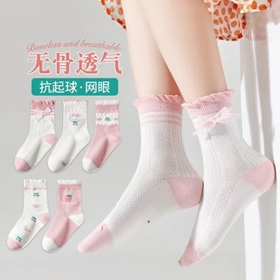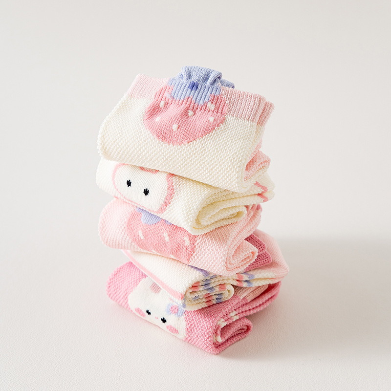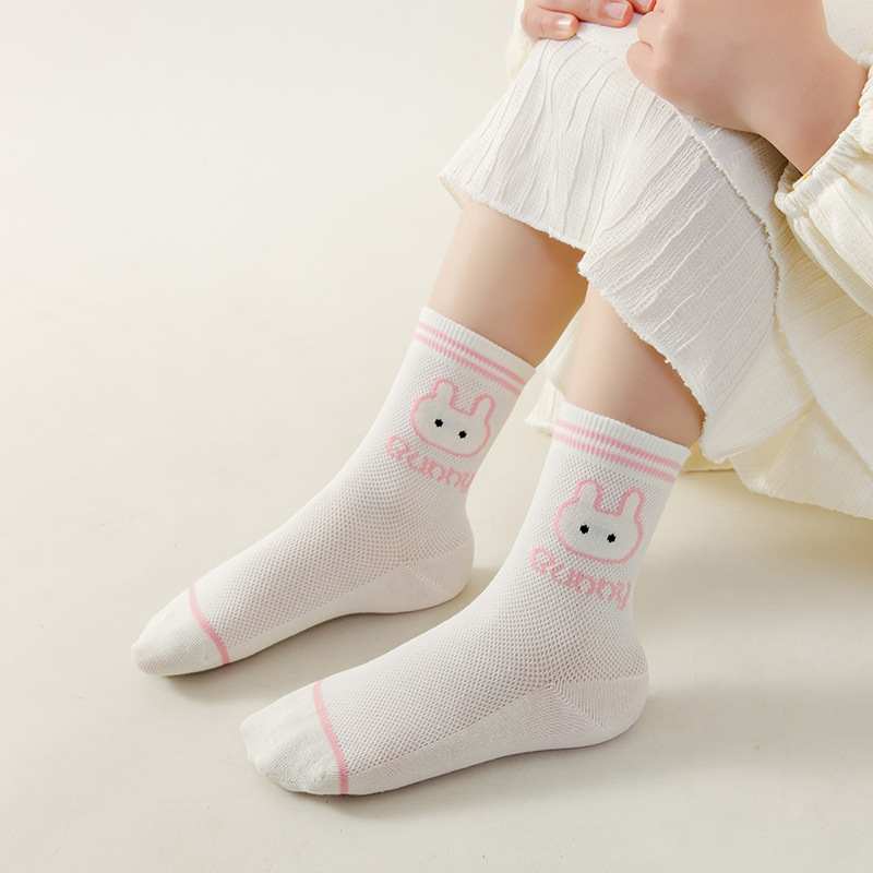 无骨儿童袜子女童春夏新款透气网眼草莓兔女童袜中大童宝宝袜批发