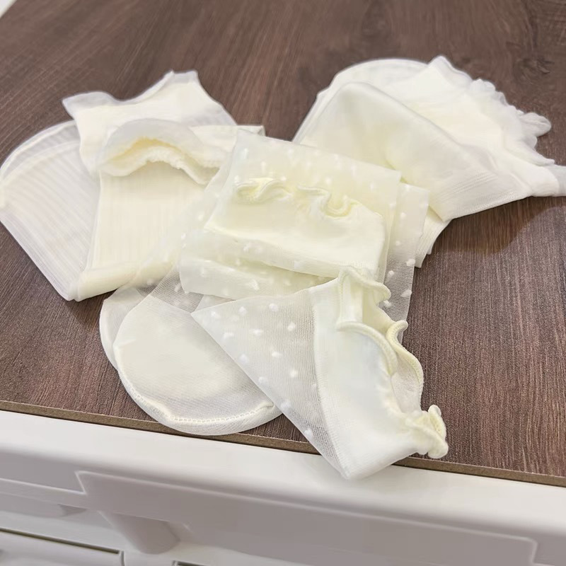 三双包邮儿童超薄无跟袜夏季透气冰丝花边短袜女童透气网眼堆堆袜