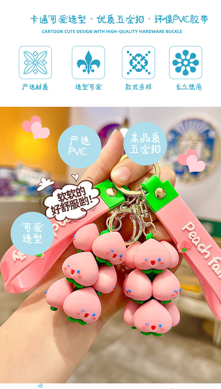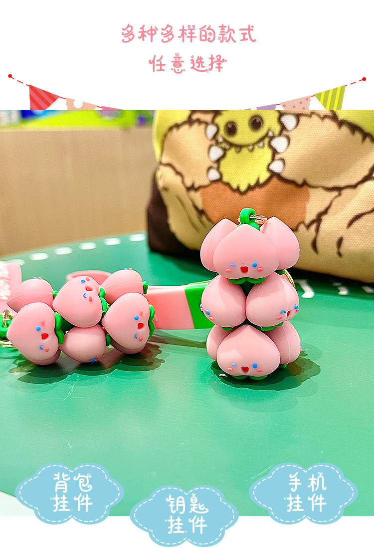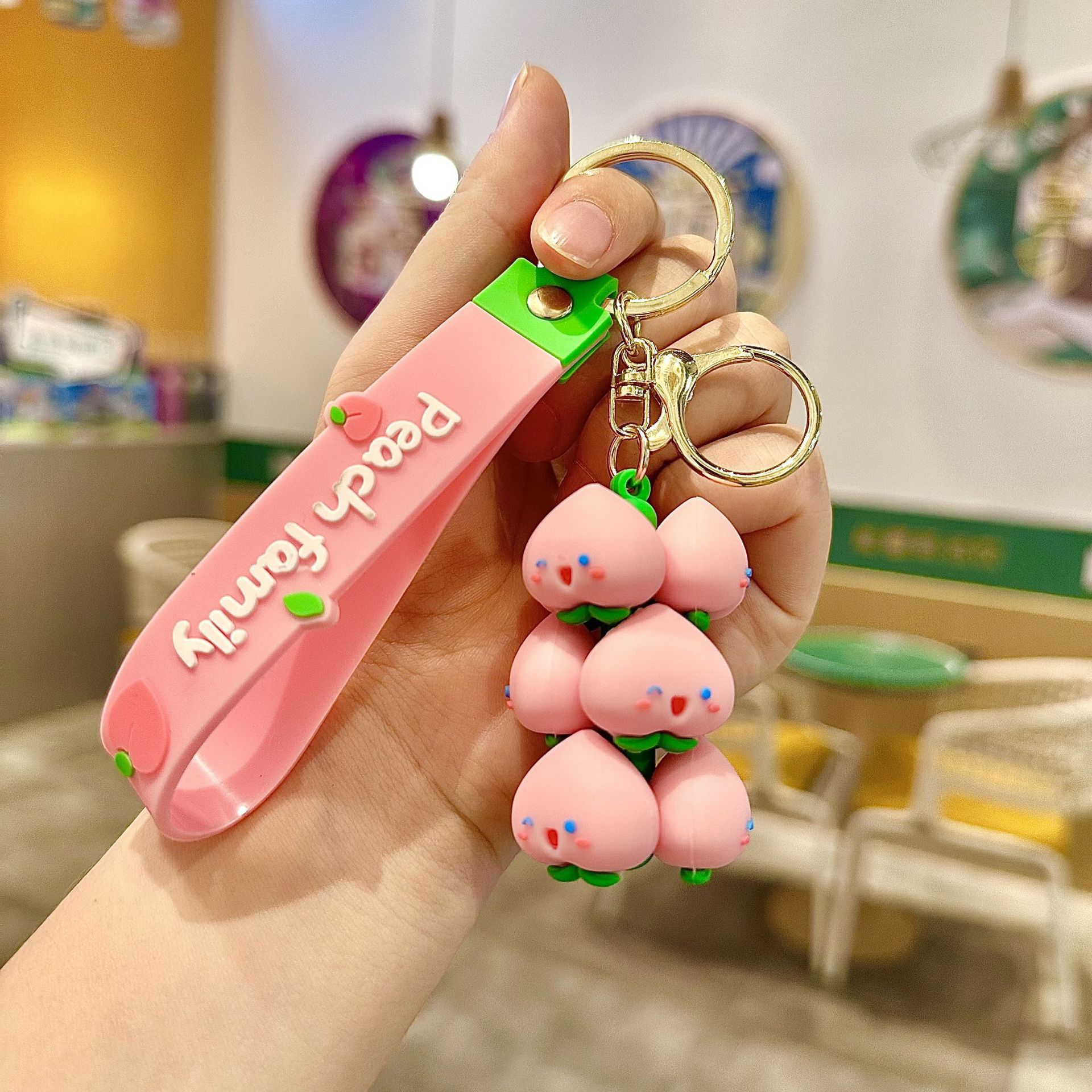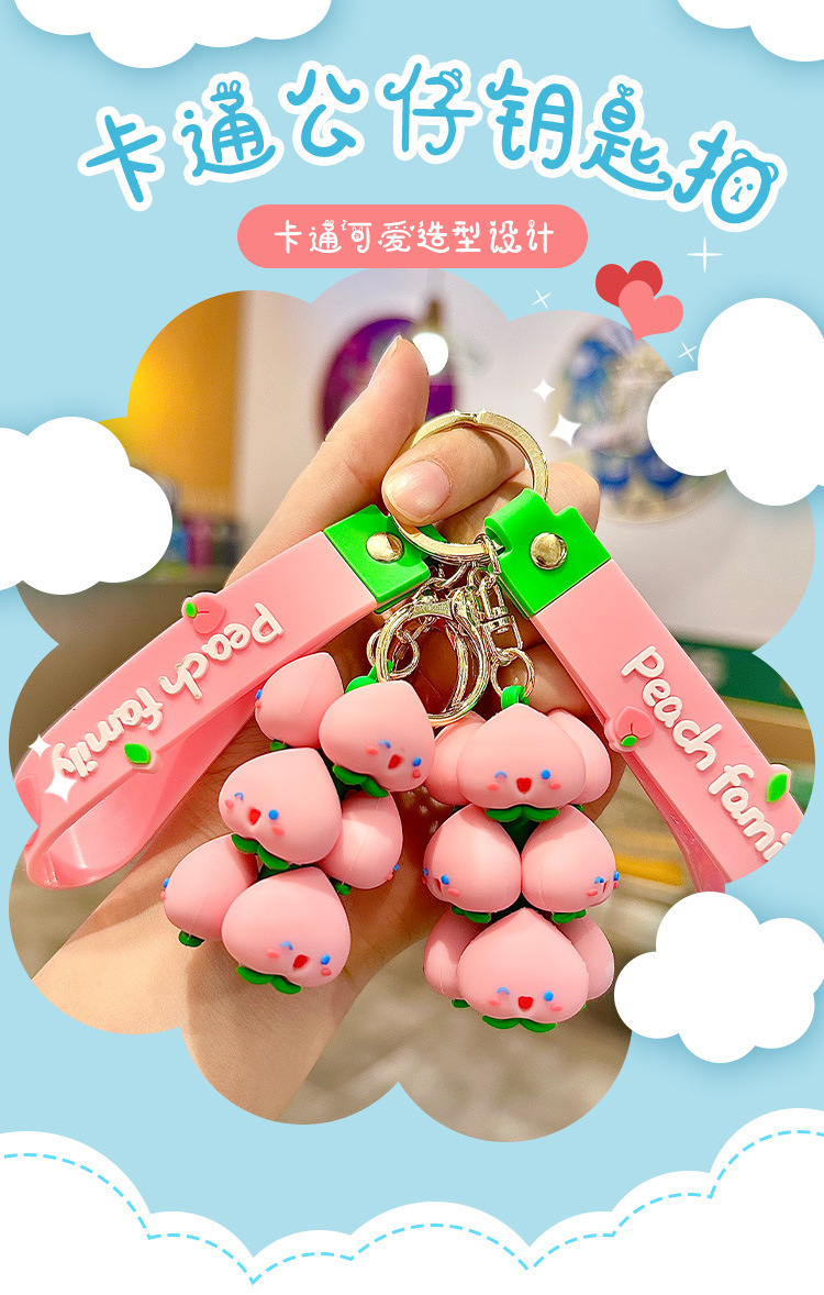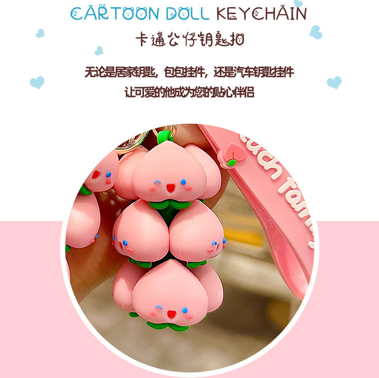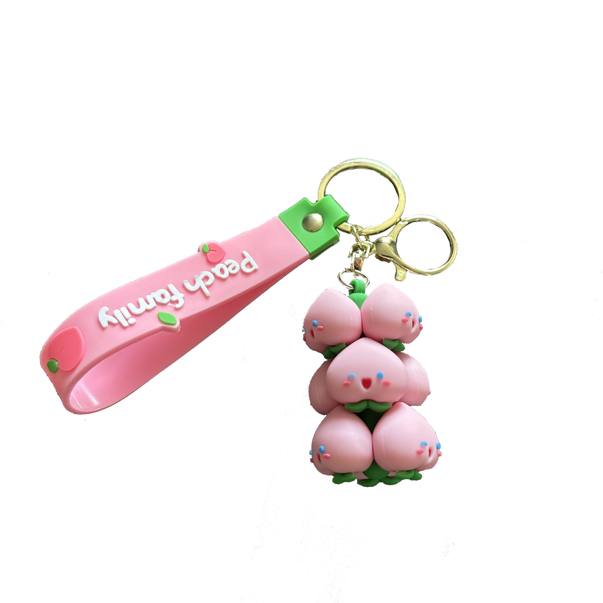 创意水蜜桃叠叠乐钥匙扣挂饰卡通情侣汽车包包钥匙链挂件礼品批发