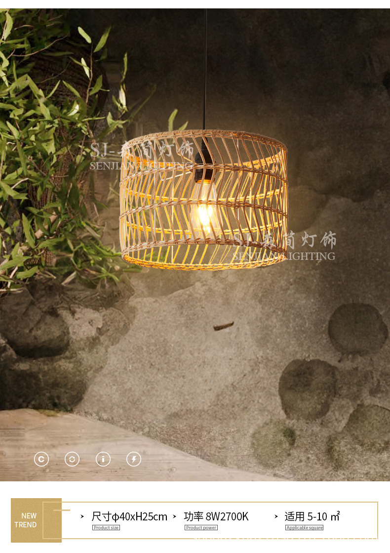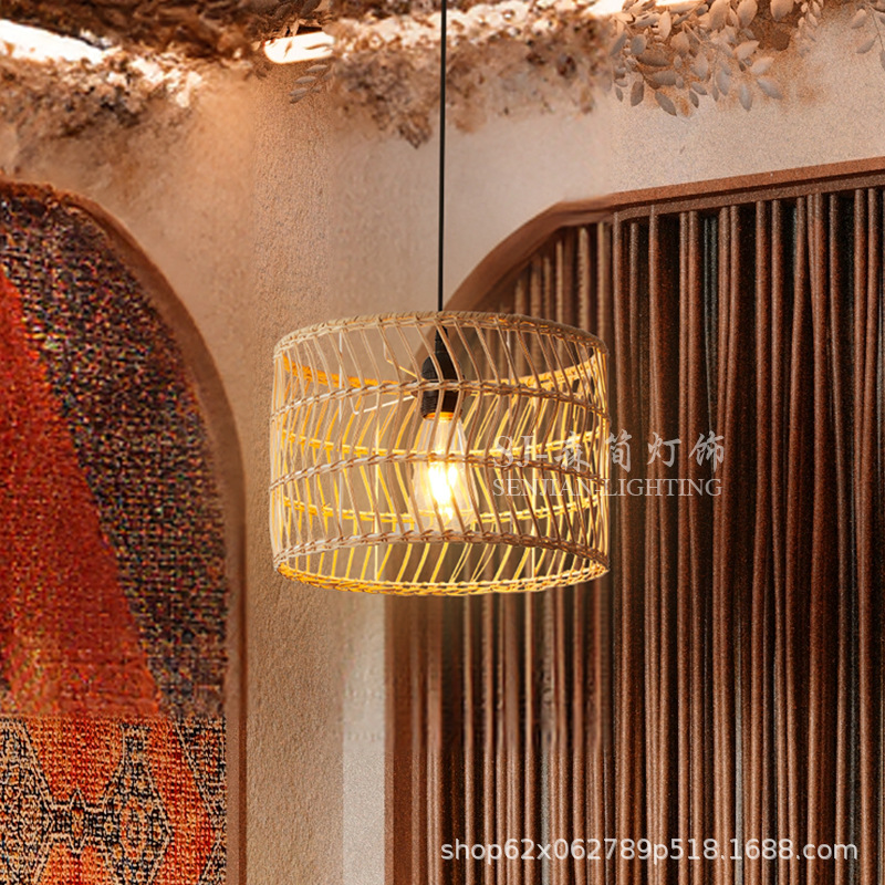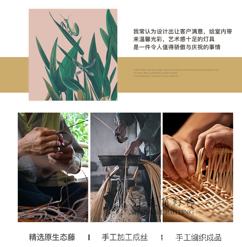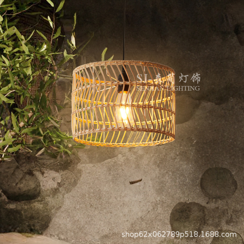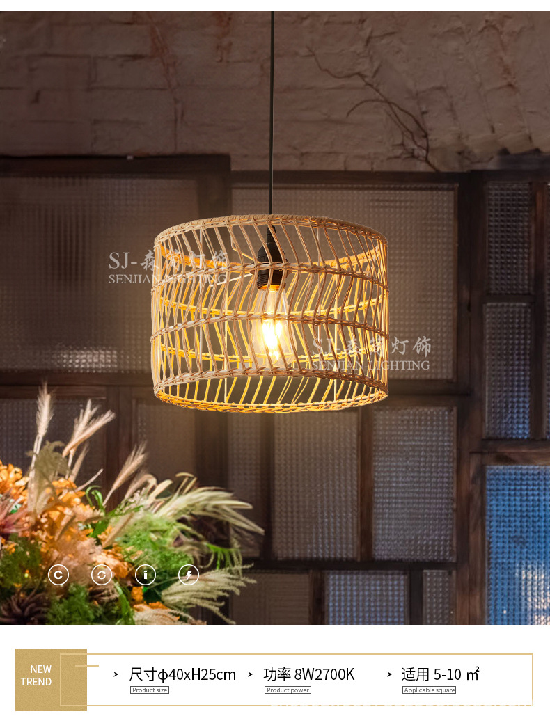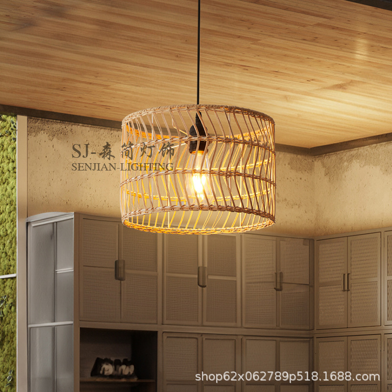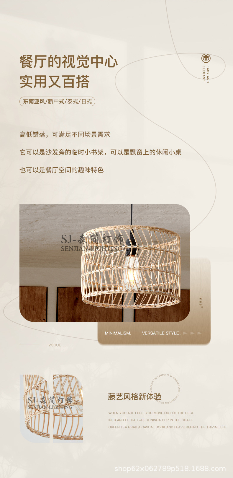 新中式个性创意水波纹竹编织吊灯酒店民宿餐厅咖啡店藤艺编织灯具