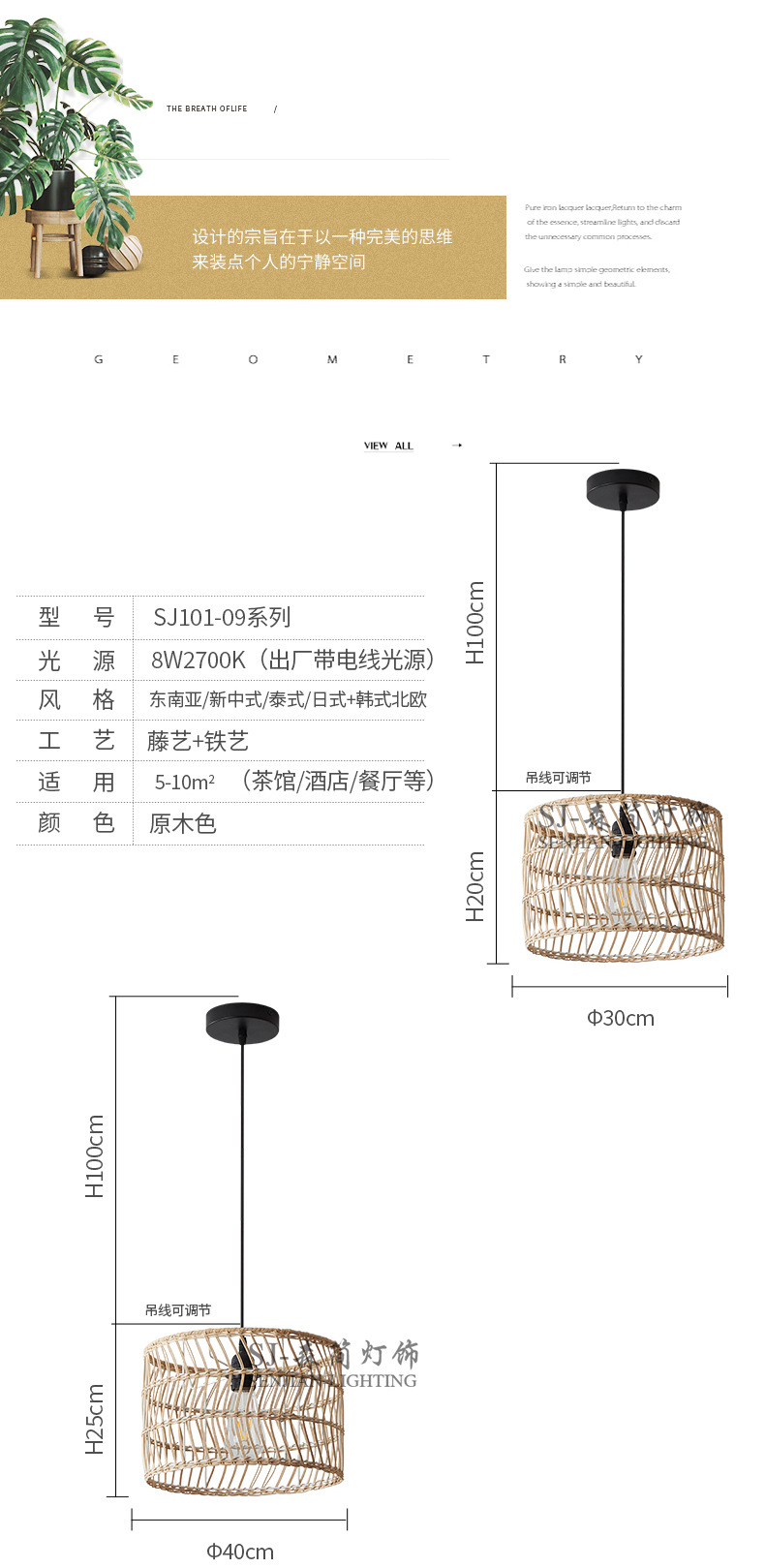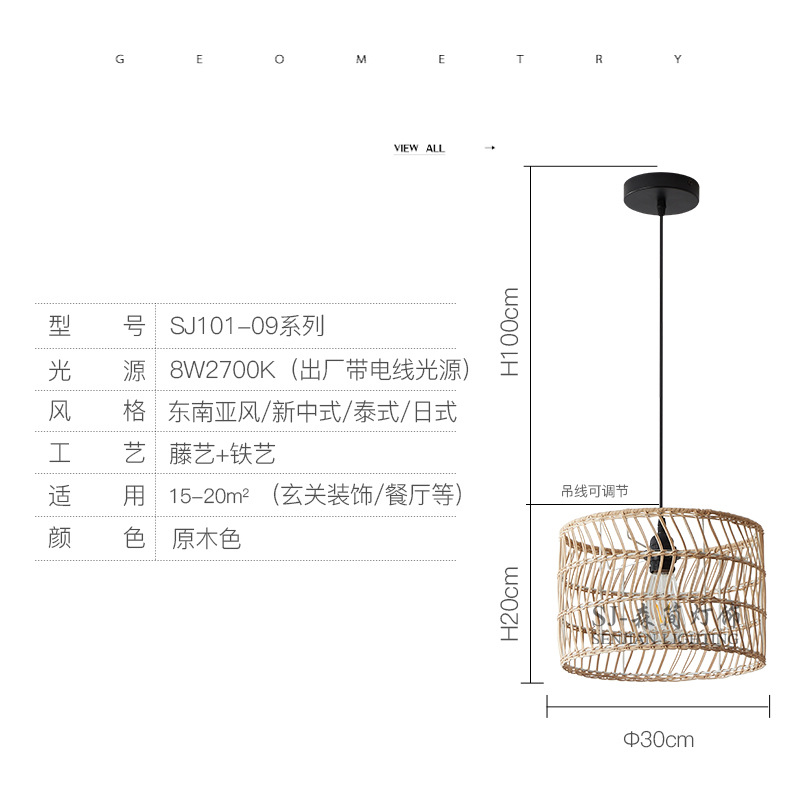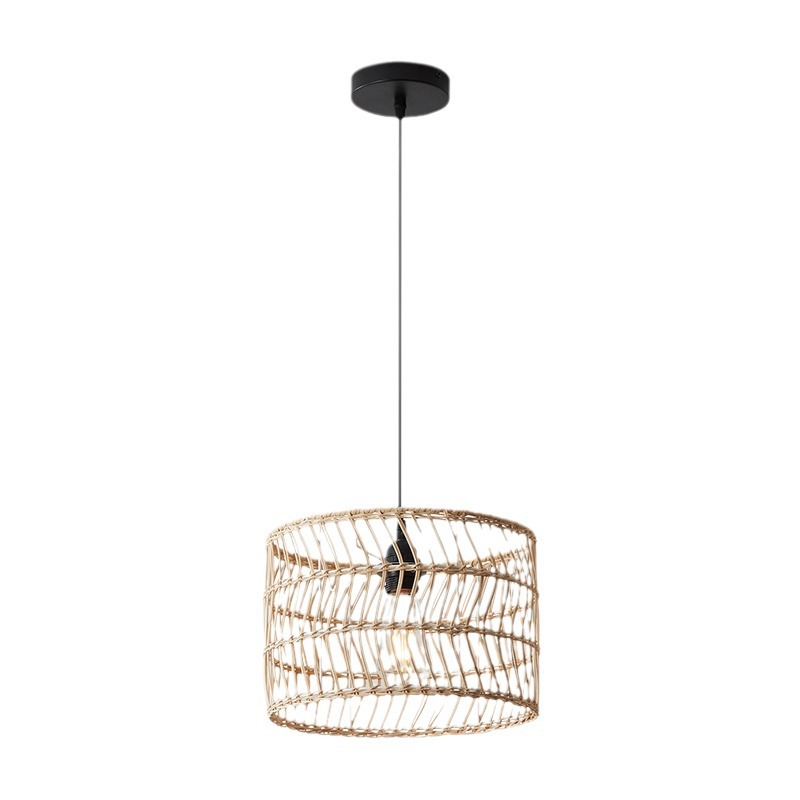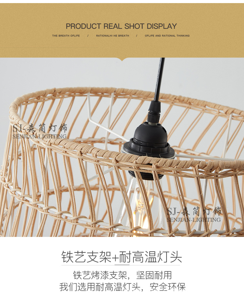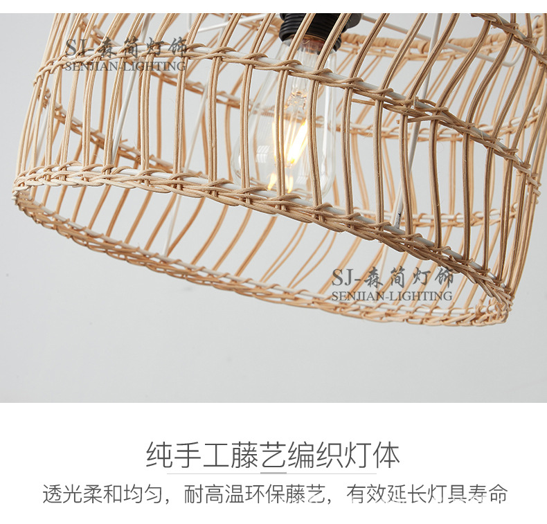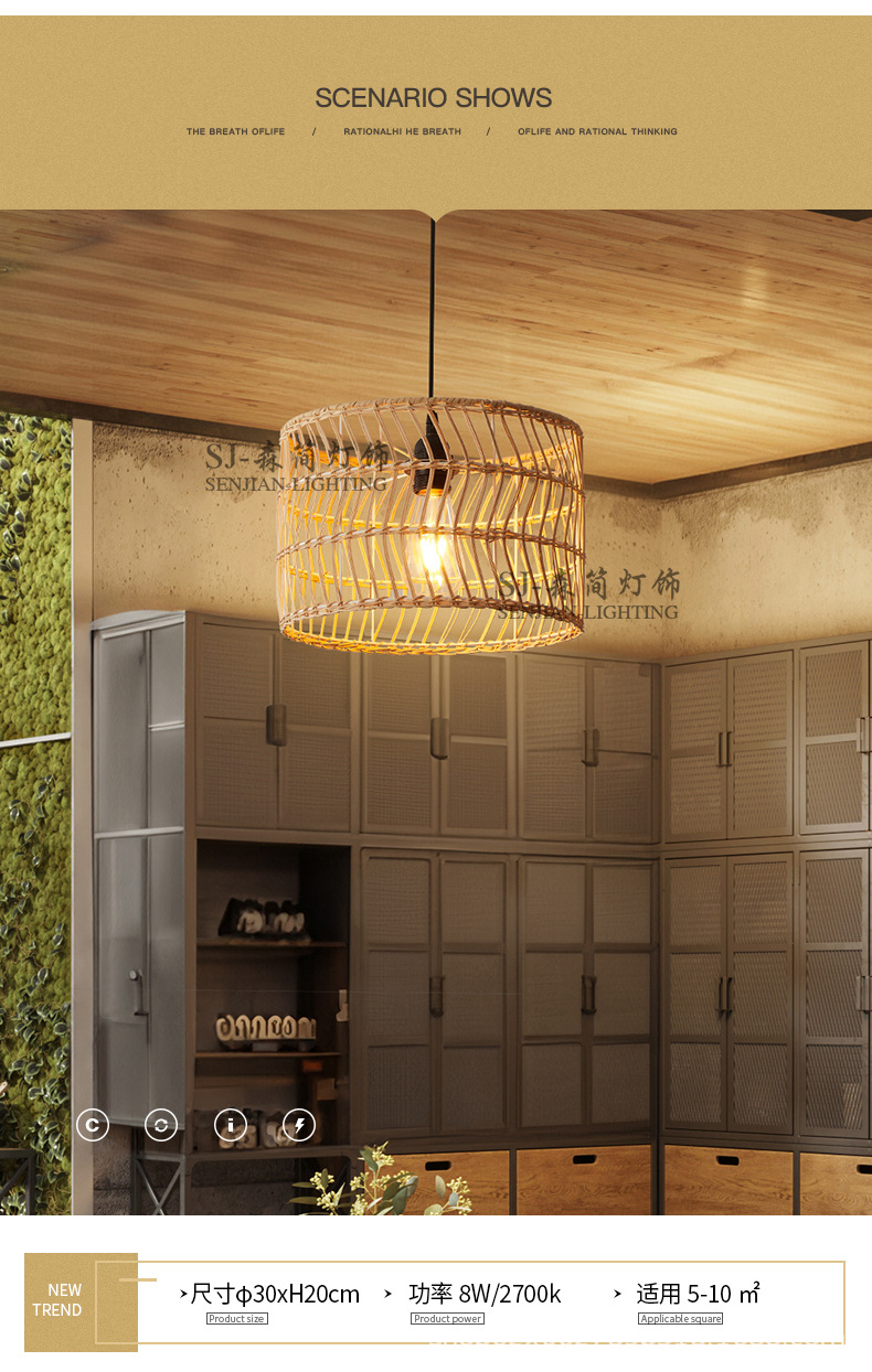 新中式个性创意水波纹竹编织吊灯酒店民宿餐厅咖啡店藤艺编织灯具