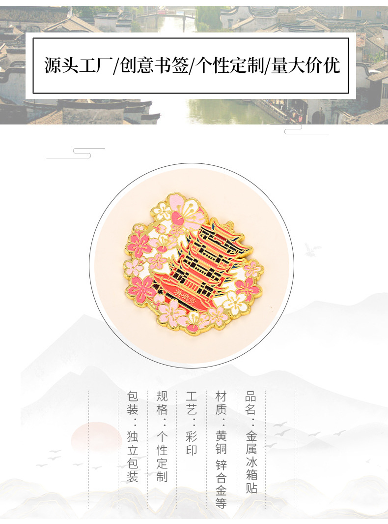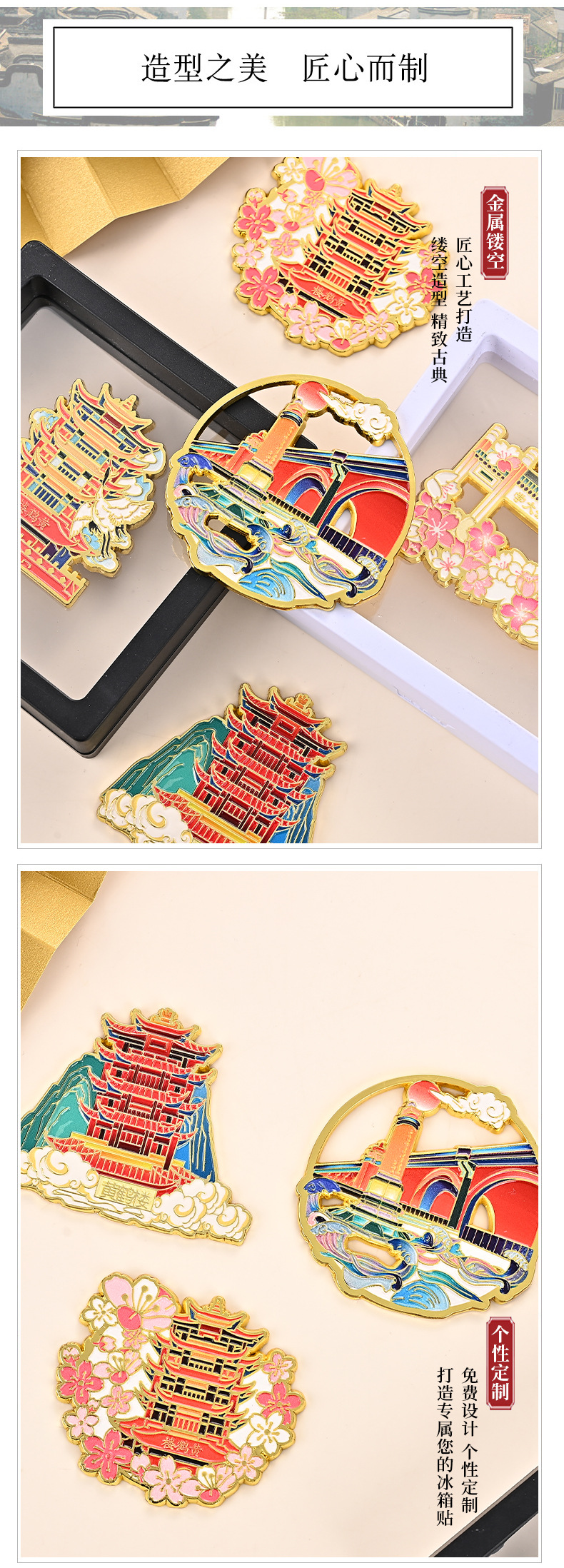 黄鹤楼武汉大学长江大桥旅游景点金属冰箱贴纪念品伴手礼现货