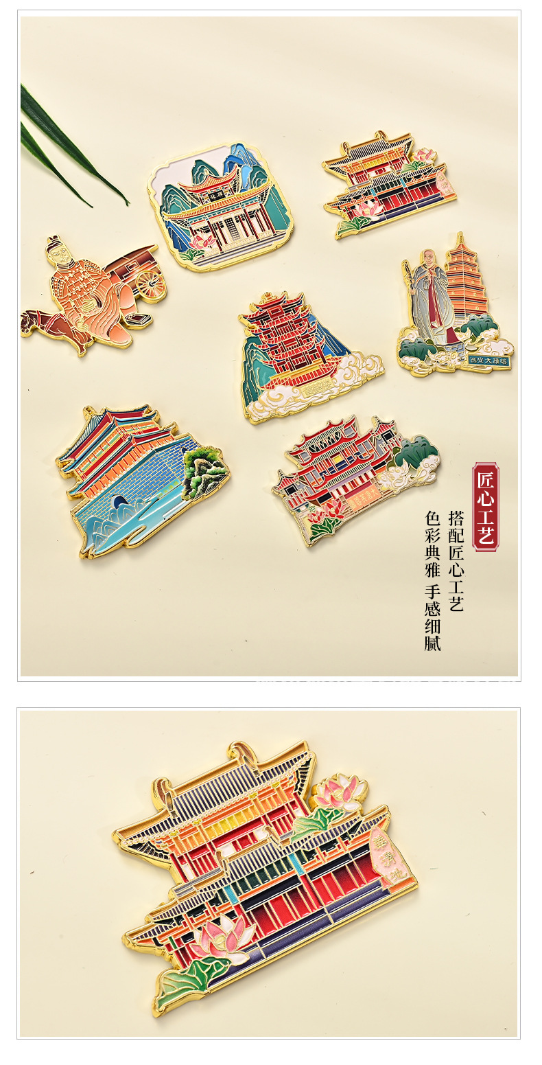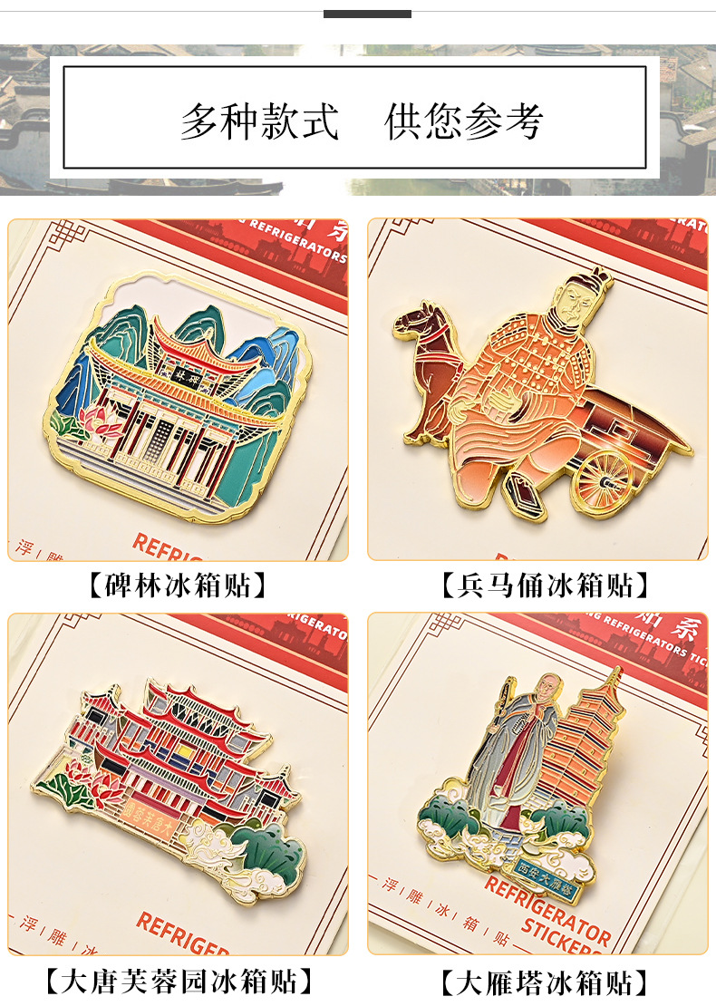 城市地标金属冰箱贴现货兵马俑碑林大雁塔华清池景区中国风纪念品