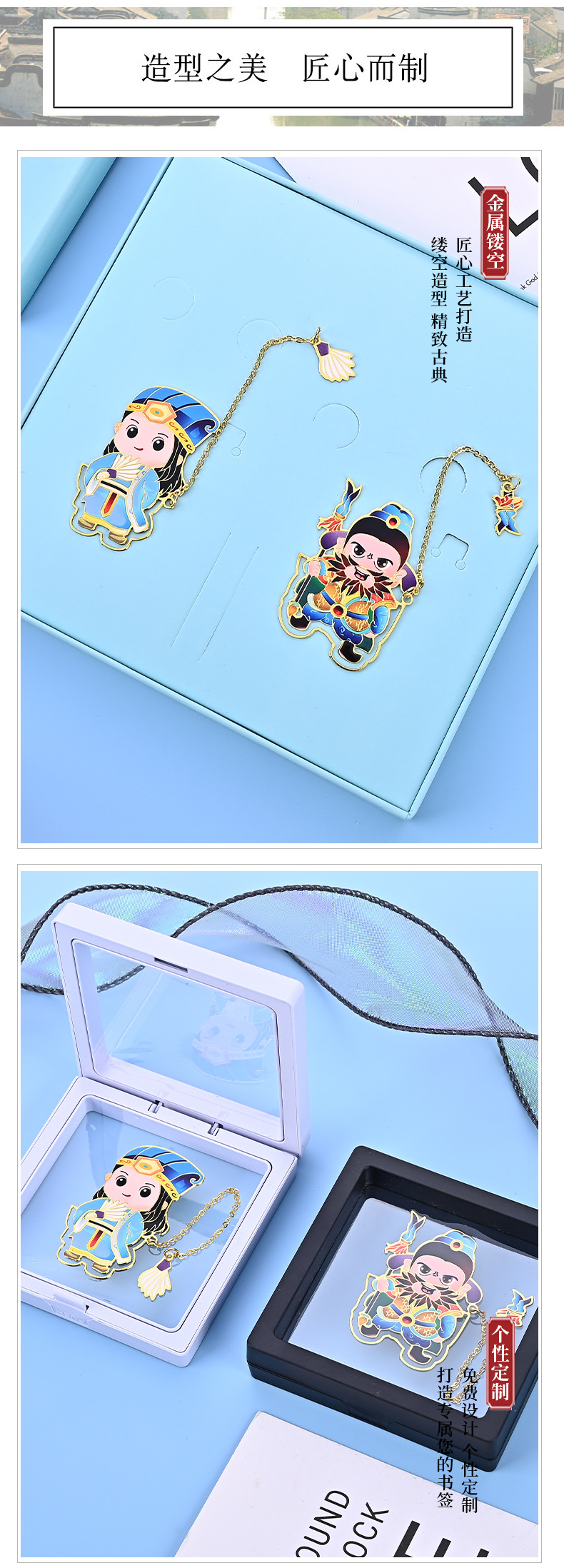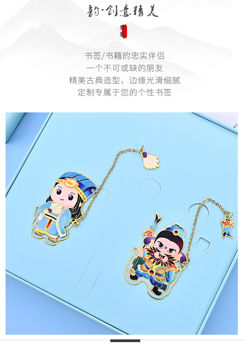 现货书签批发卡通三国人物金属书夹中国风文创学生礼品教师节礼物