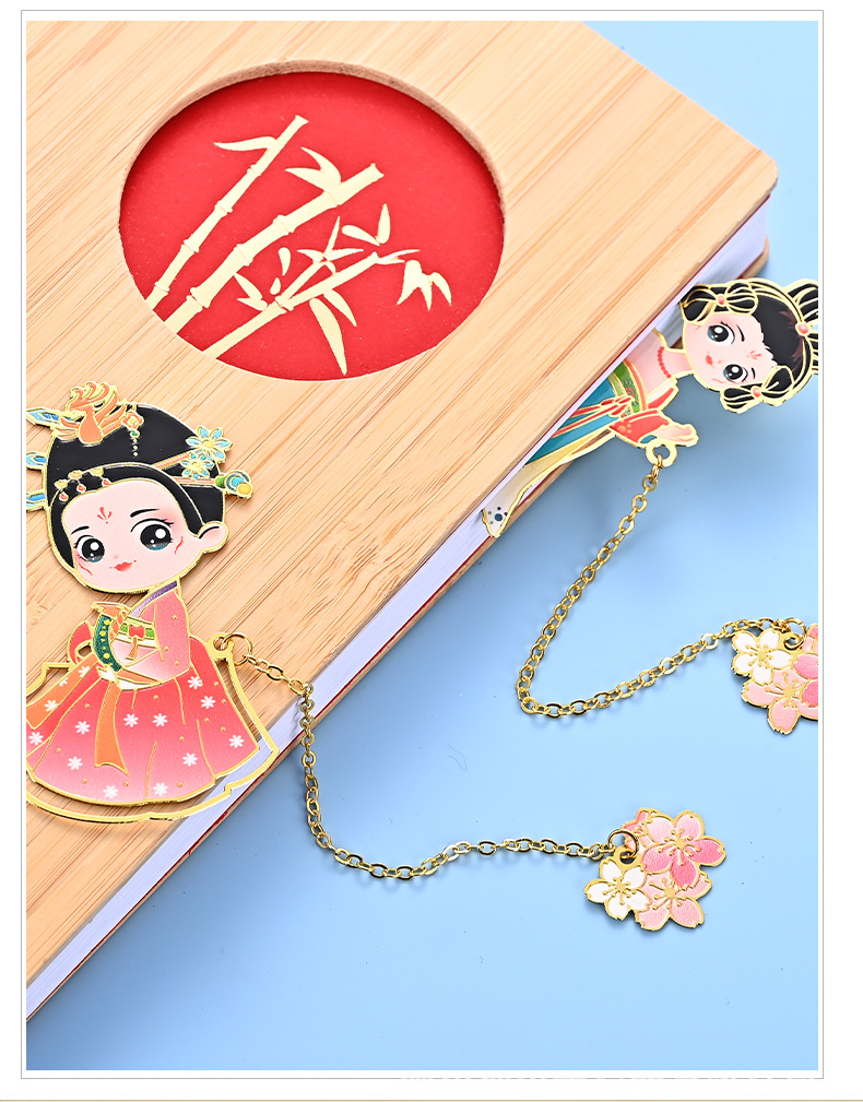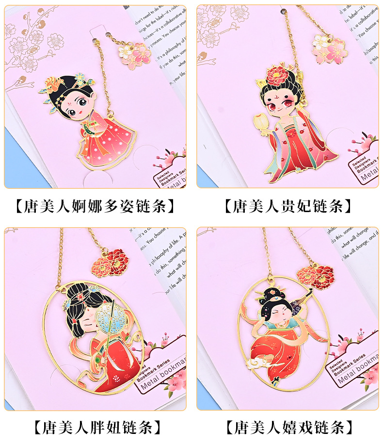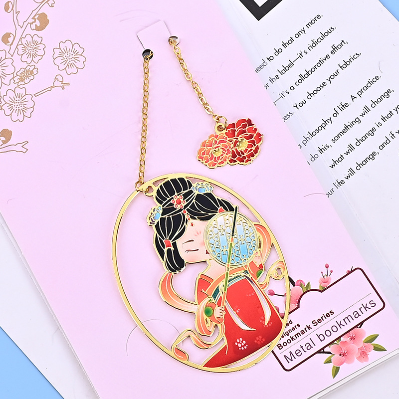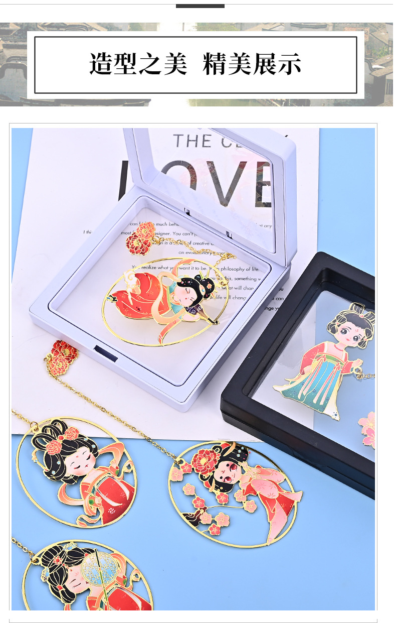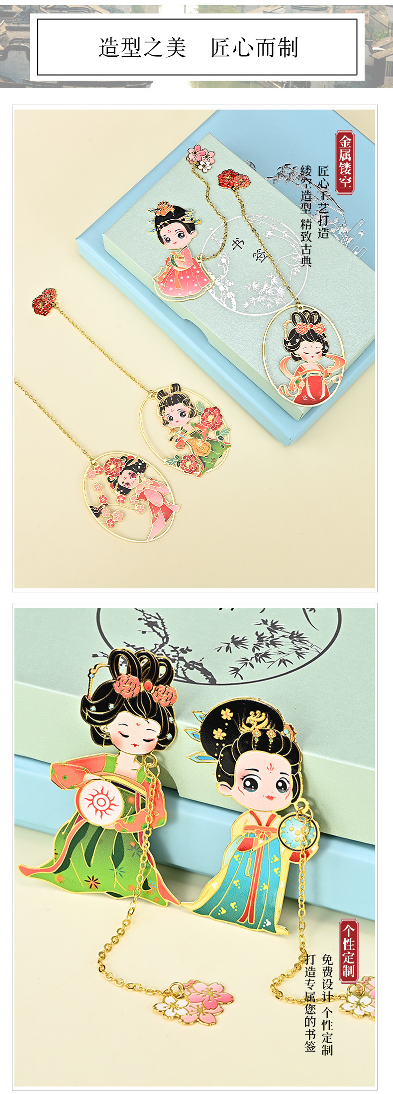 古风美人书签文创镂空金属书签学生礼品中国风流苏书签现货批发