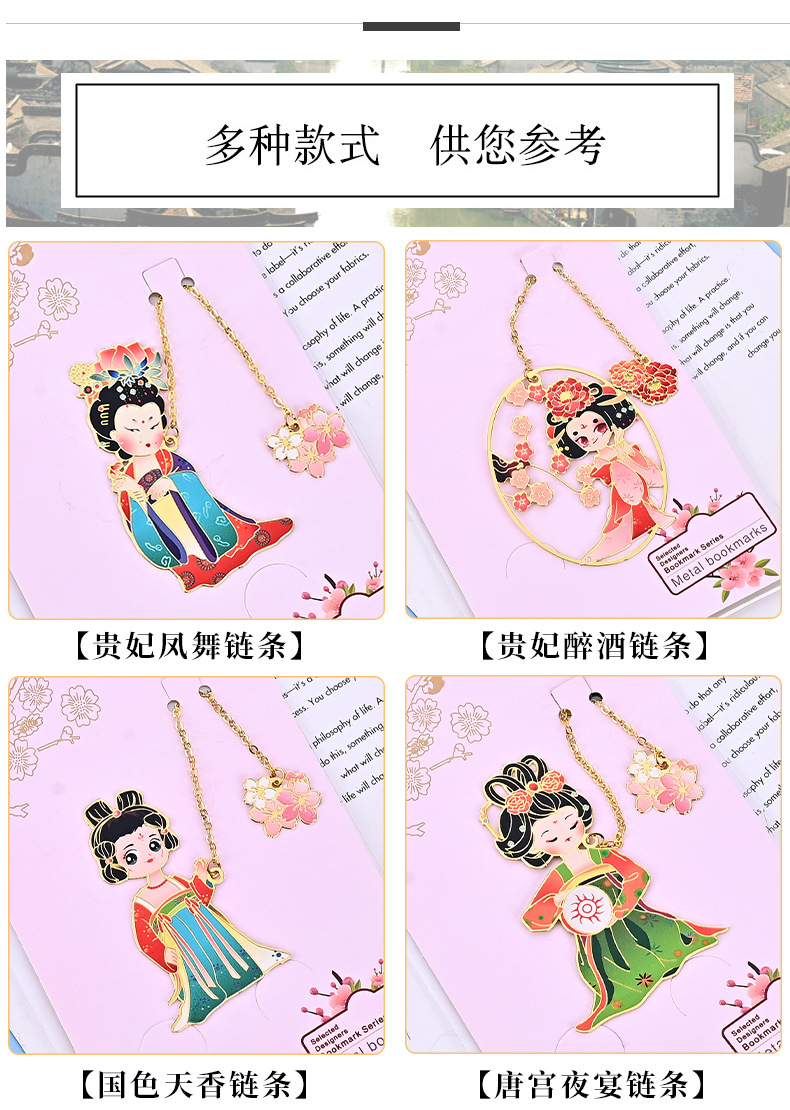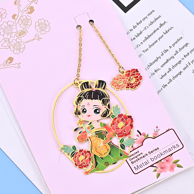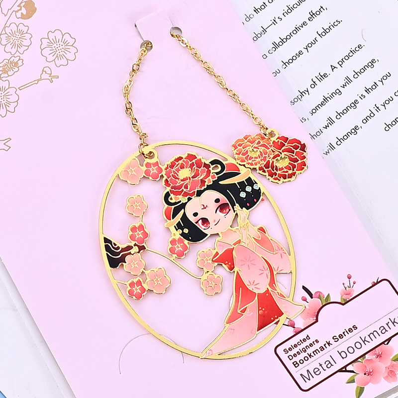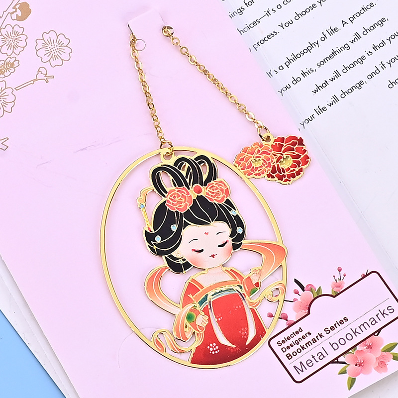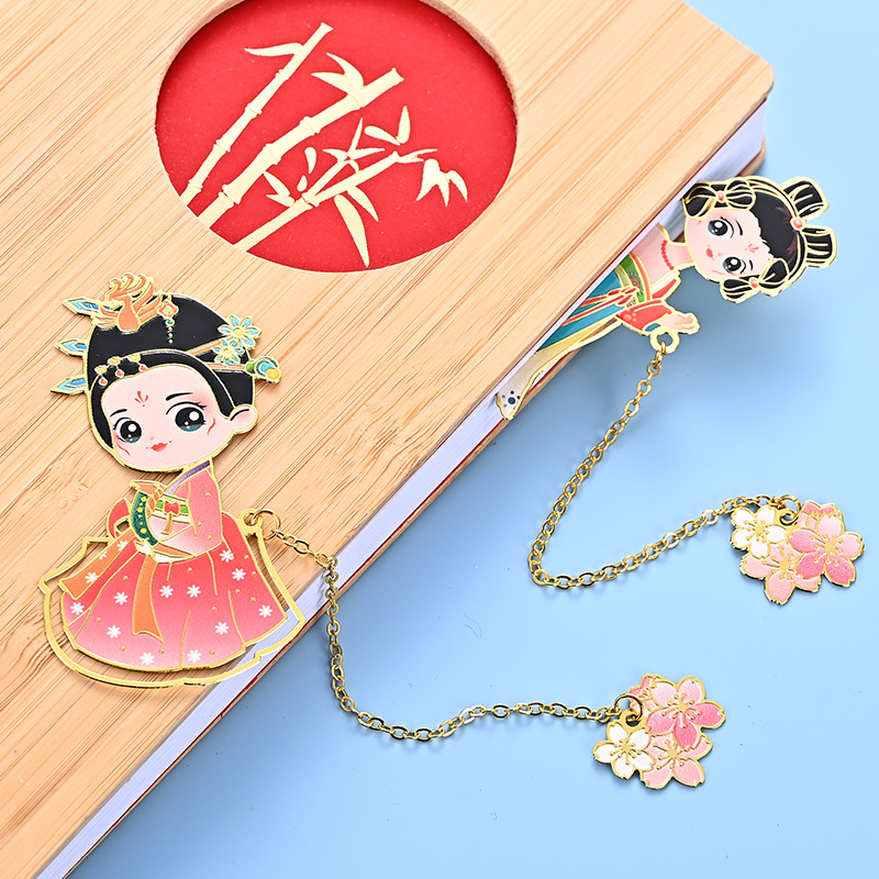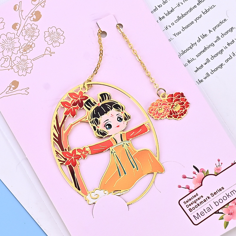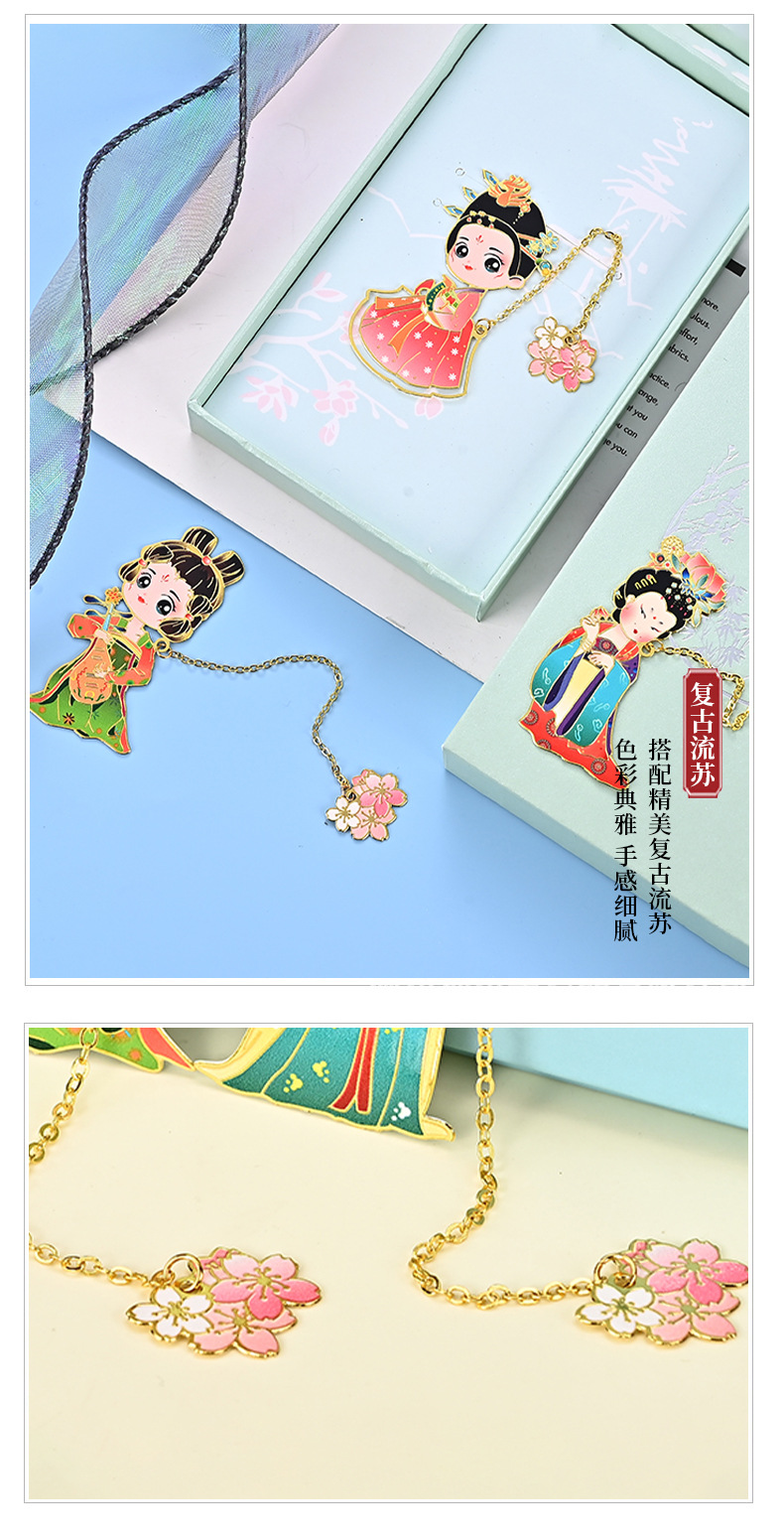 古风美人书签文创镂空金属书签学生礼品中国风流苏书签现货批发