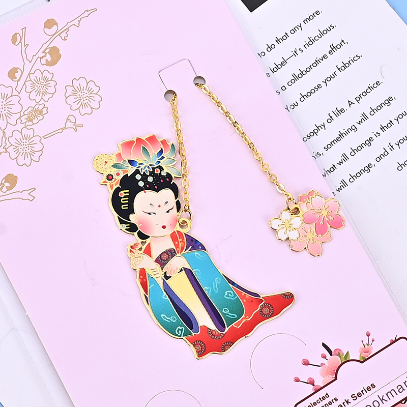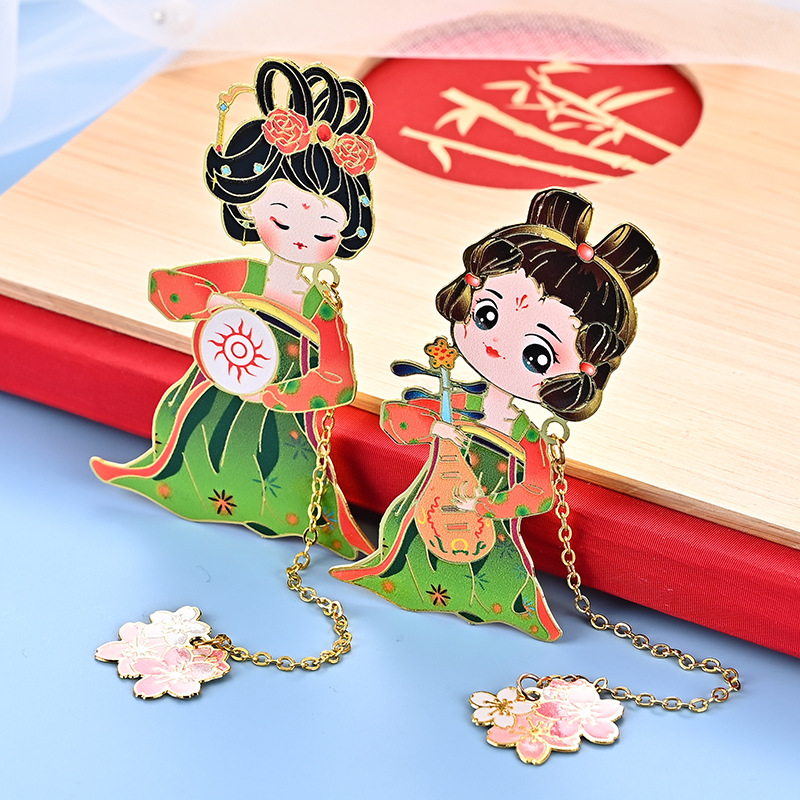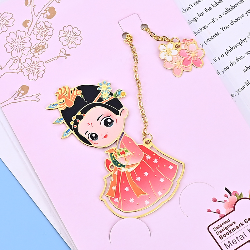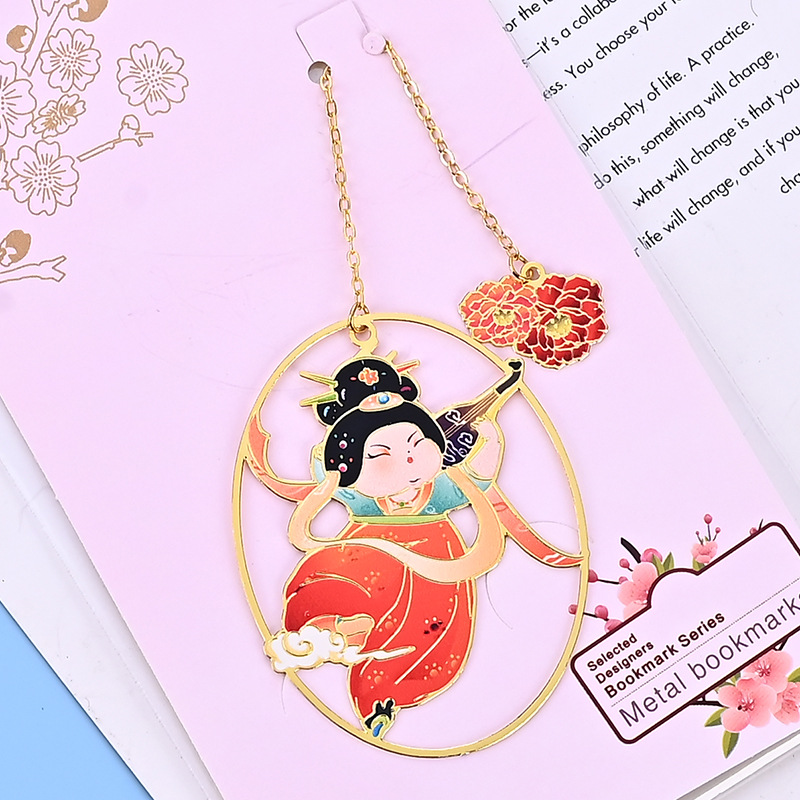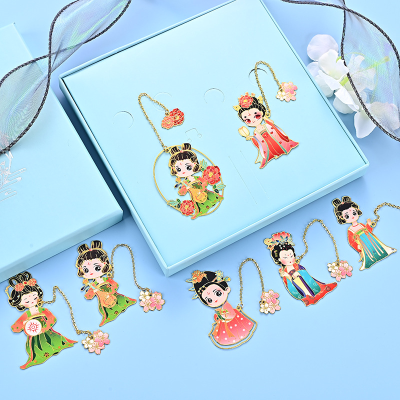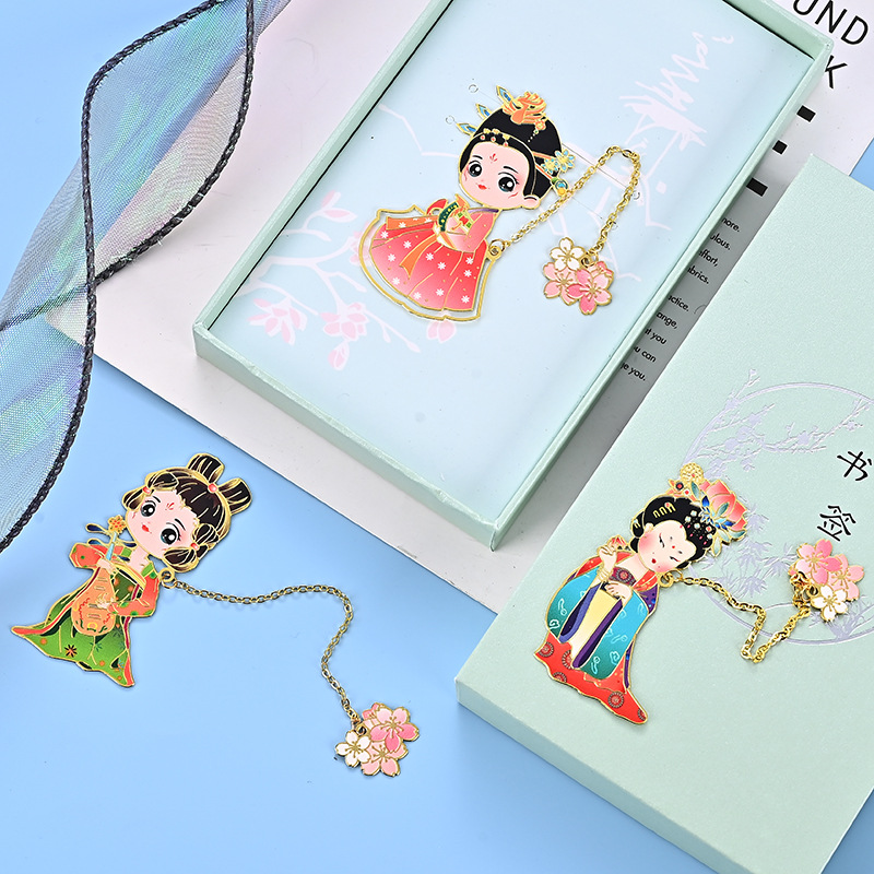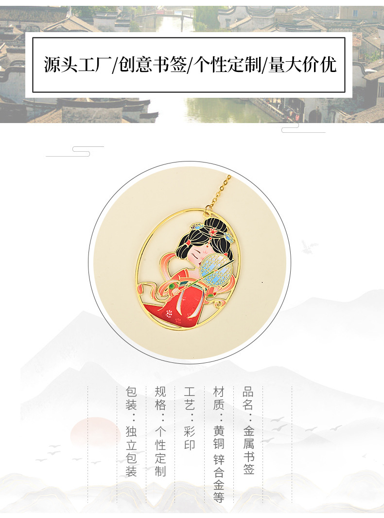 古风美人书签文创镂空金属书签学生礼品中国风流苏书签现货批发