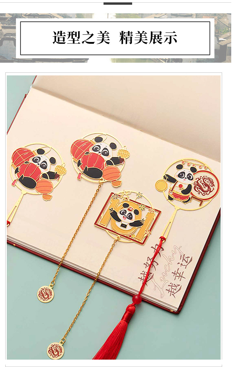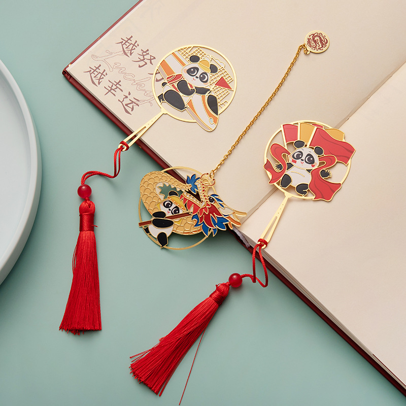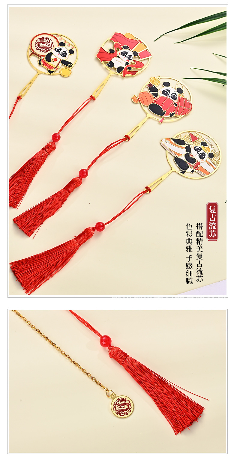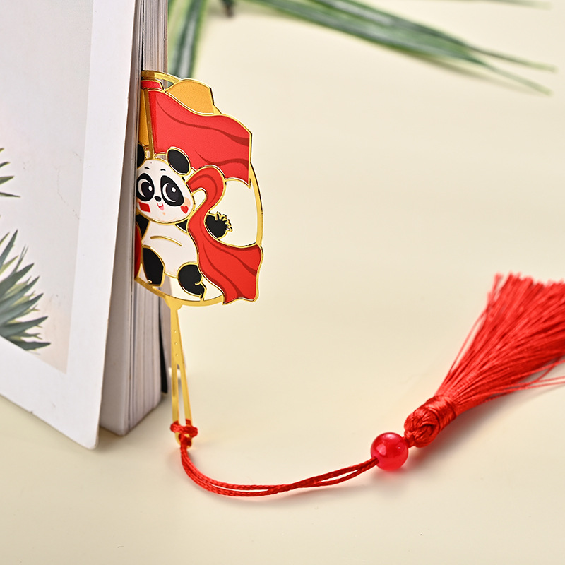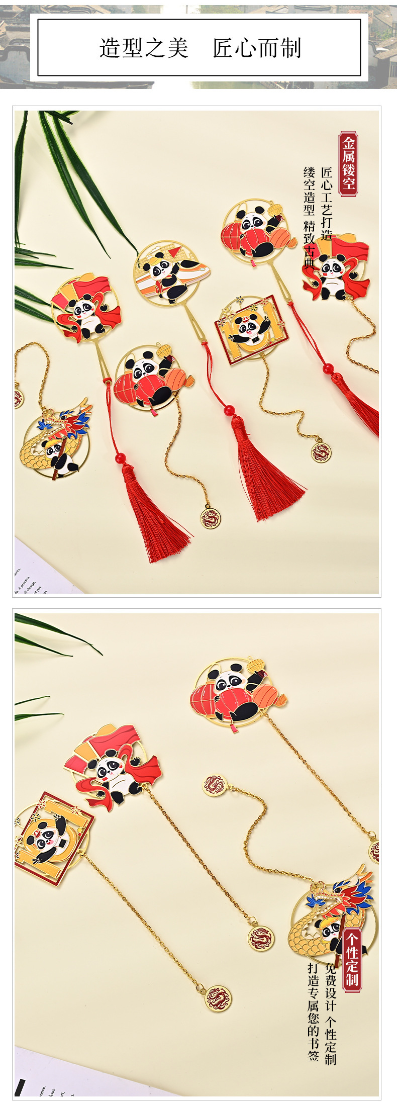 金属文创书签定制红色喜庆熊猫书页挂件创意学生ins风阅读书页夹