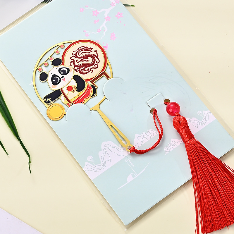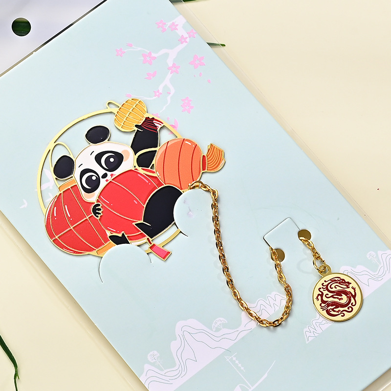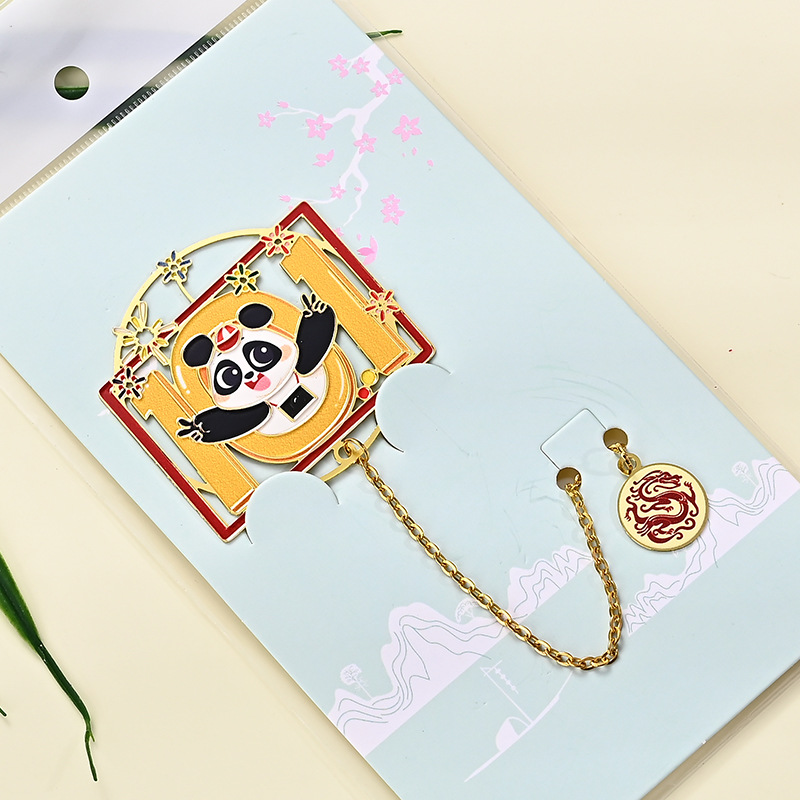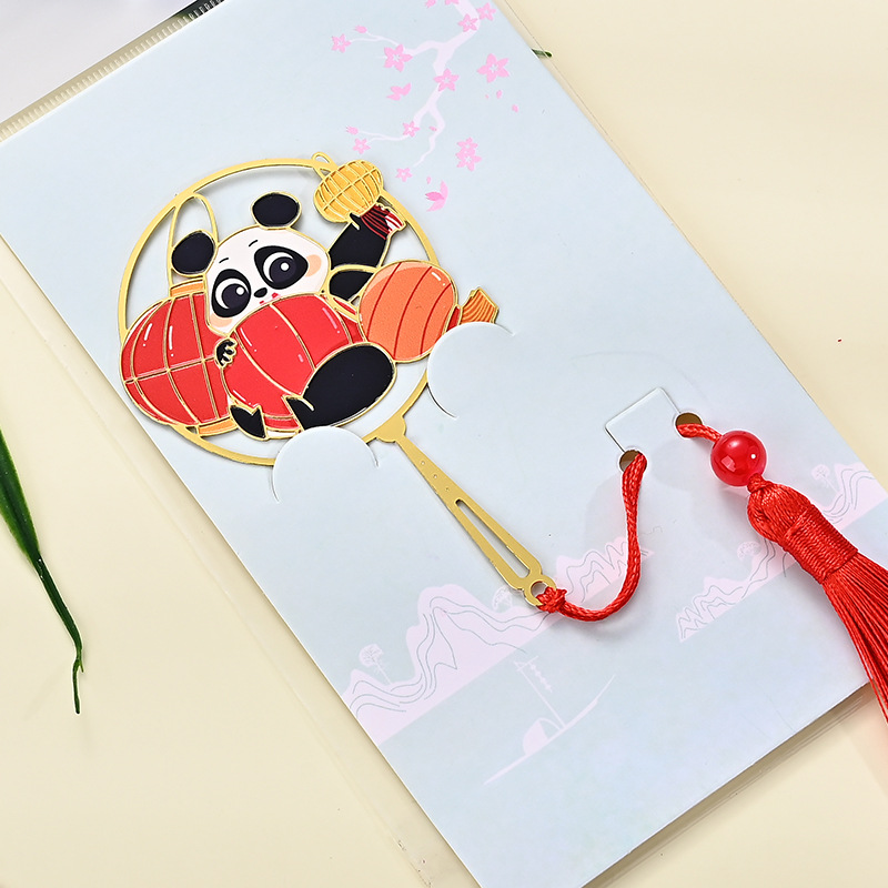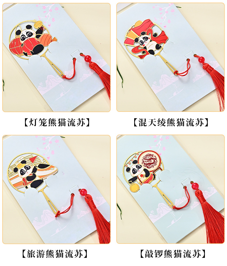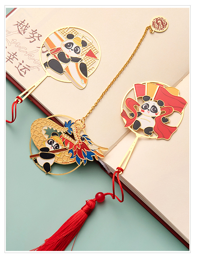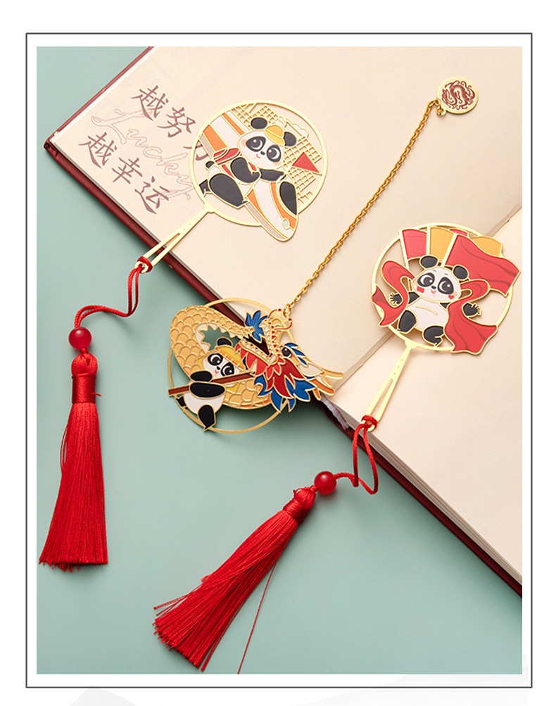 金属文创书签定制红色喜庆熊猫书页挂件创意学生ins风阅读书页夹