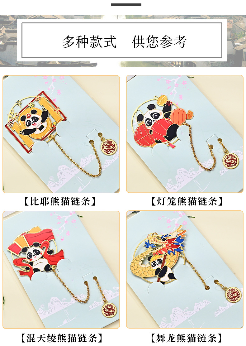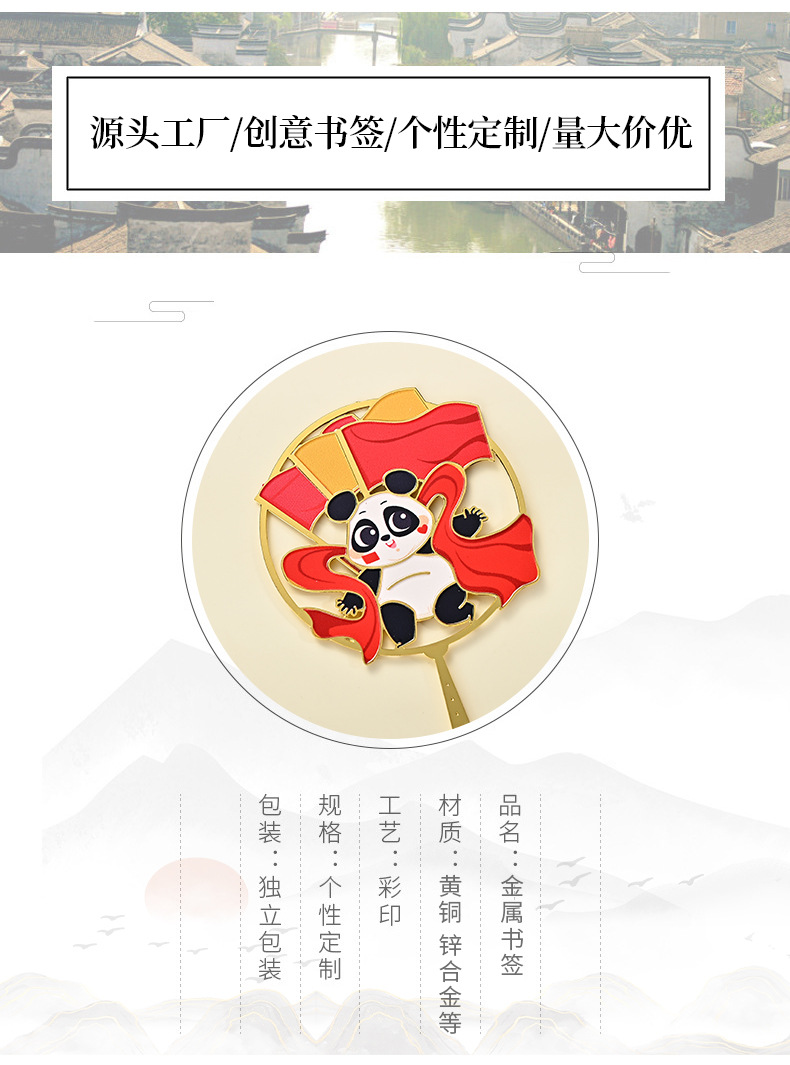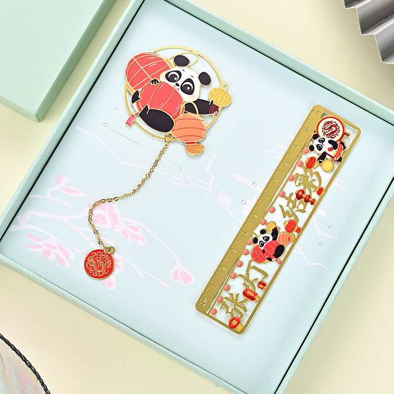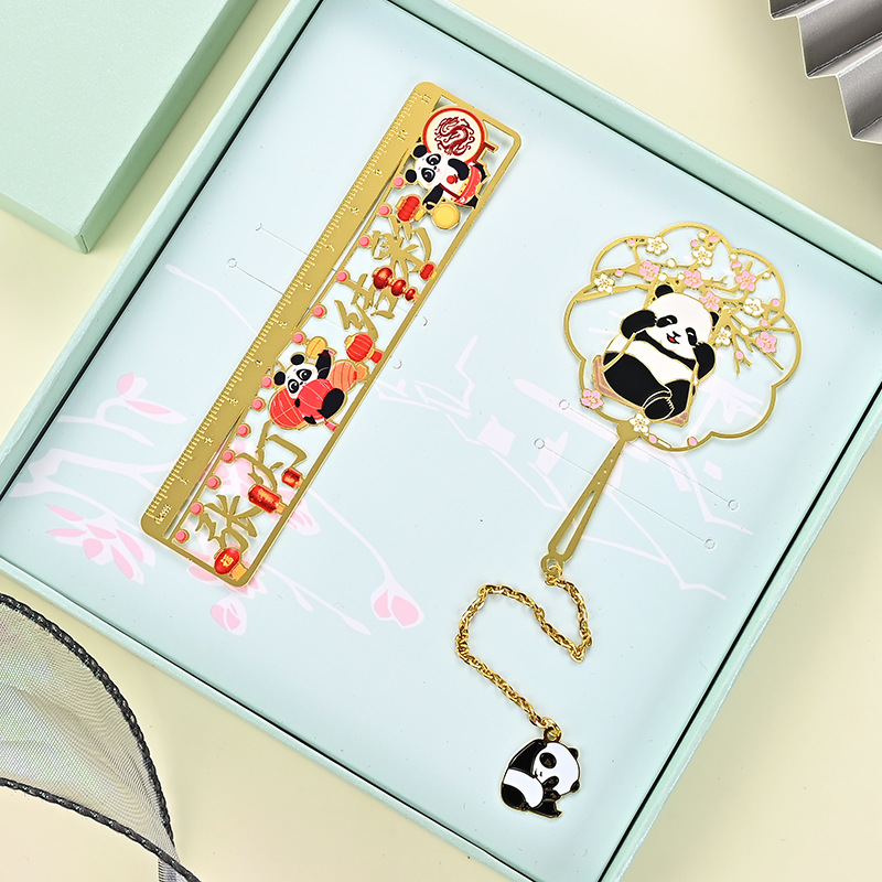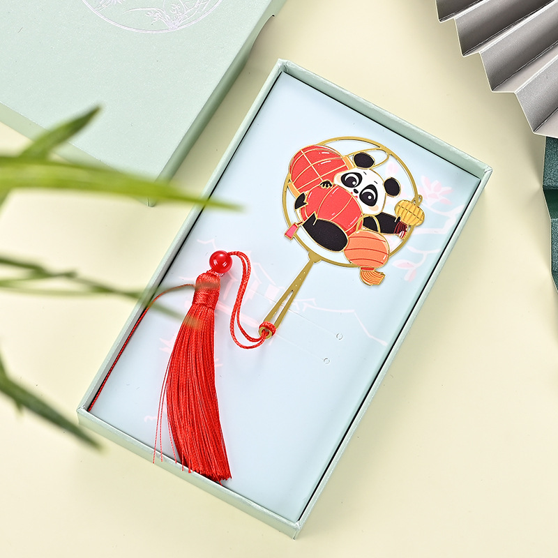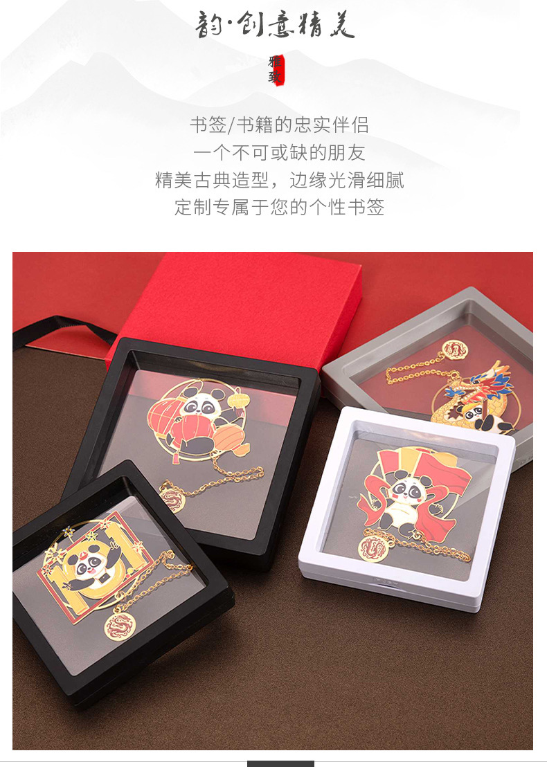 金属文创书签定制红色喜庆熊猫书页挂件创意学生ins风阅读书页夹
