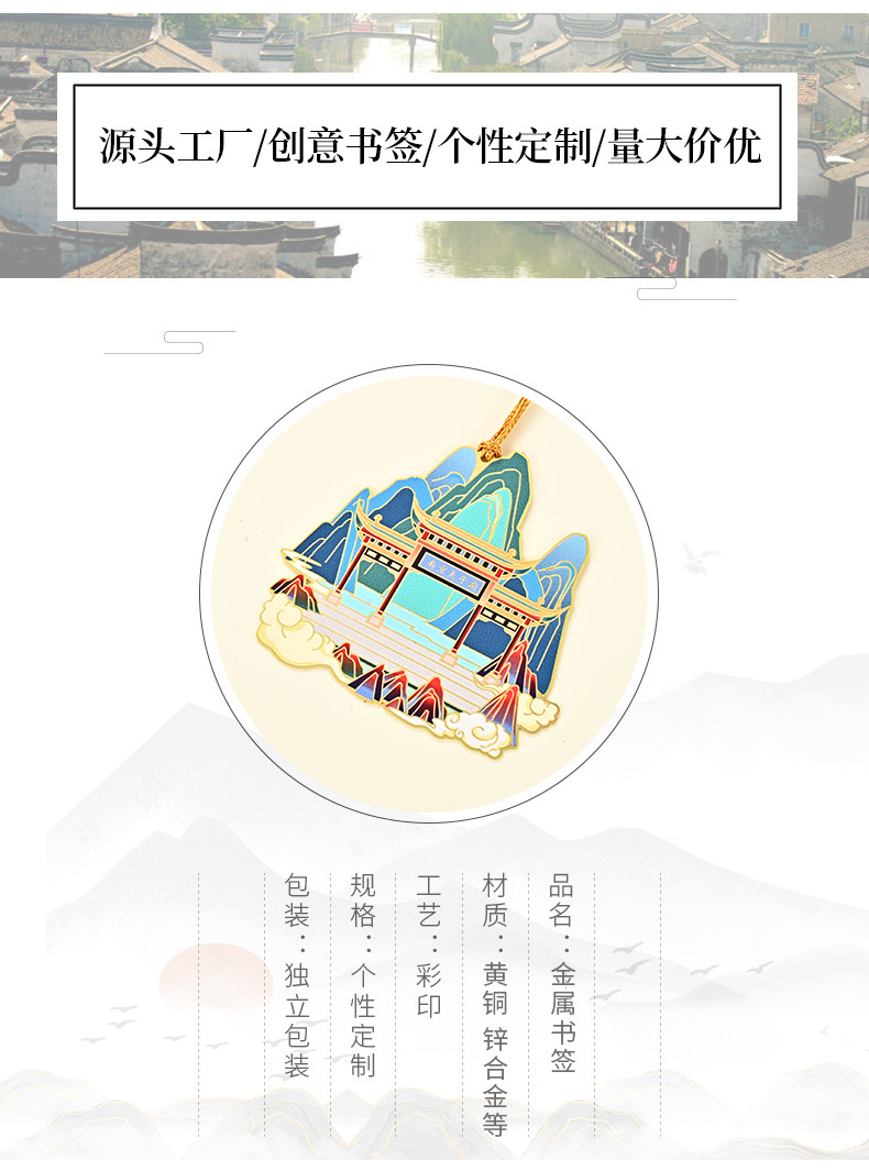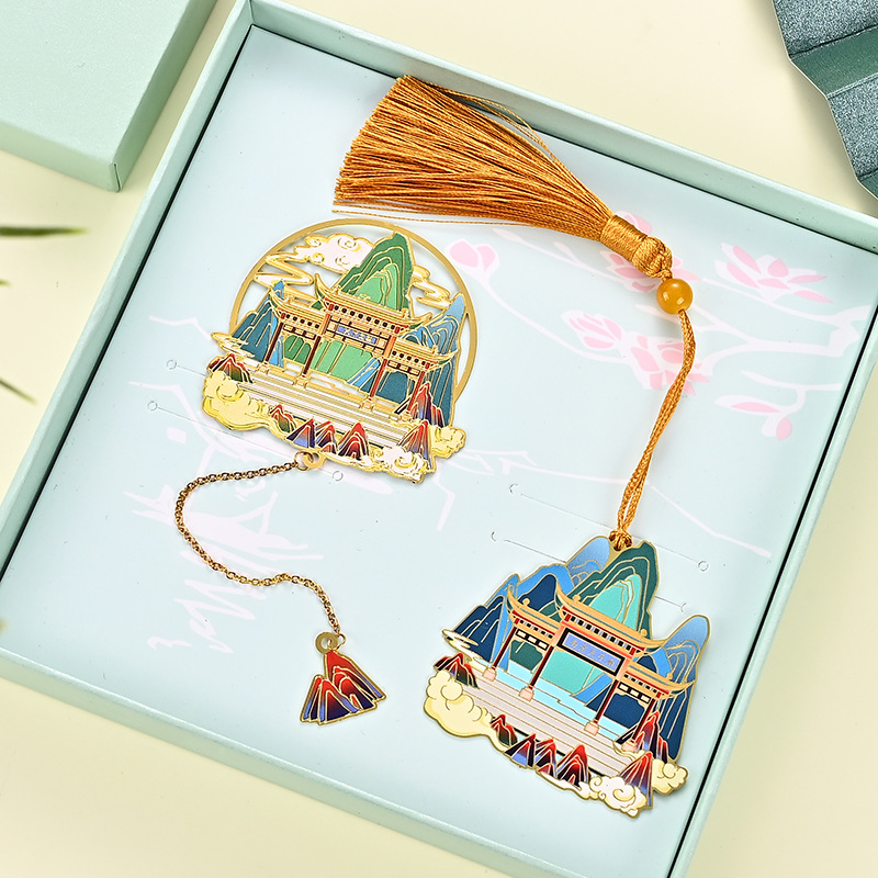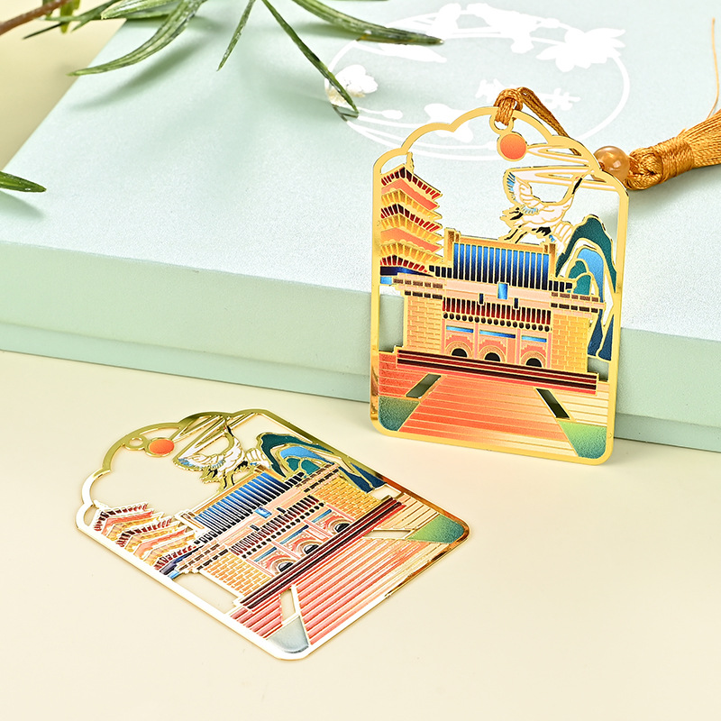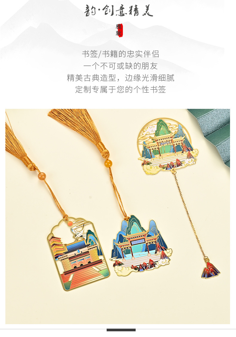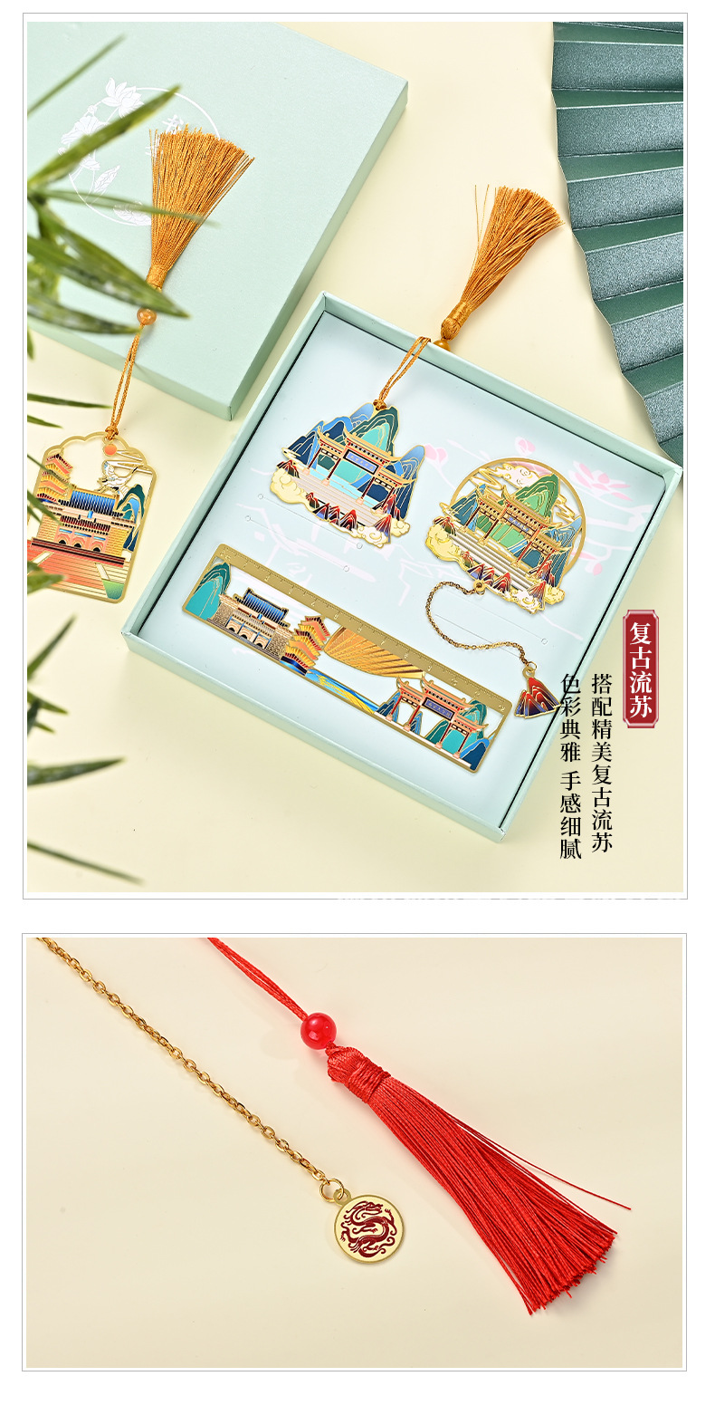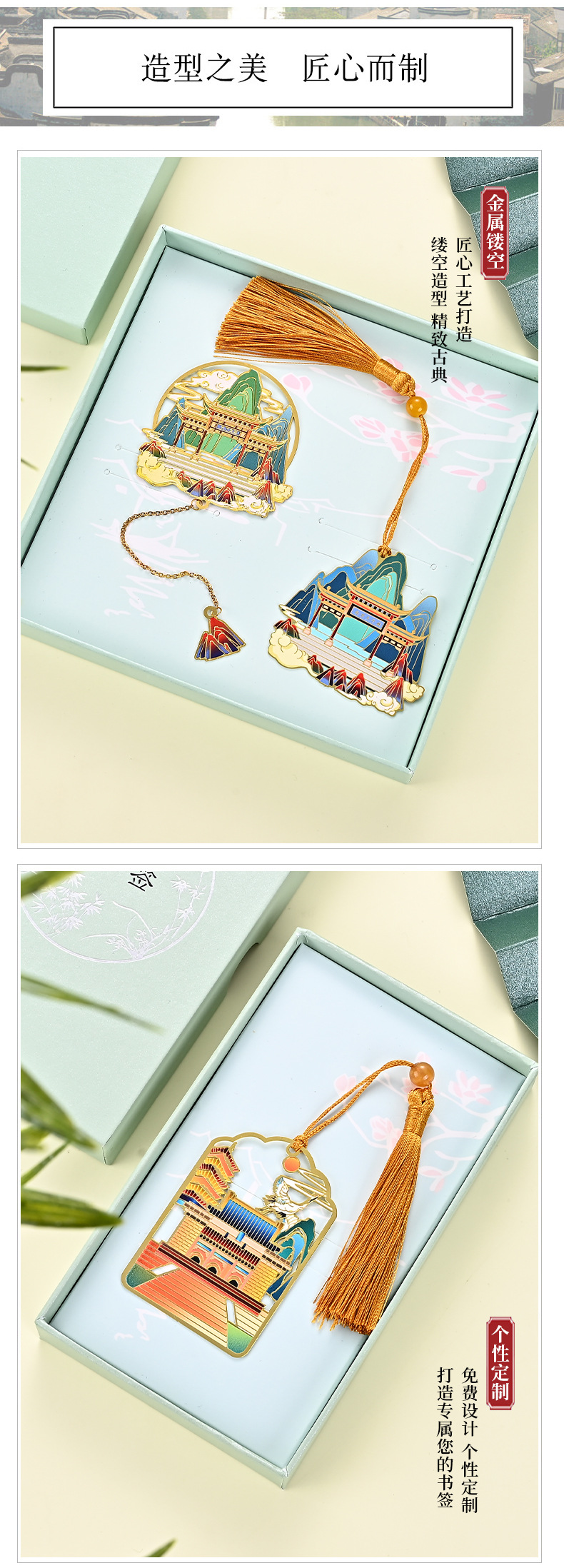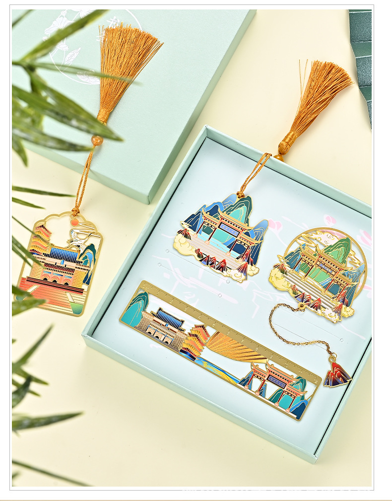 书签现货批发南京中国风文创礼盒彩印蚀刻上色金属书签套装盒送礼