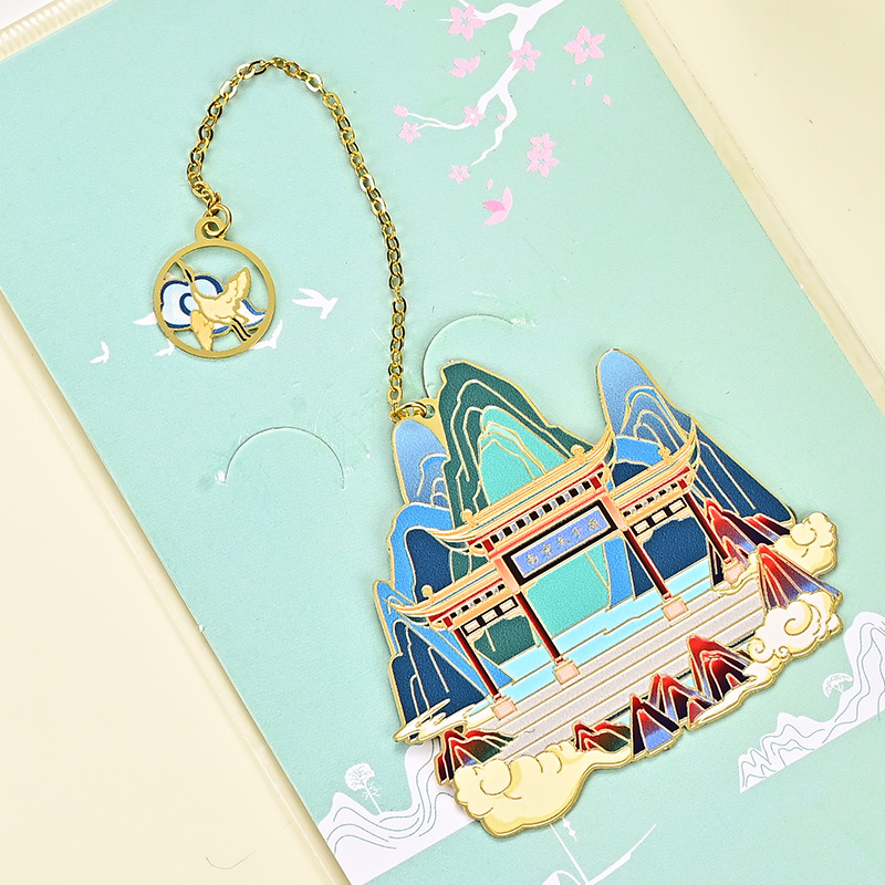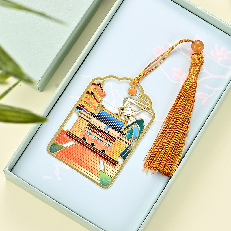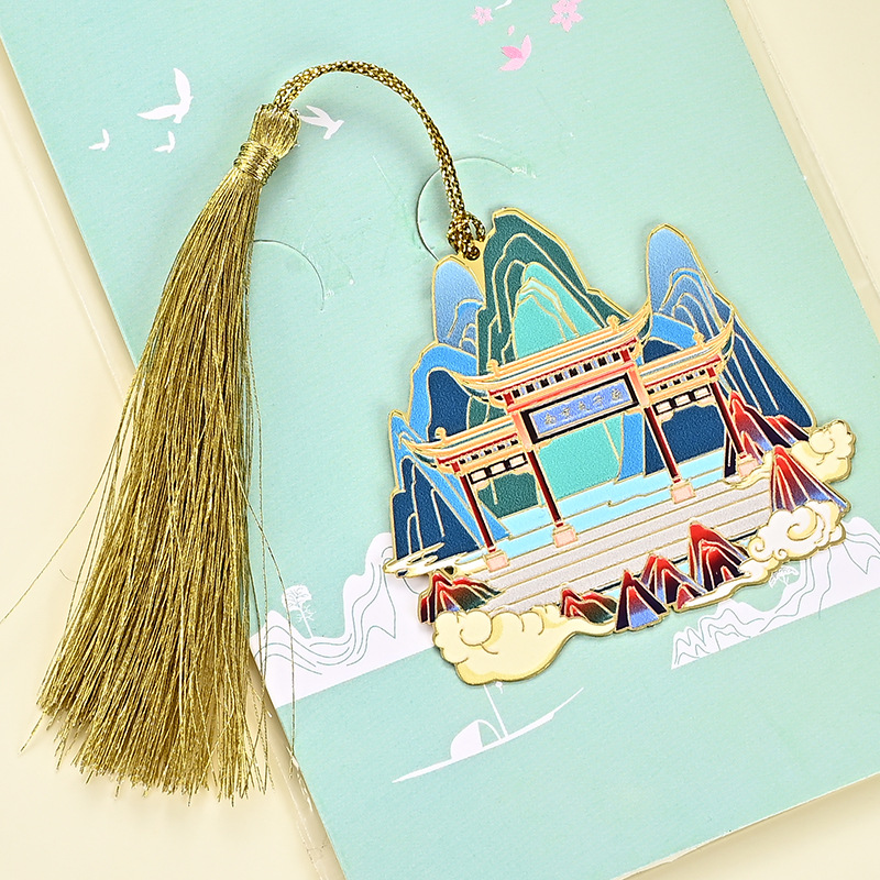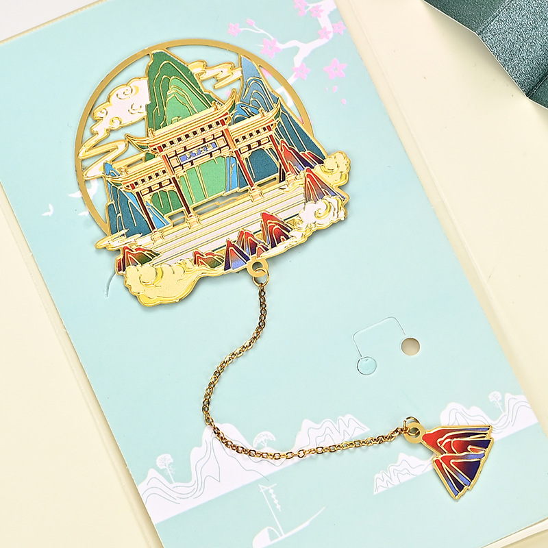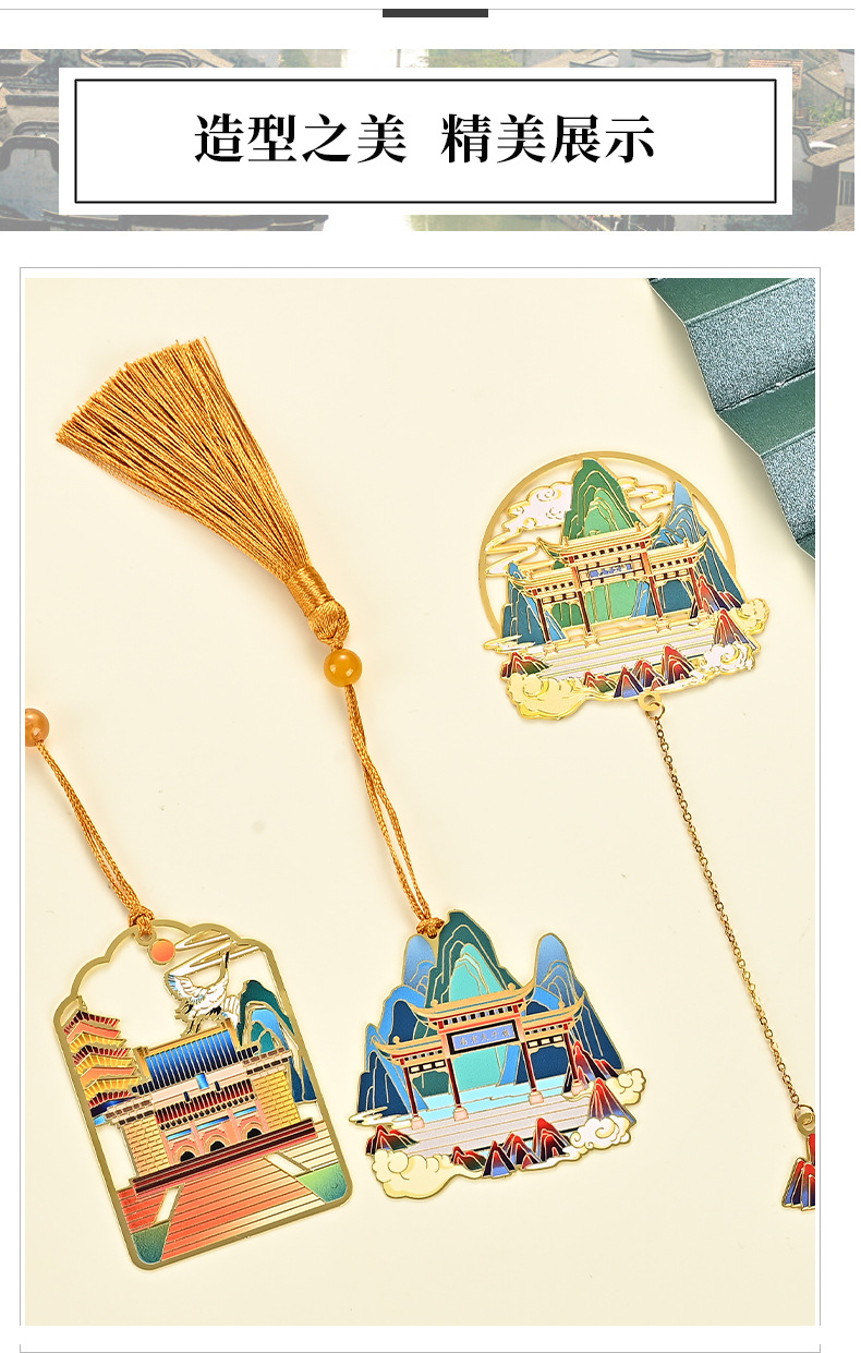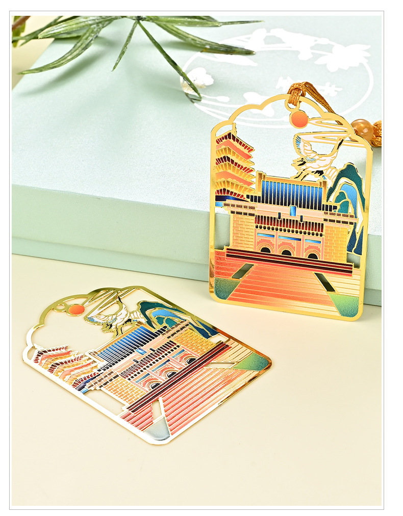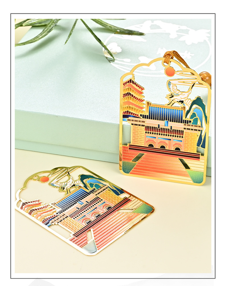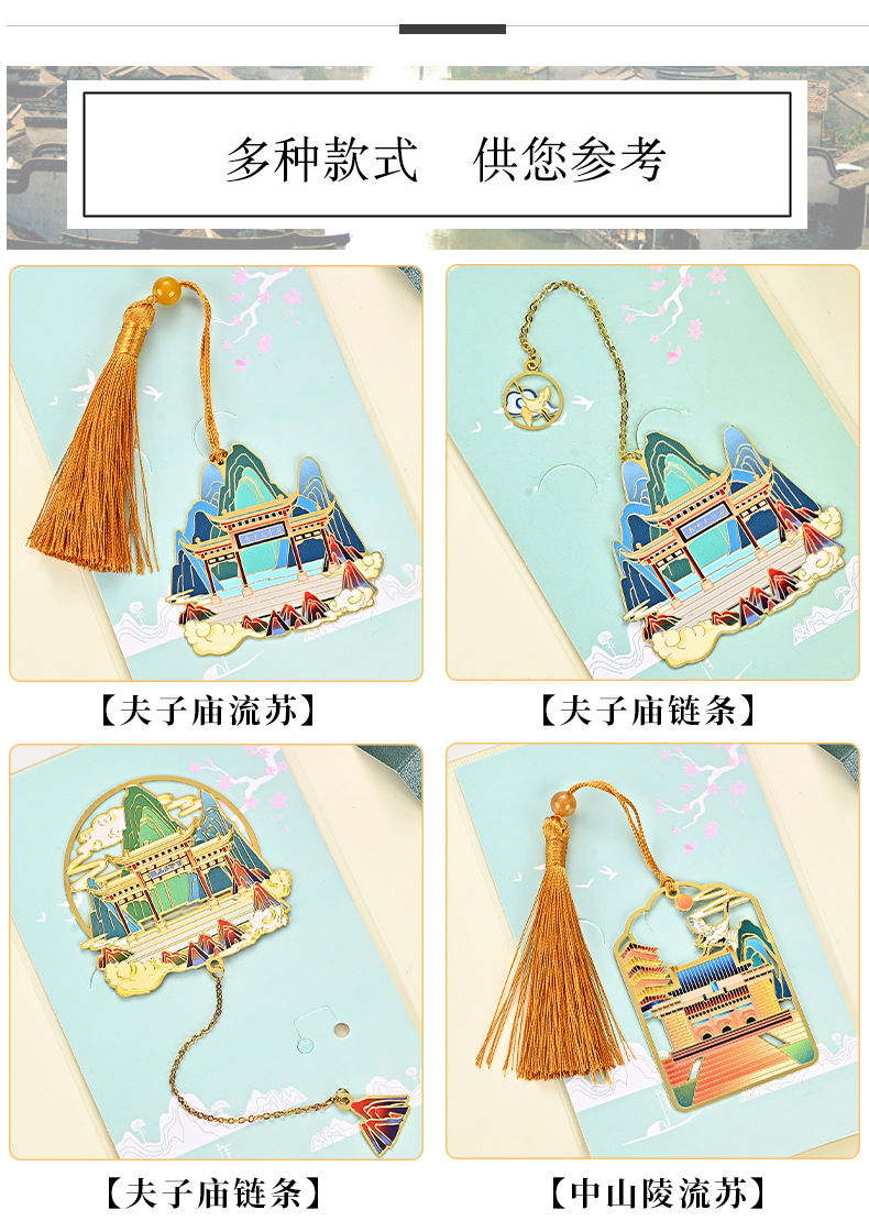 书签现货批发南京中国风文创礼盒彩印蚀刻上色金属书签套装盒送礼