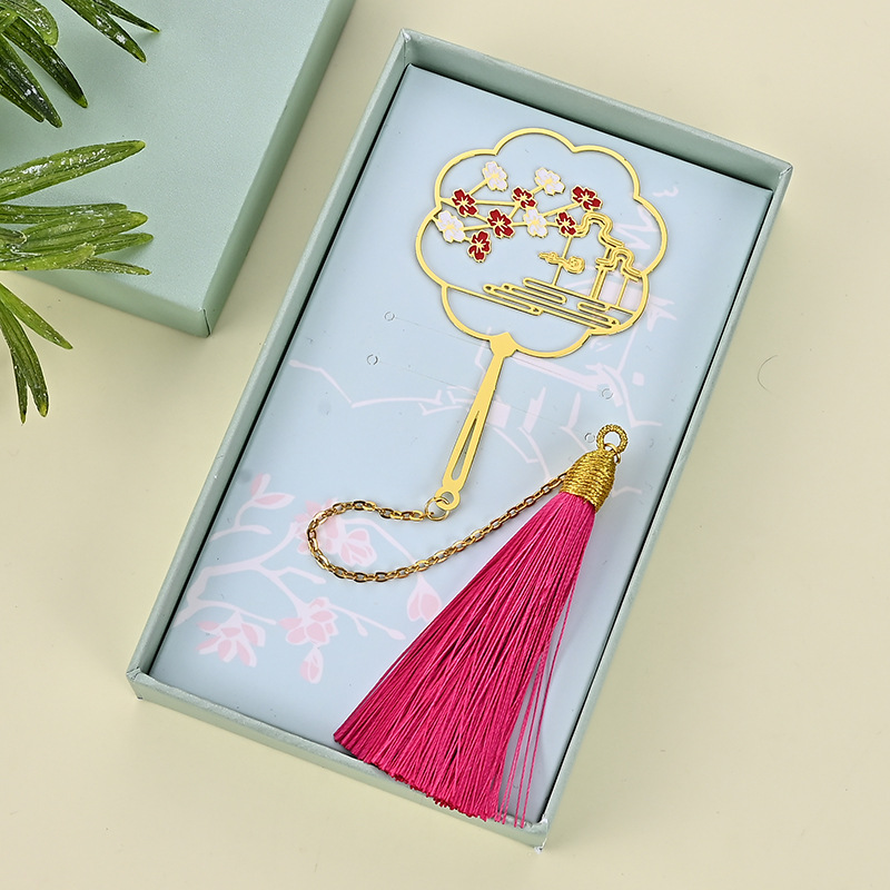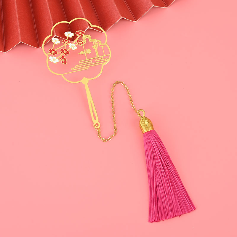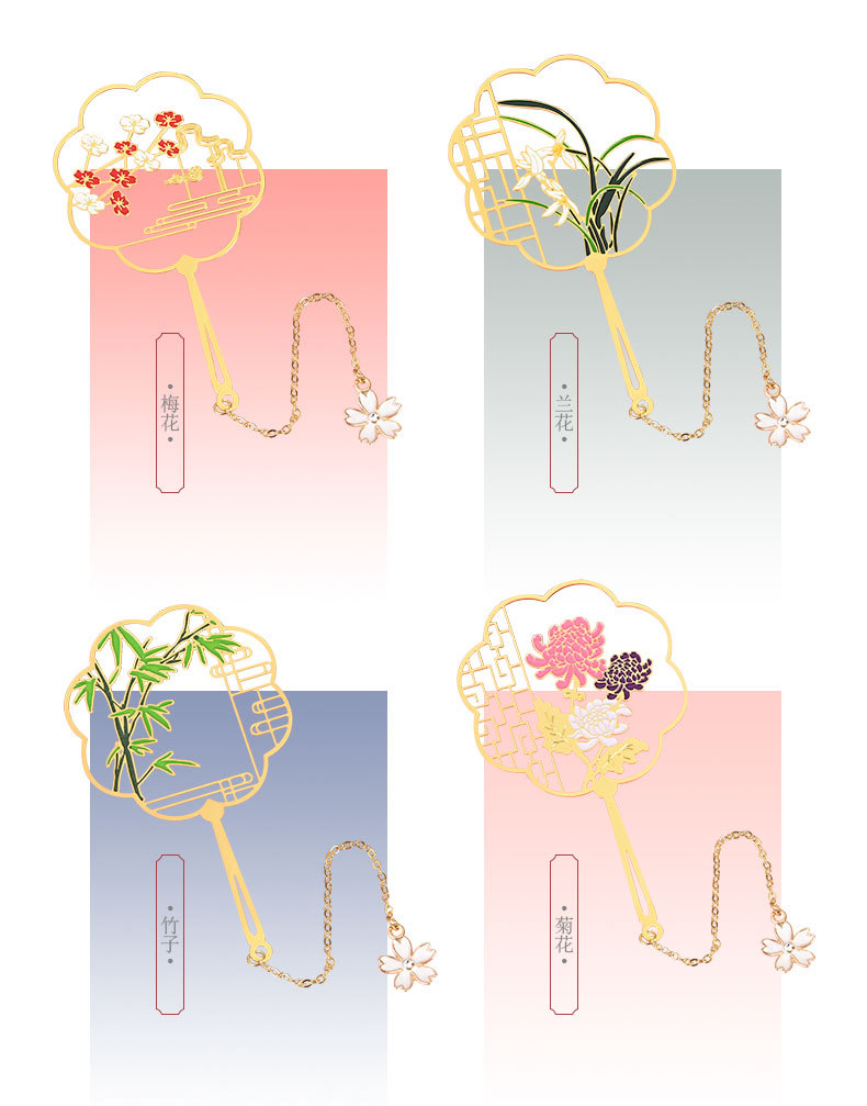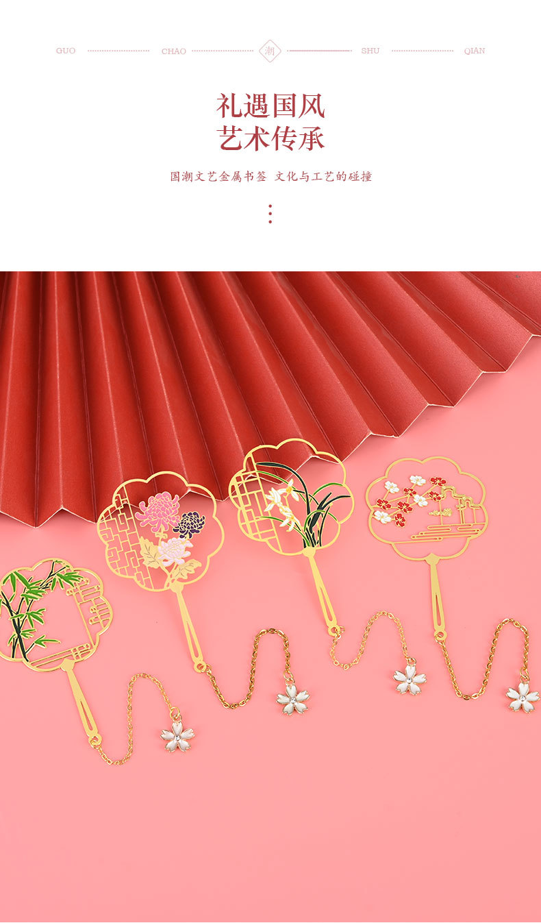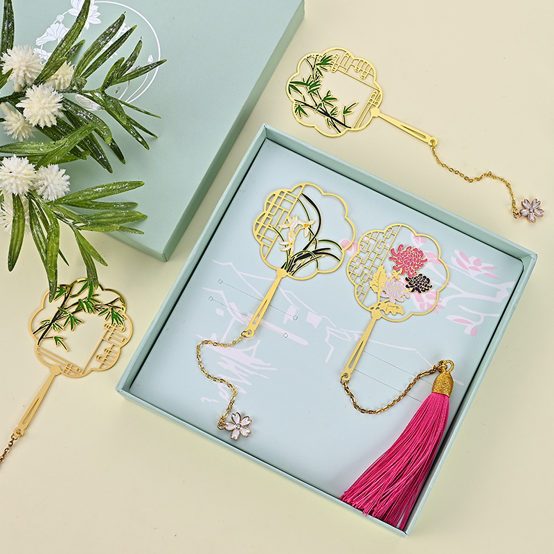 镂空书签现货批发梅兰竹菊中国风书签古典文创扇面流苏金属小礼品