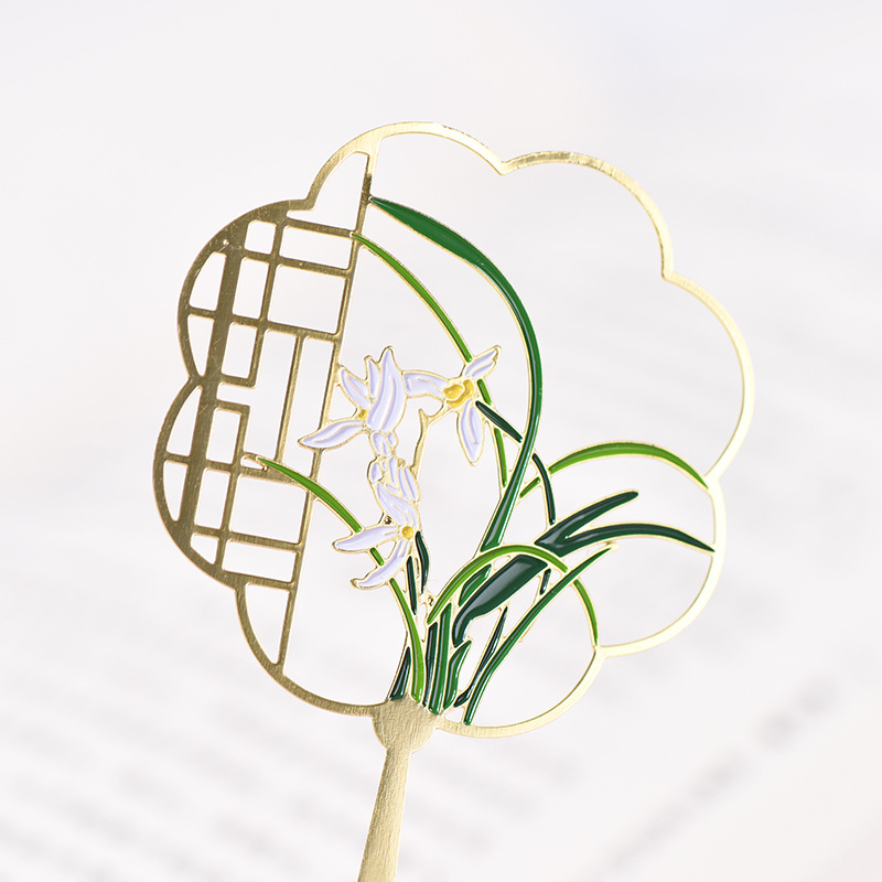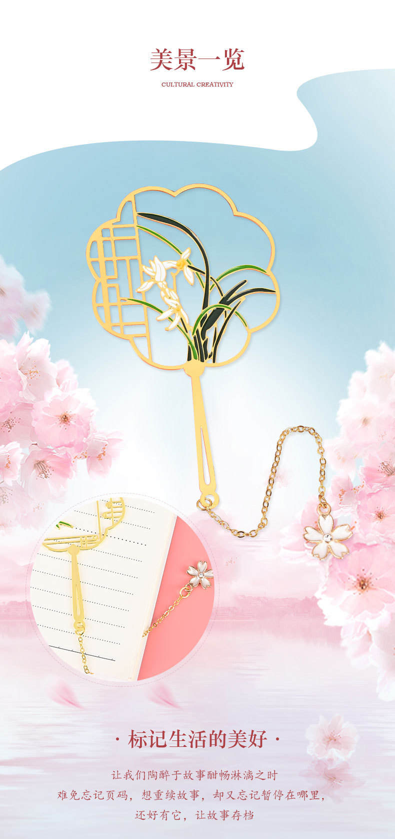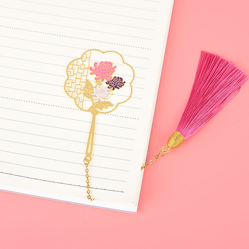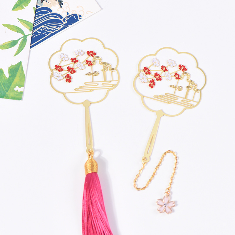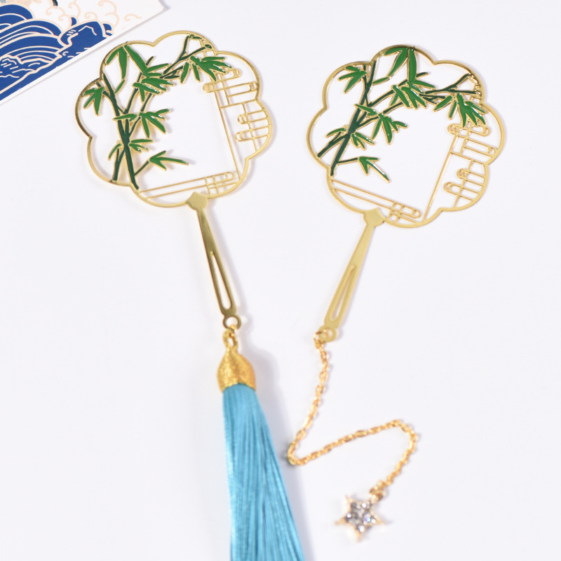 镂空书签现货批发梅兰竹菊中国风书签古典文创扇面流苏金属小礼品