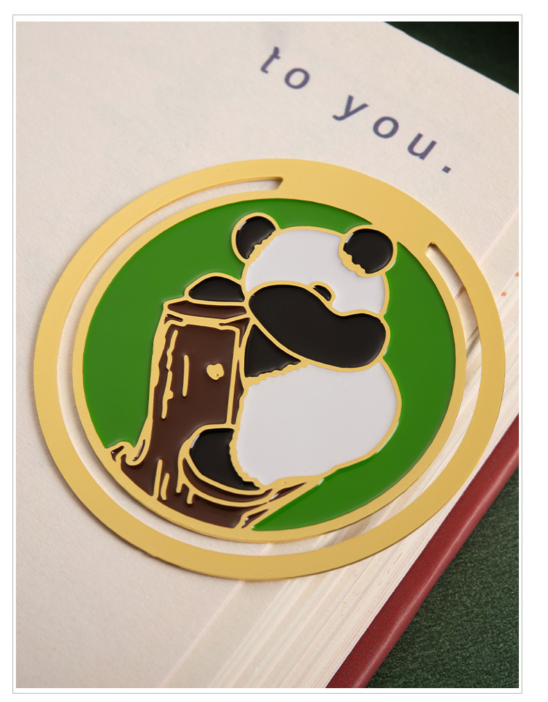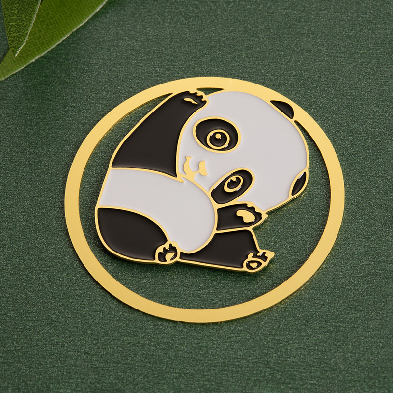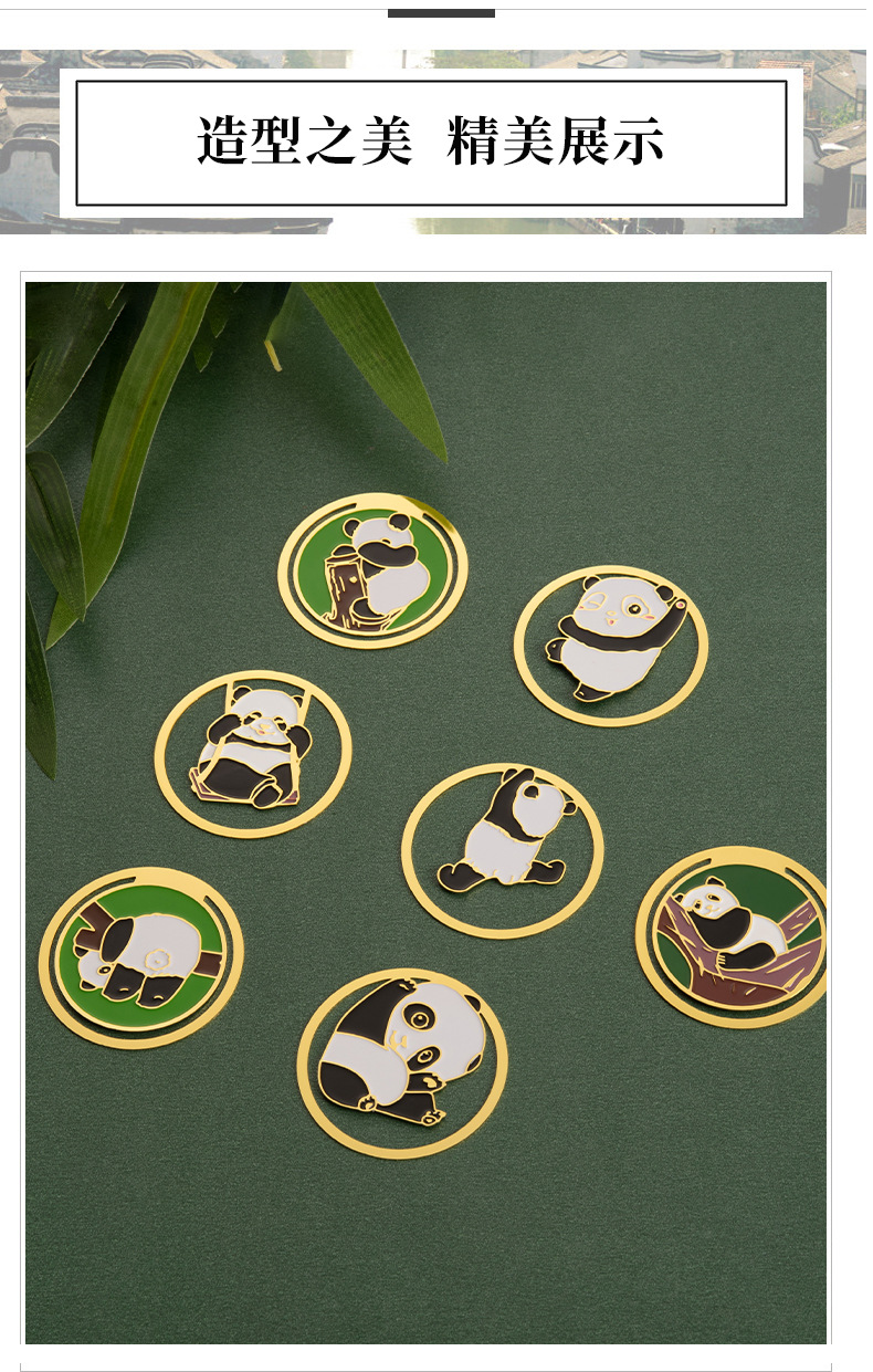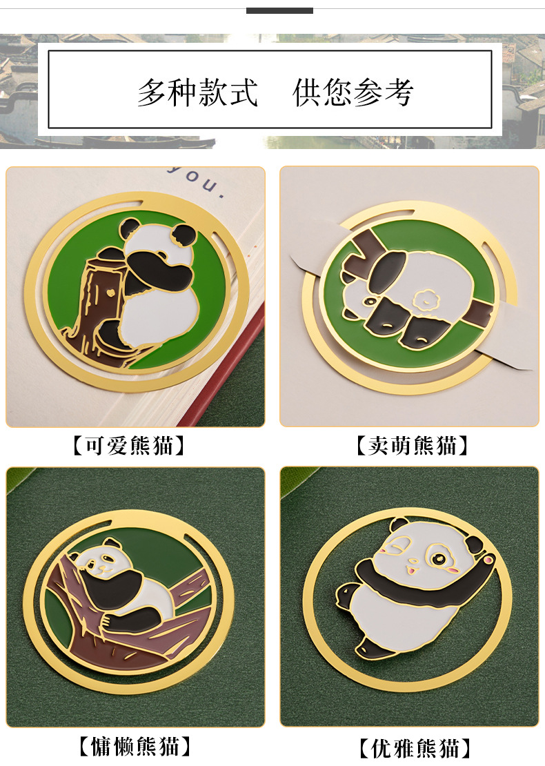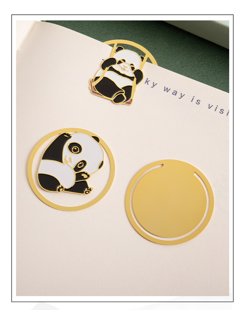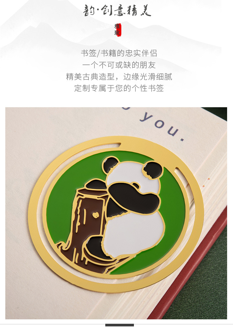 圆形书签现货批发可爱熊猫表情包镂空书夹四川旅游纪念小礼品
