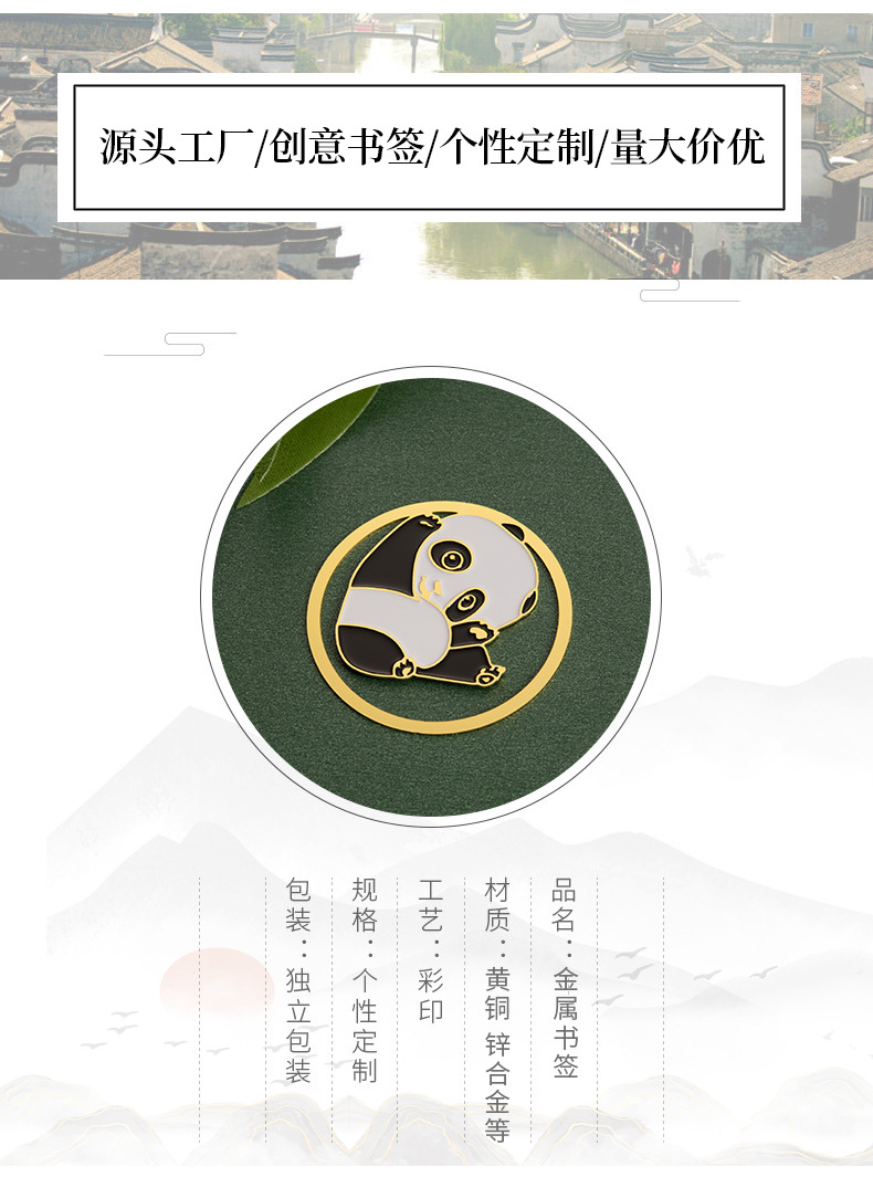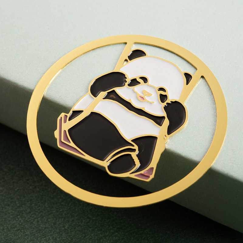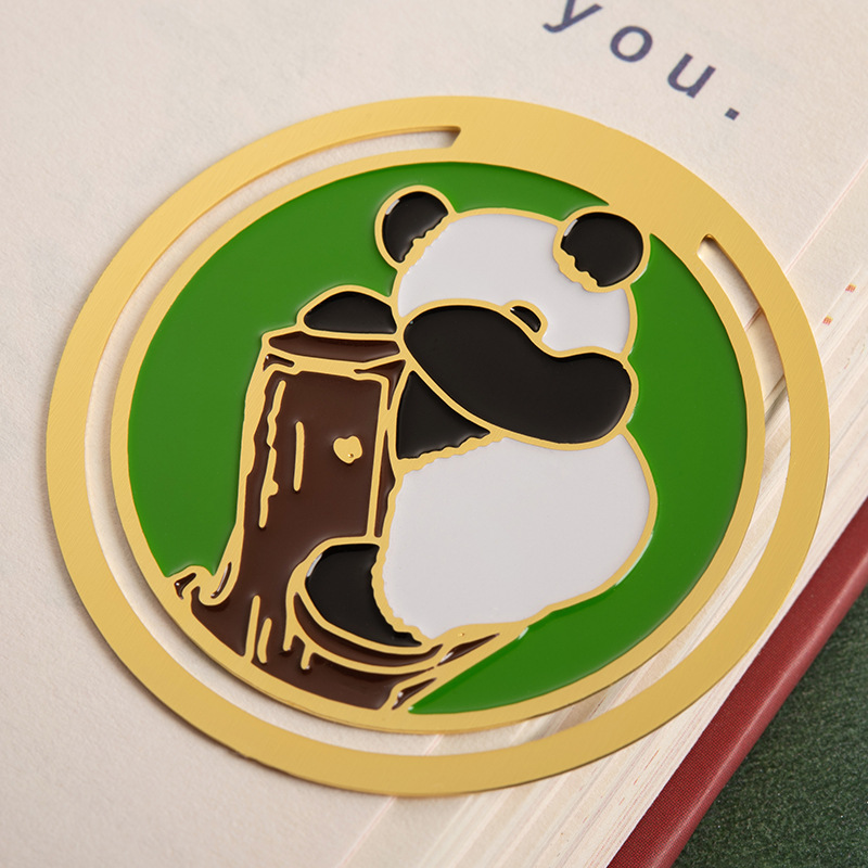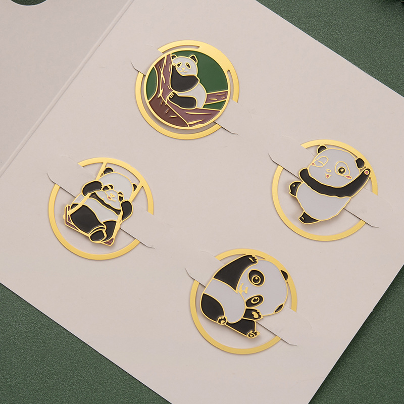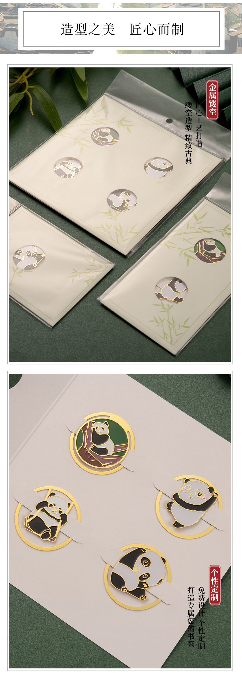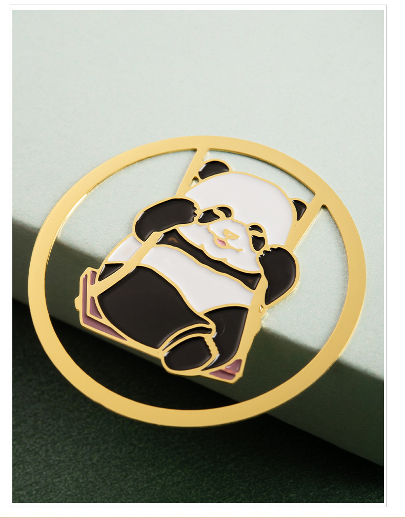 圆形书签现货批发可爱熊猫表情包镂空书夹四川旅游纪念小礼品