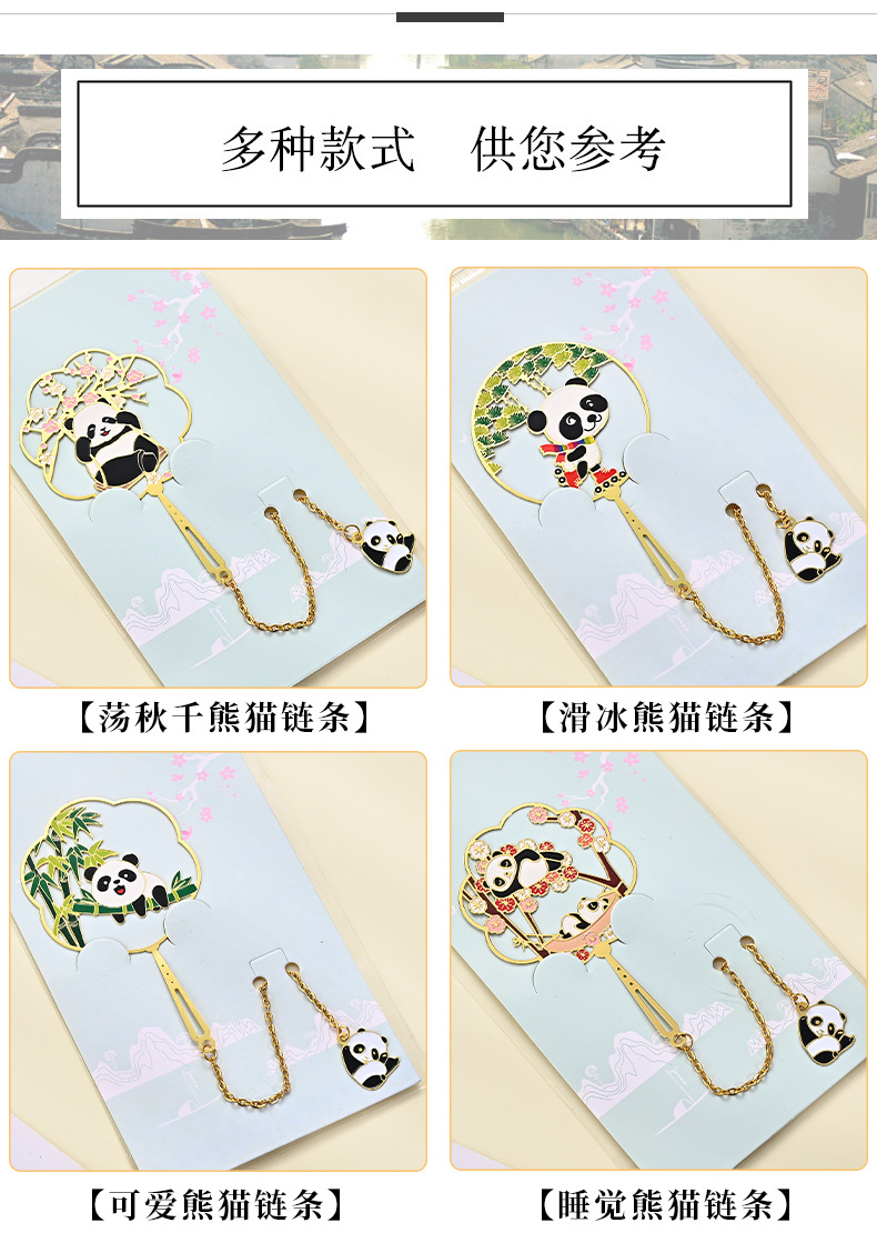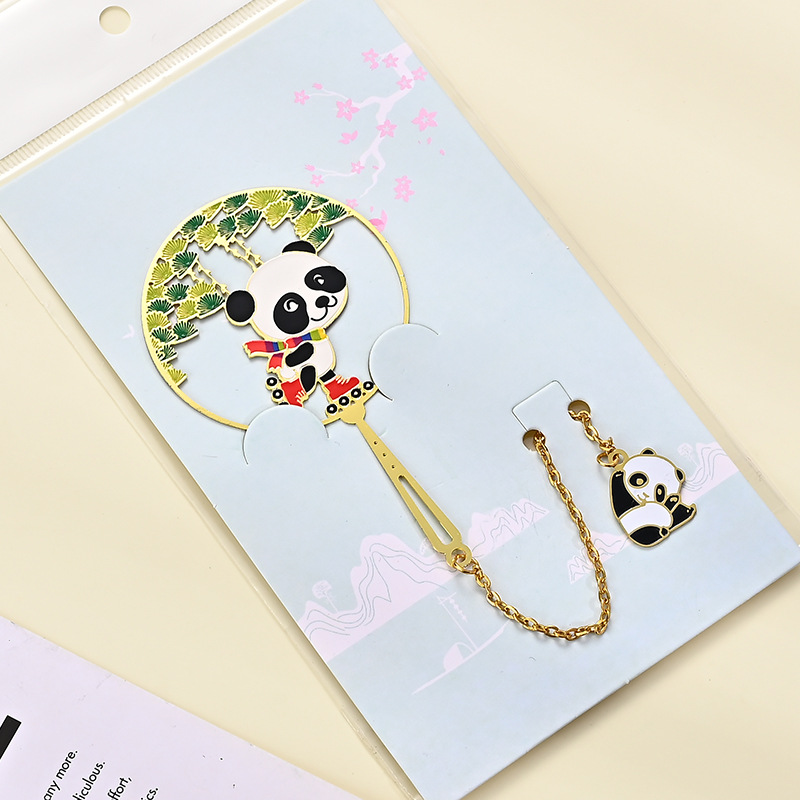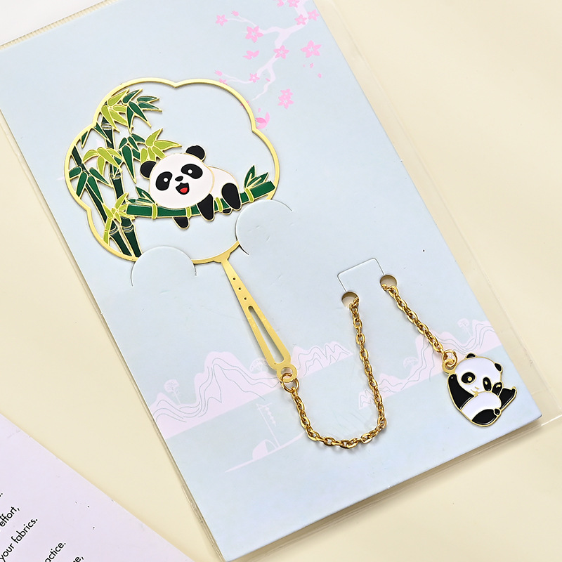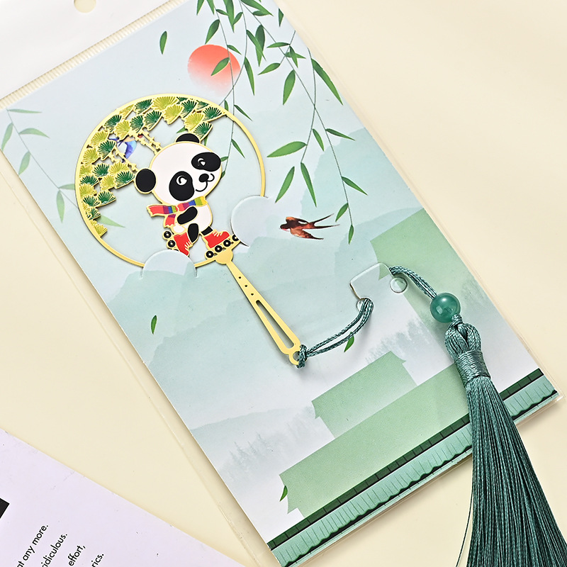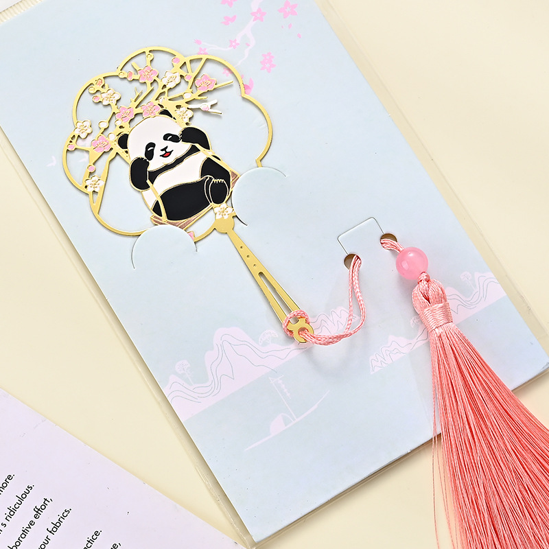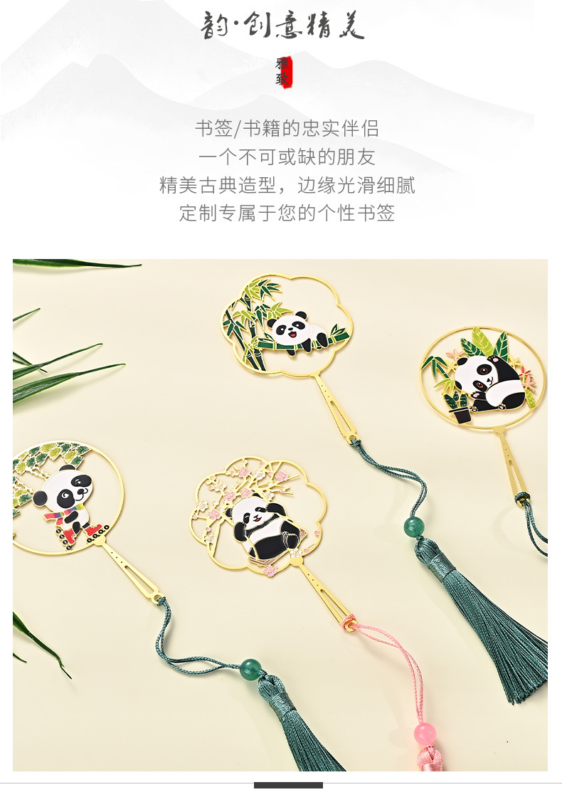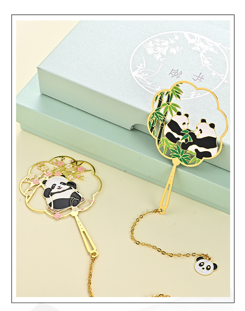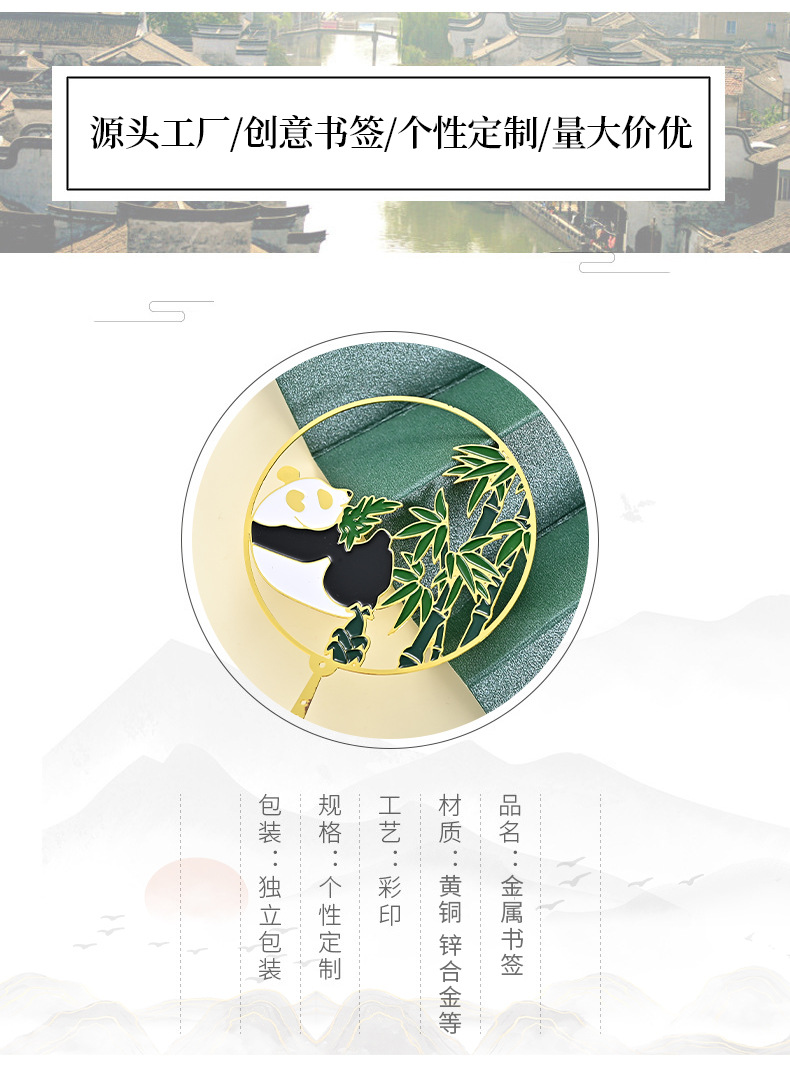 黄铜金属书签熊猫团扇镂空书签古风文创艺术礼品小批量定 制logo
