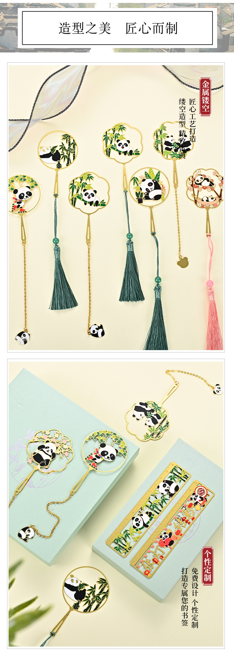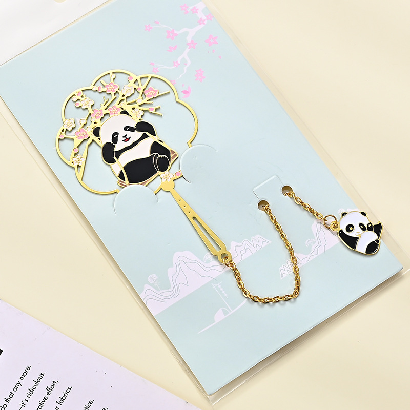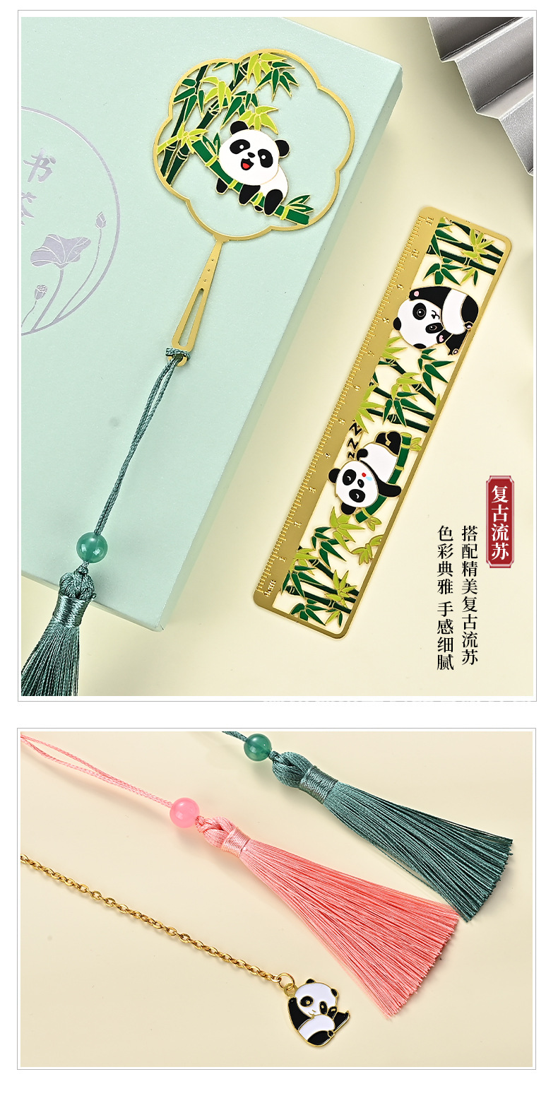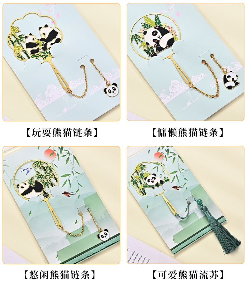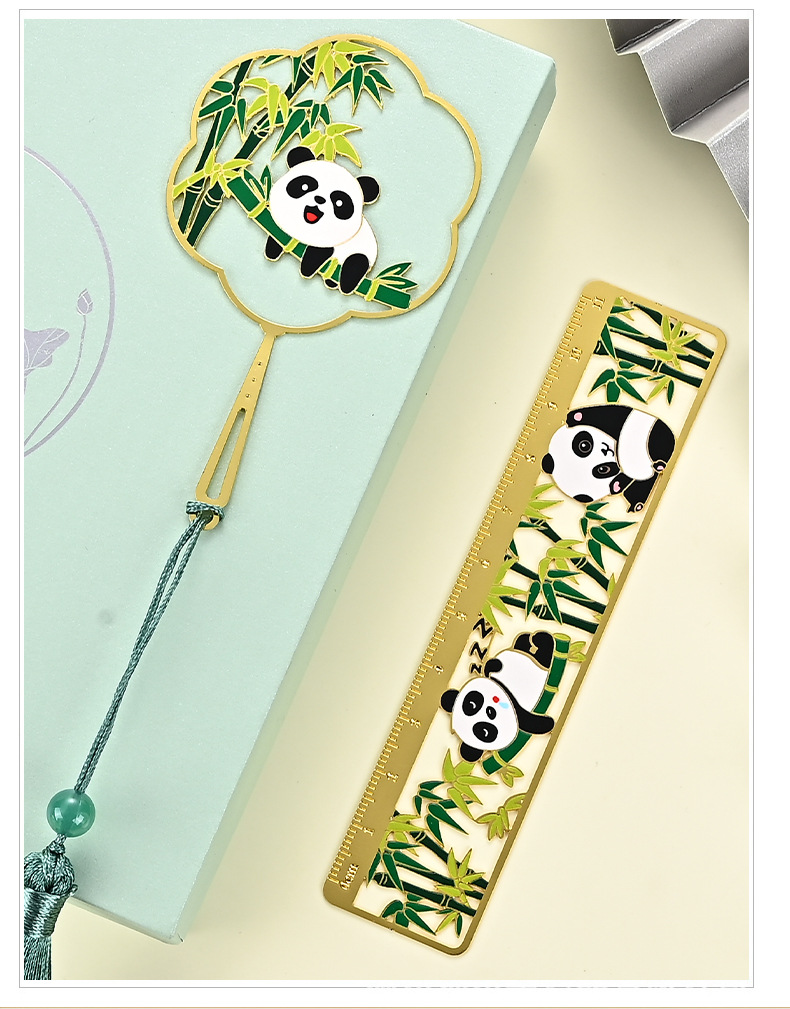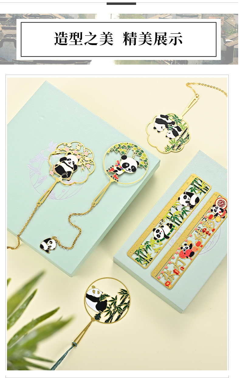 黄铜金属书签熊猫团扇镂空书签古风文创艺术礼品小批量定 制logo