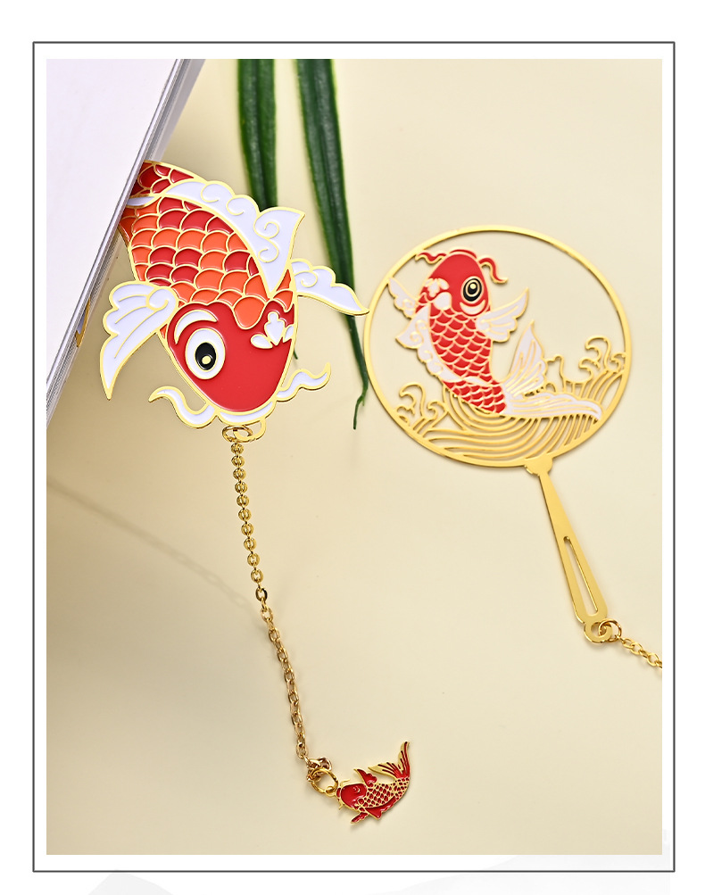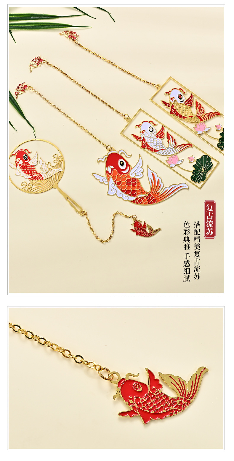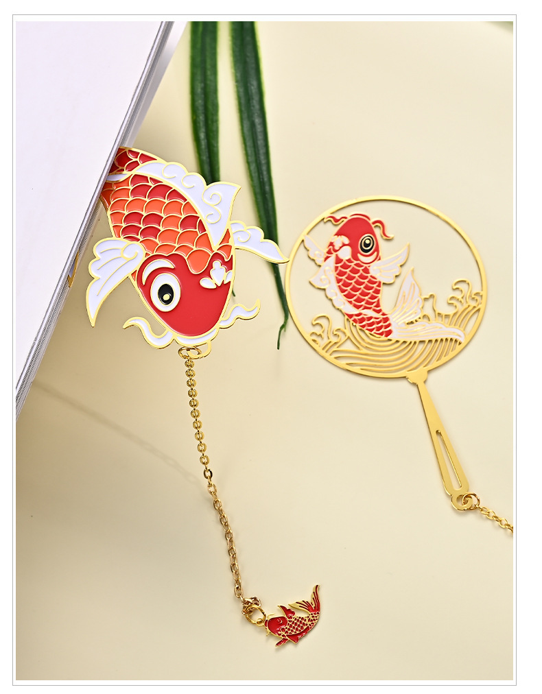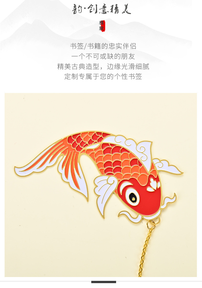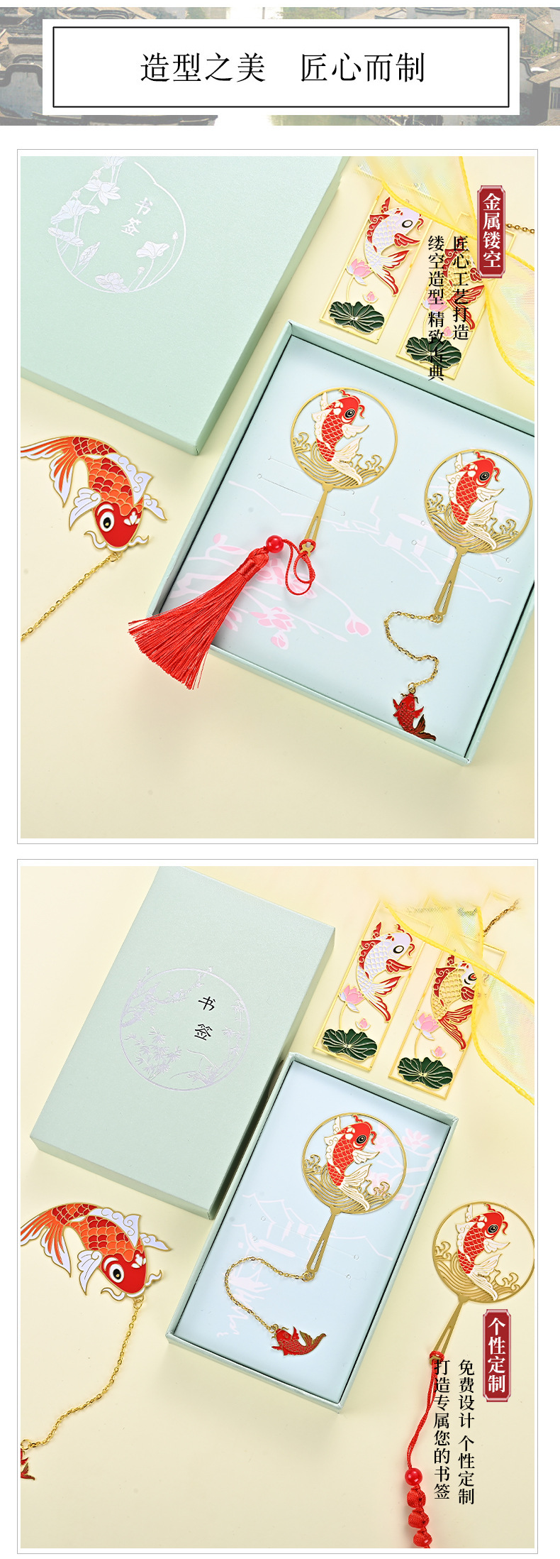 锦鲤金属书签批发中国古风创意旅游纪念品锌合金镂空文创书签