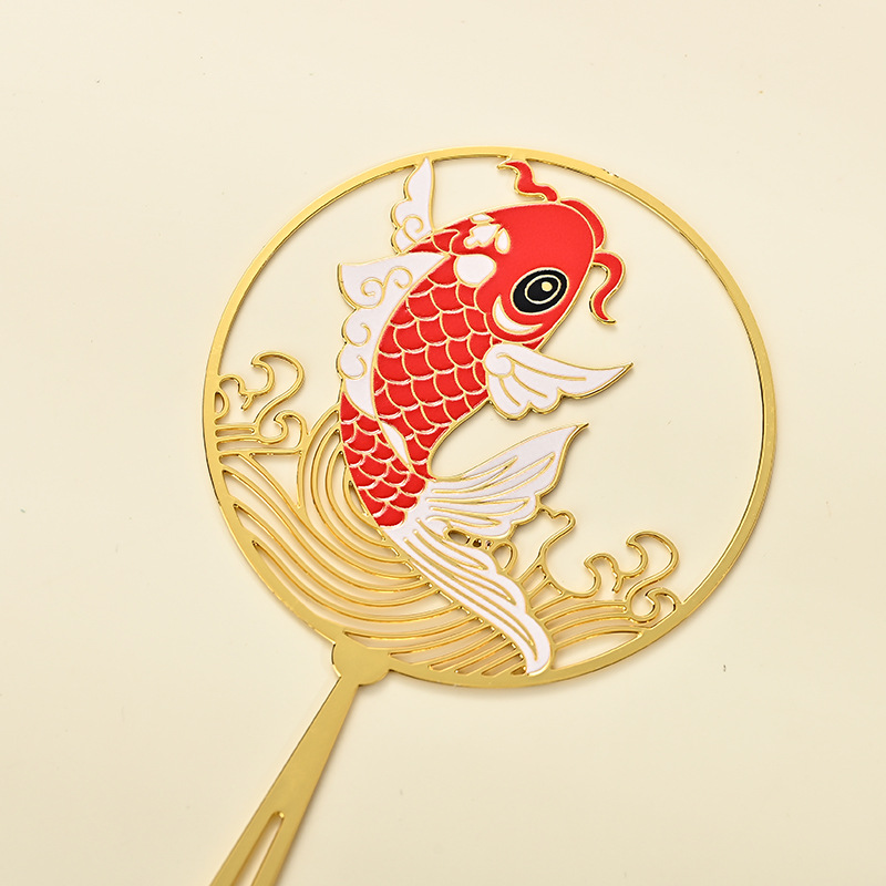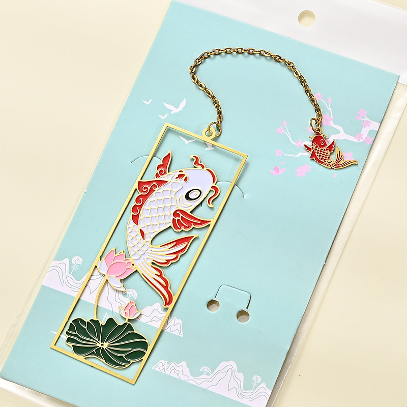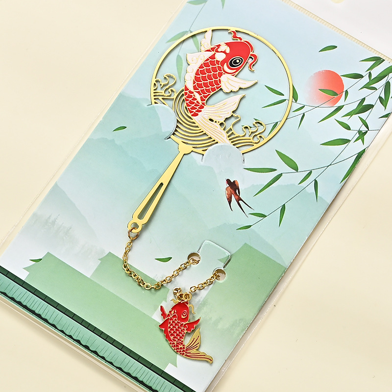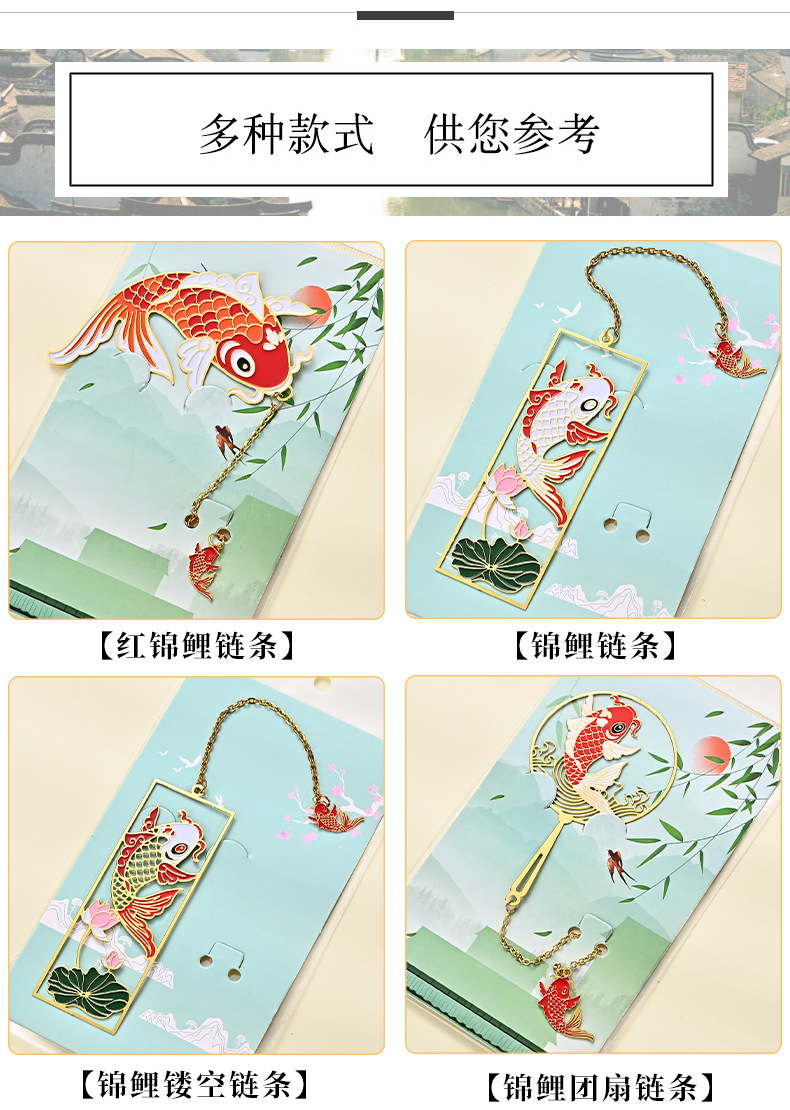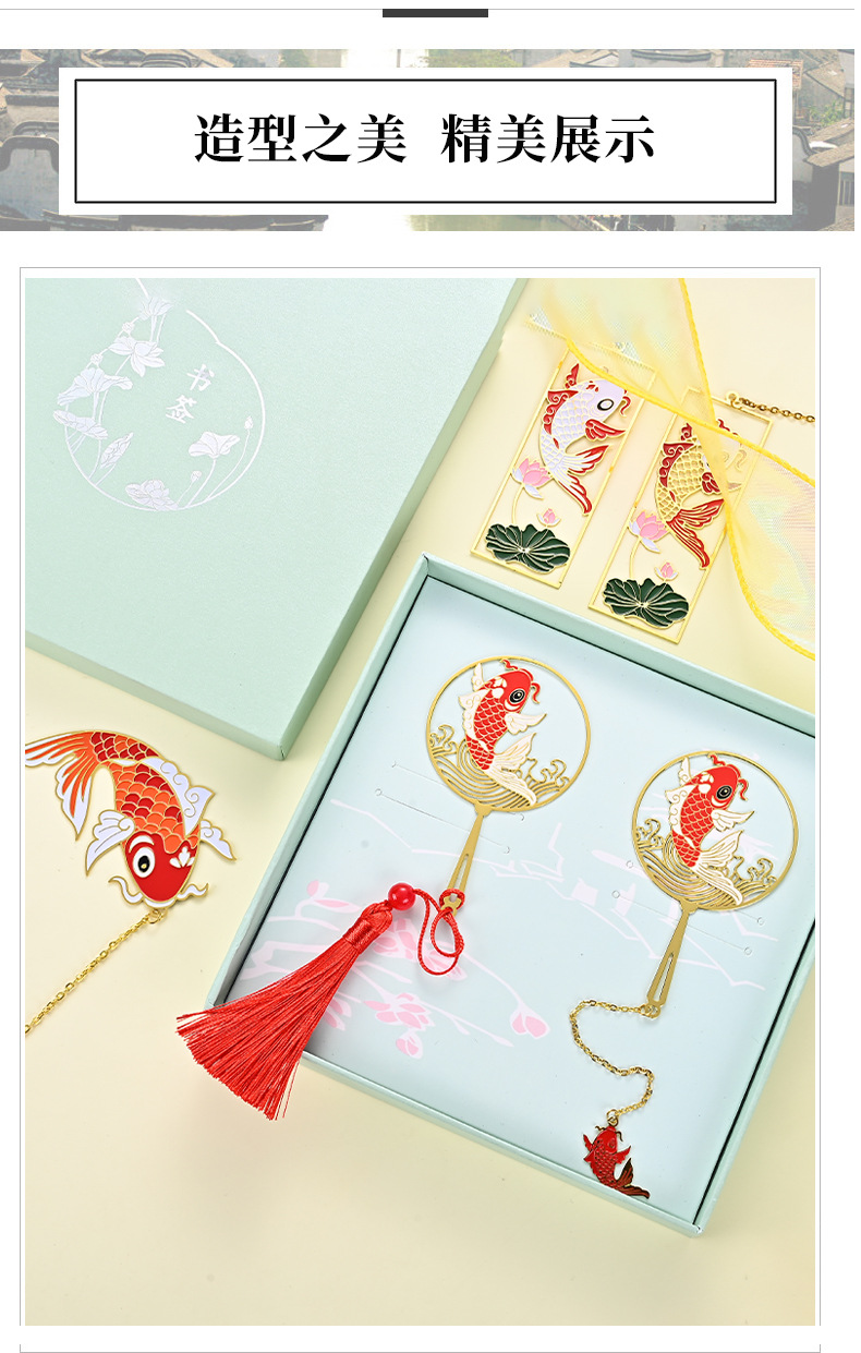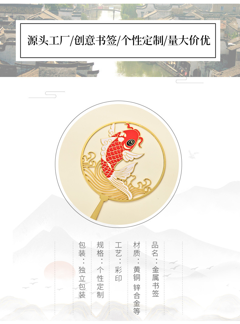 锦鲤金属书签批发中国古风创意旅游纪念品锌合金镂空文创书签