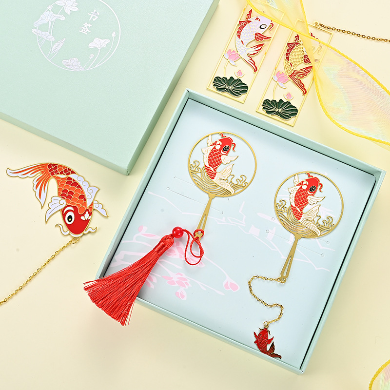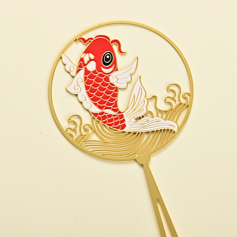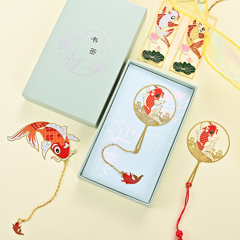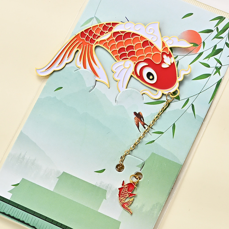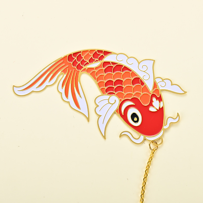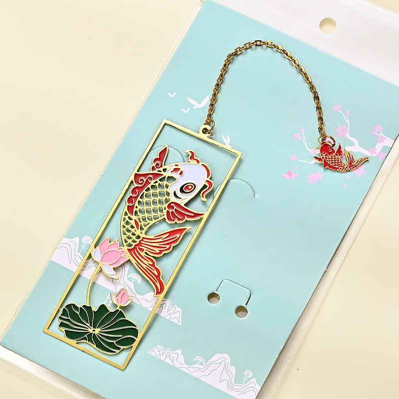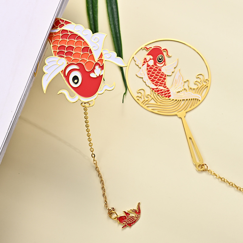 锦鲤金属书签批发中国古风创意旅游纪念品锌合金镂空文创书签