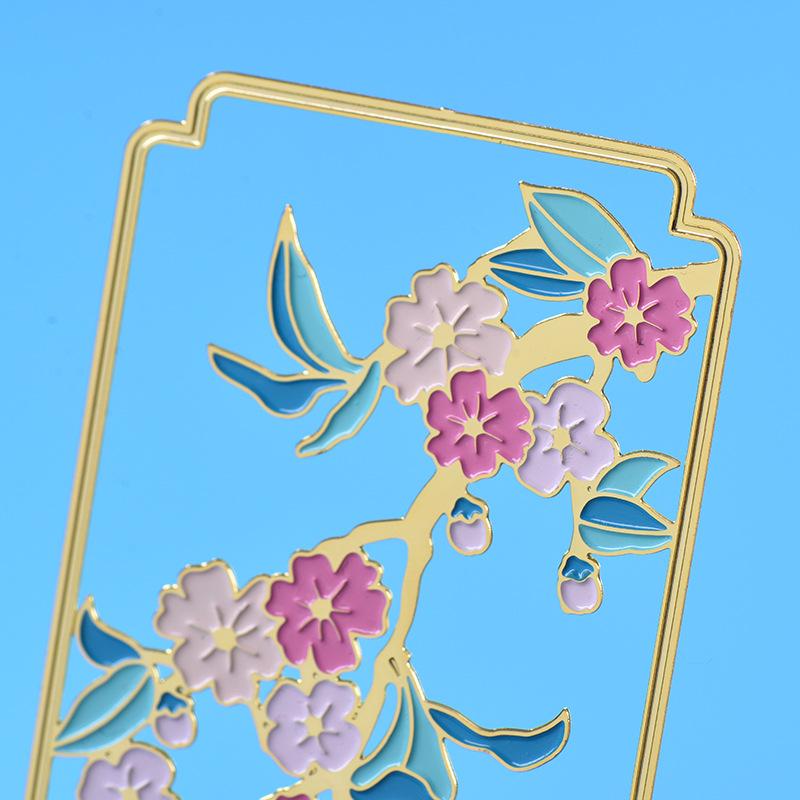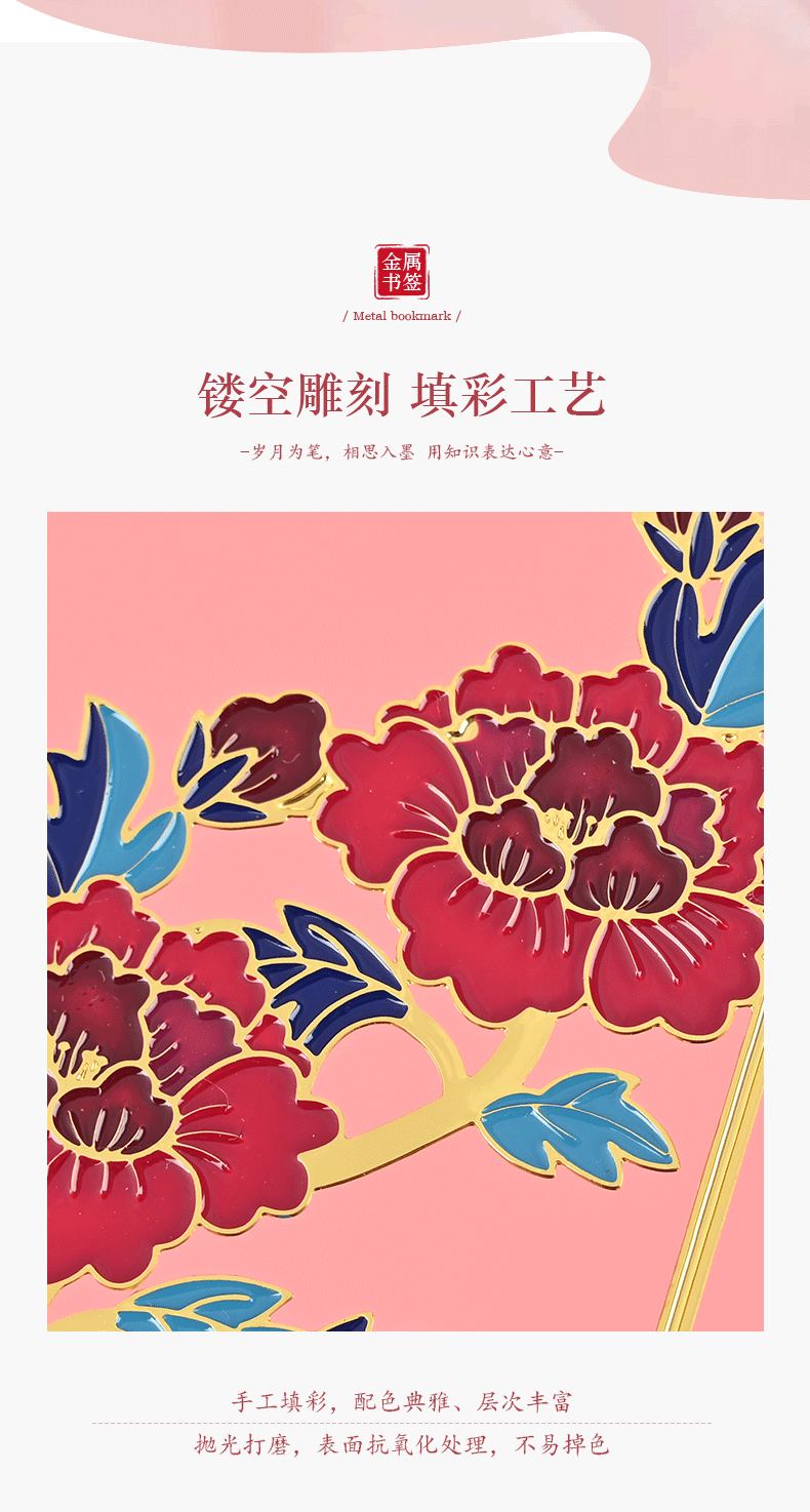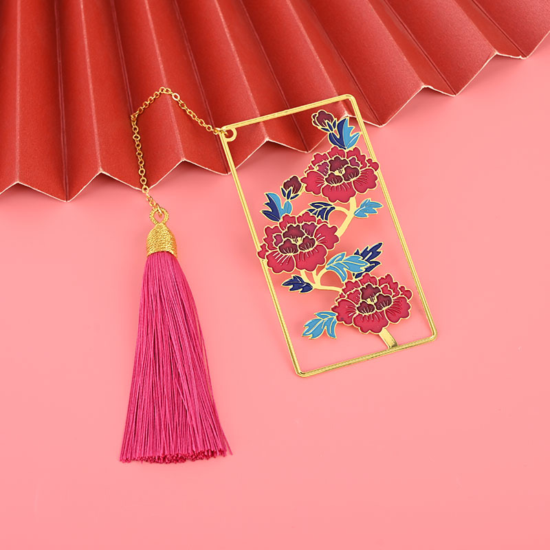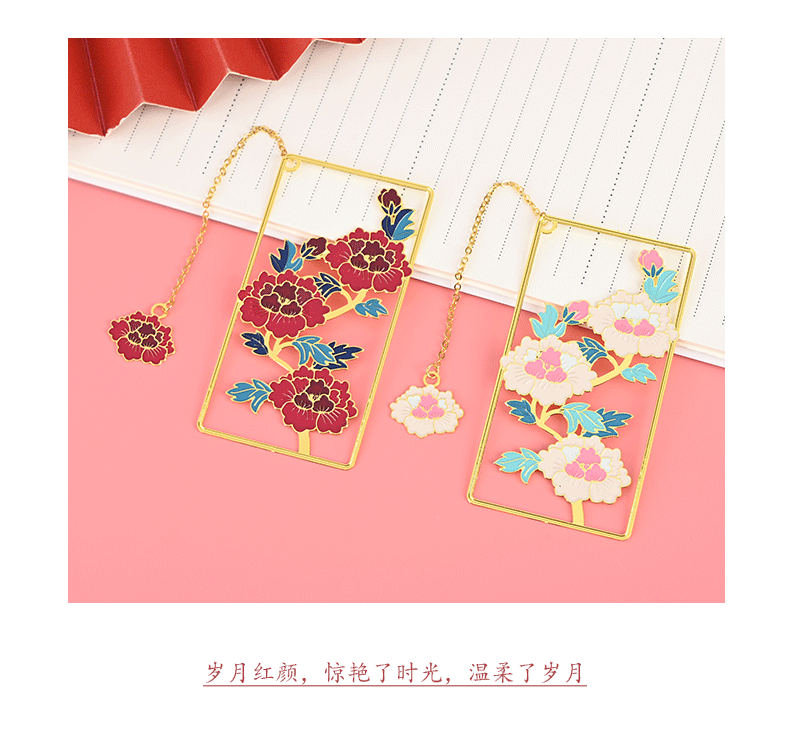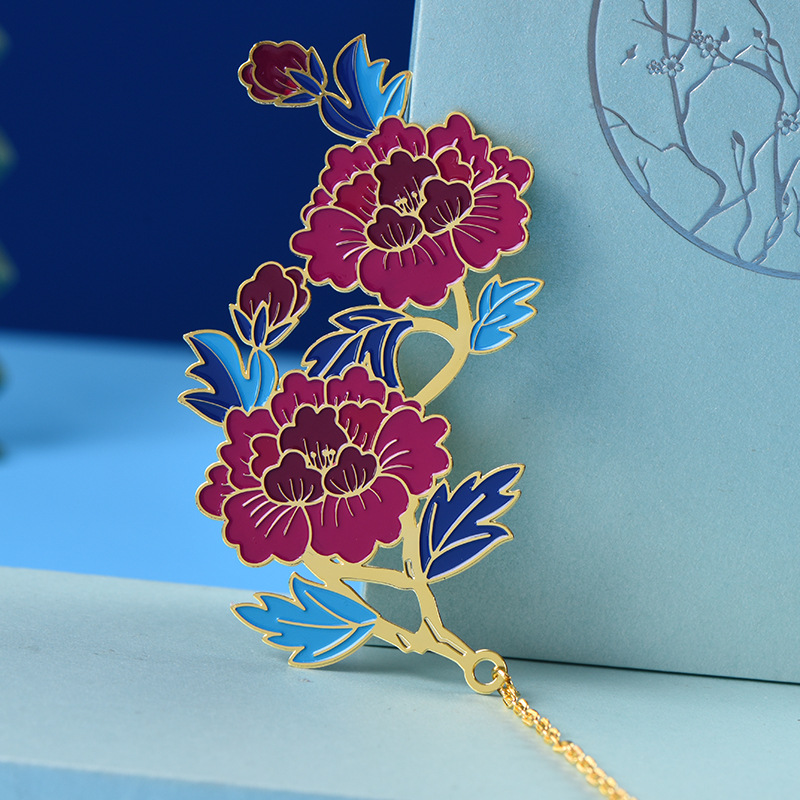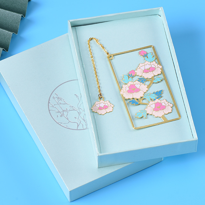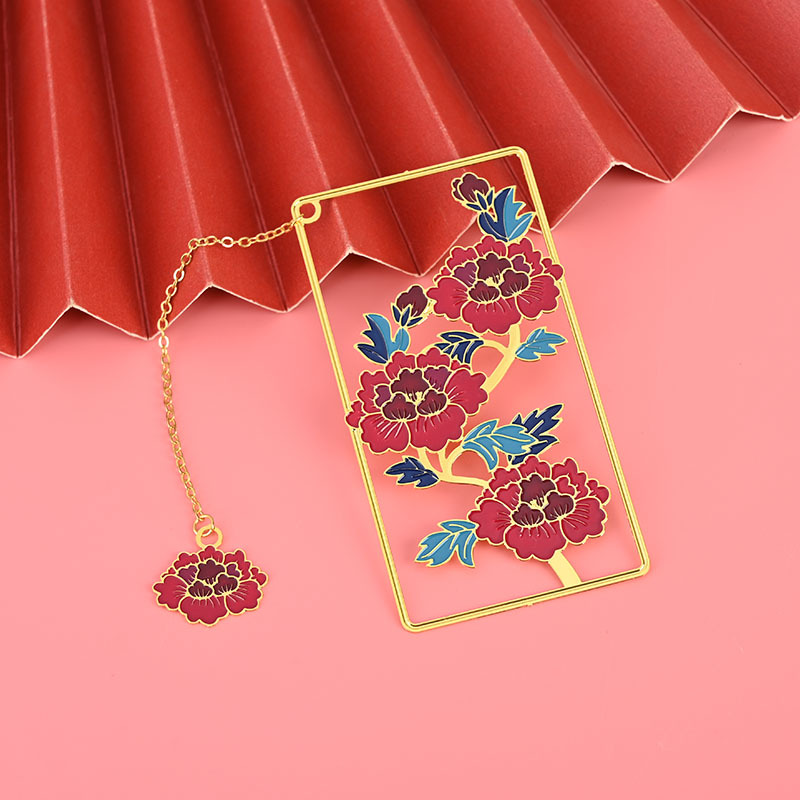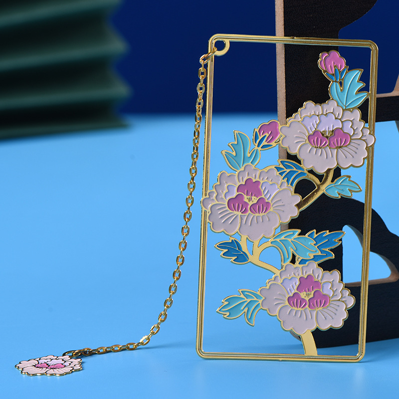 国花牡丹金属书签现货批发镂空烤漆樱花玫瑰书签文创盲盒小礼品
